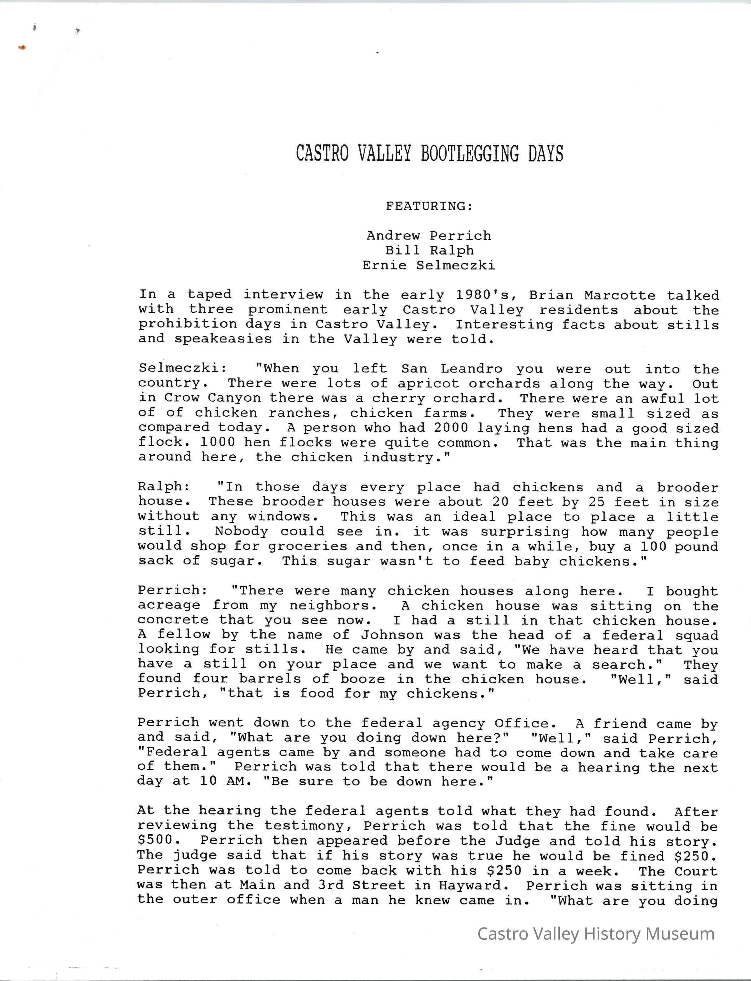 Volume 5 number 31 of Castro Valley magazine edited by Dr. Marvin E. Smith. Articles on Castro Valley bootlegging days, Bill Wilde and Lillian Duncan by Brian Marcotte, Maria Bogakos, Bill Wilde and Lillian Duncan.Collection