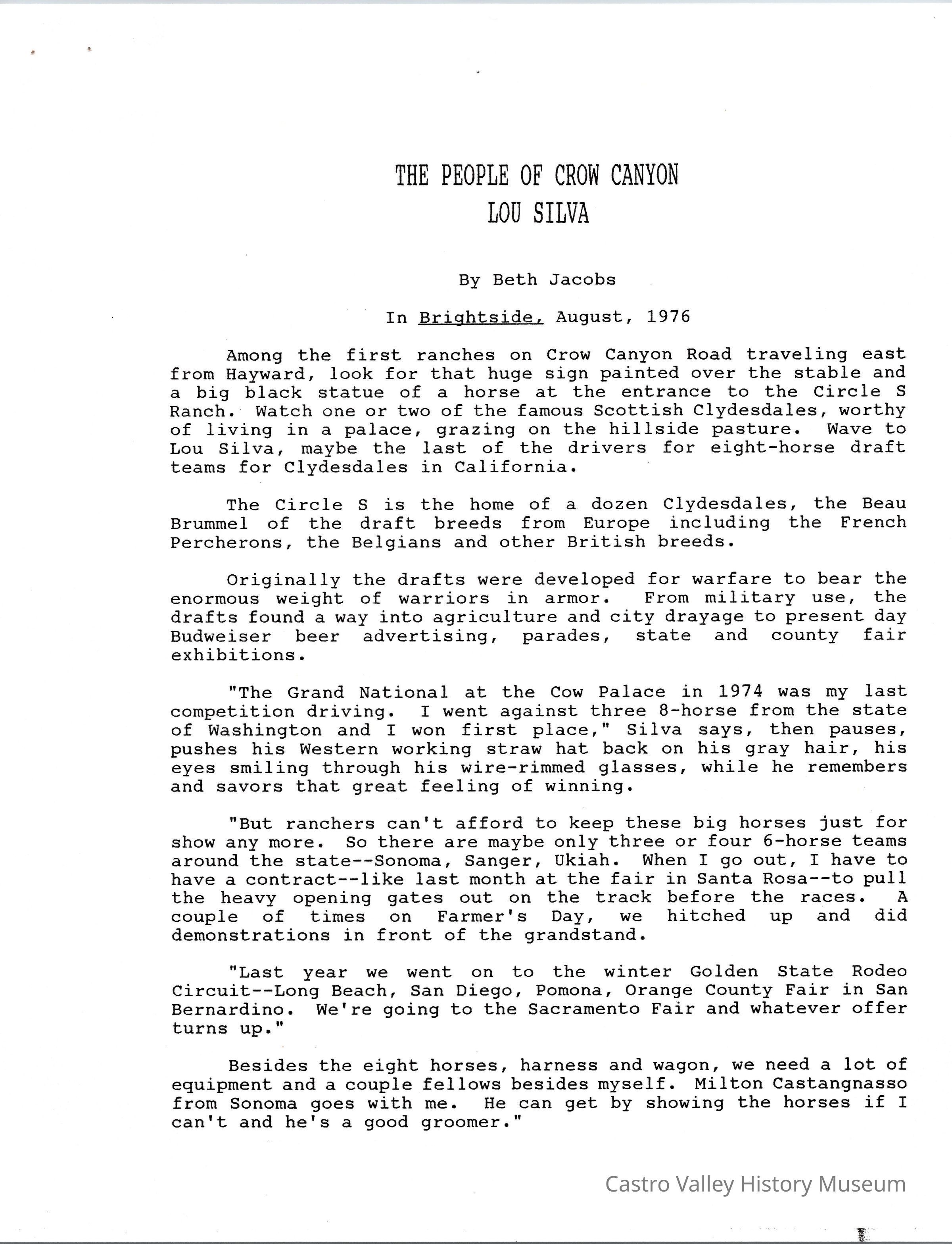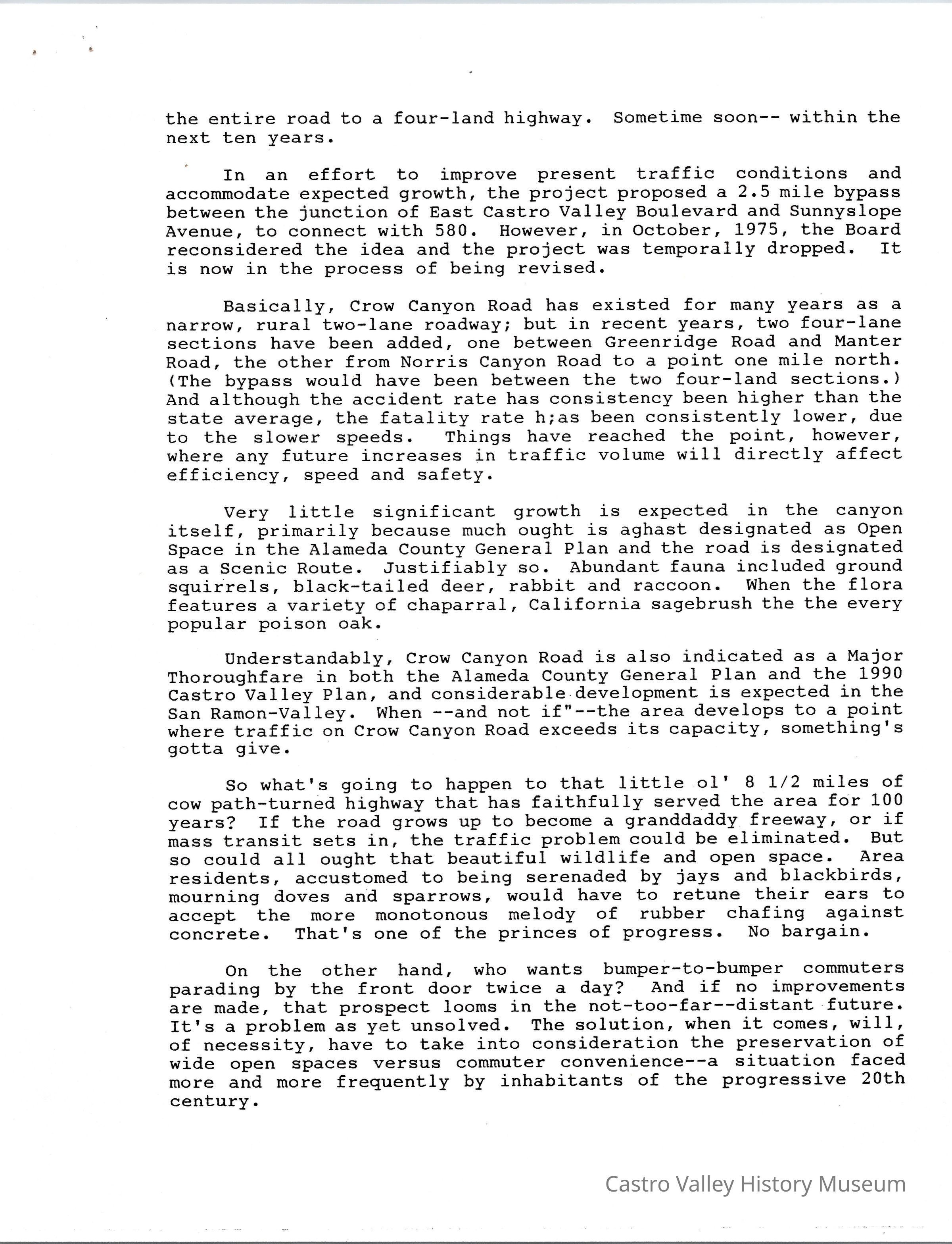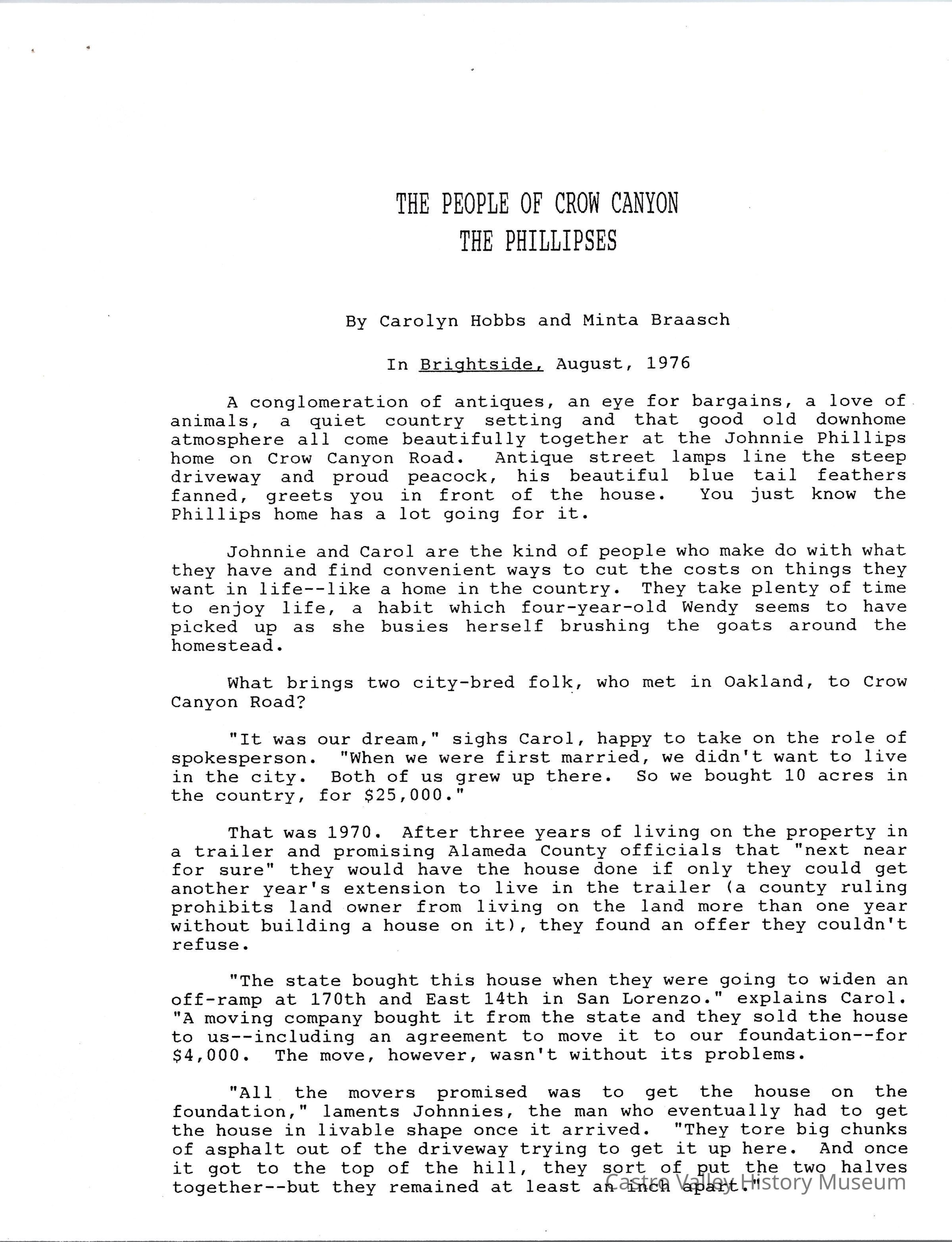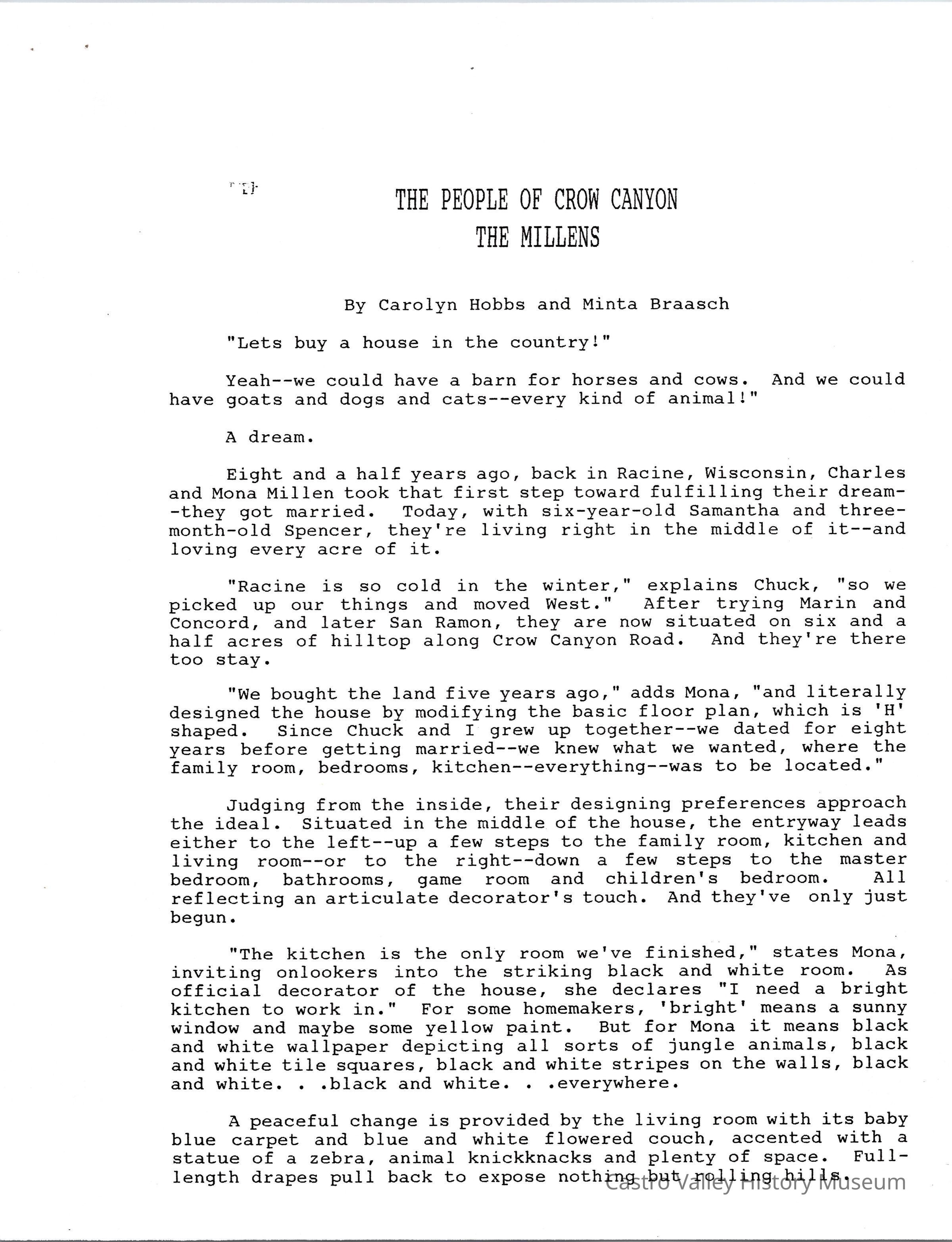 Volume 5 number 32 of Castro Valley Magazine edited by Dr. Marvin E. Smith. Articles on Crow Canyon including Lous Silva, the Phillipses, the Millens, and the Thomases. Written by Jerry Archer, Beth Jacobs, Carolyn Hobbs, Minta Braasch, and Sara Maloney.Collection