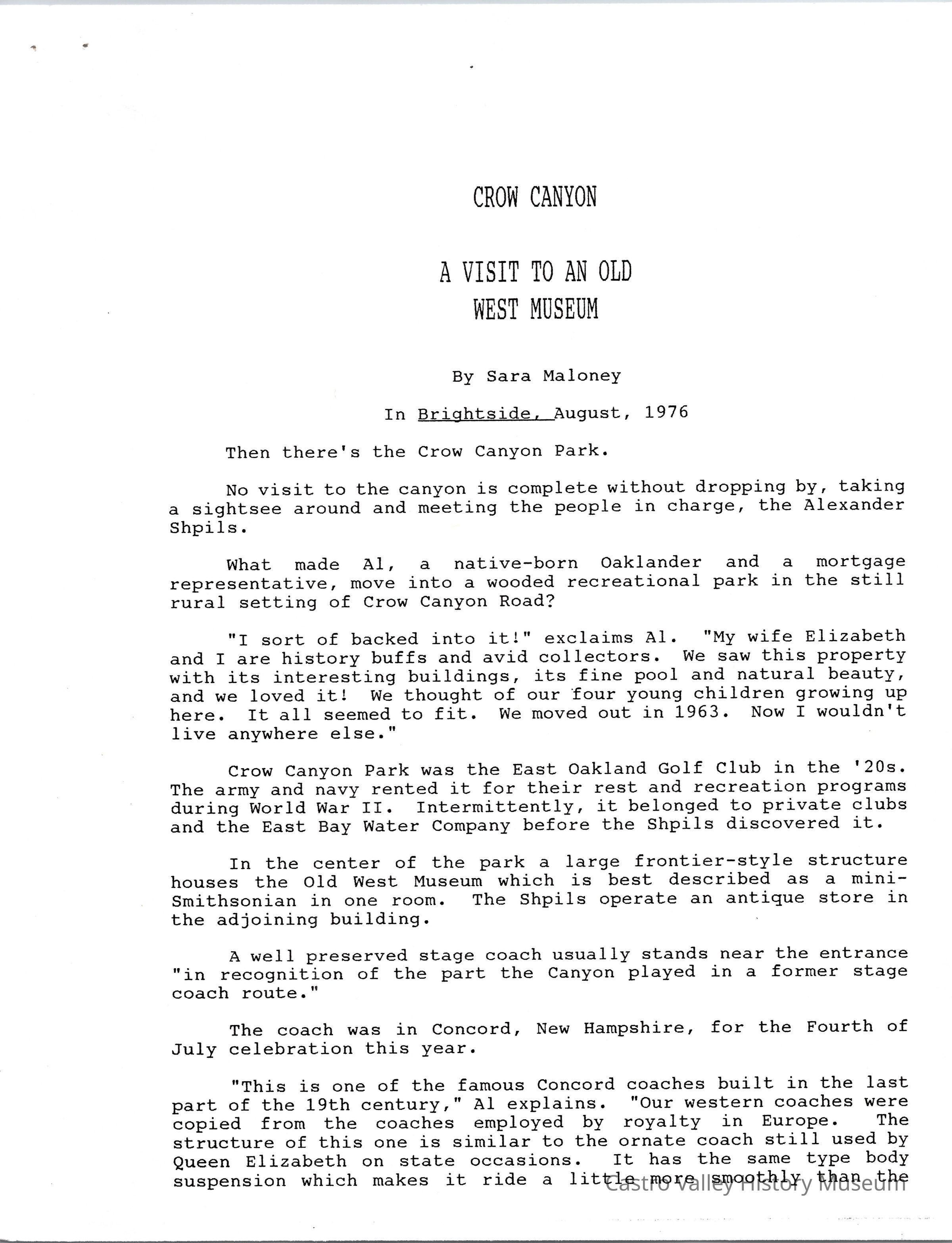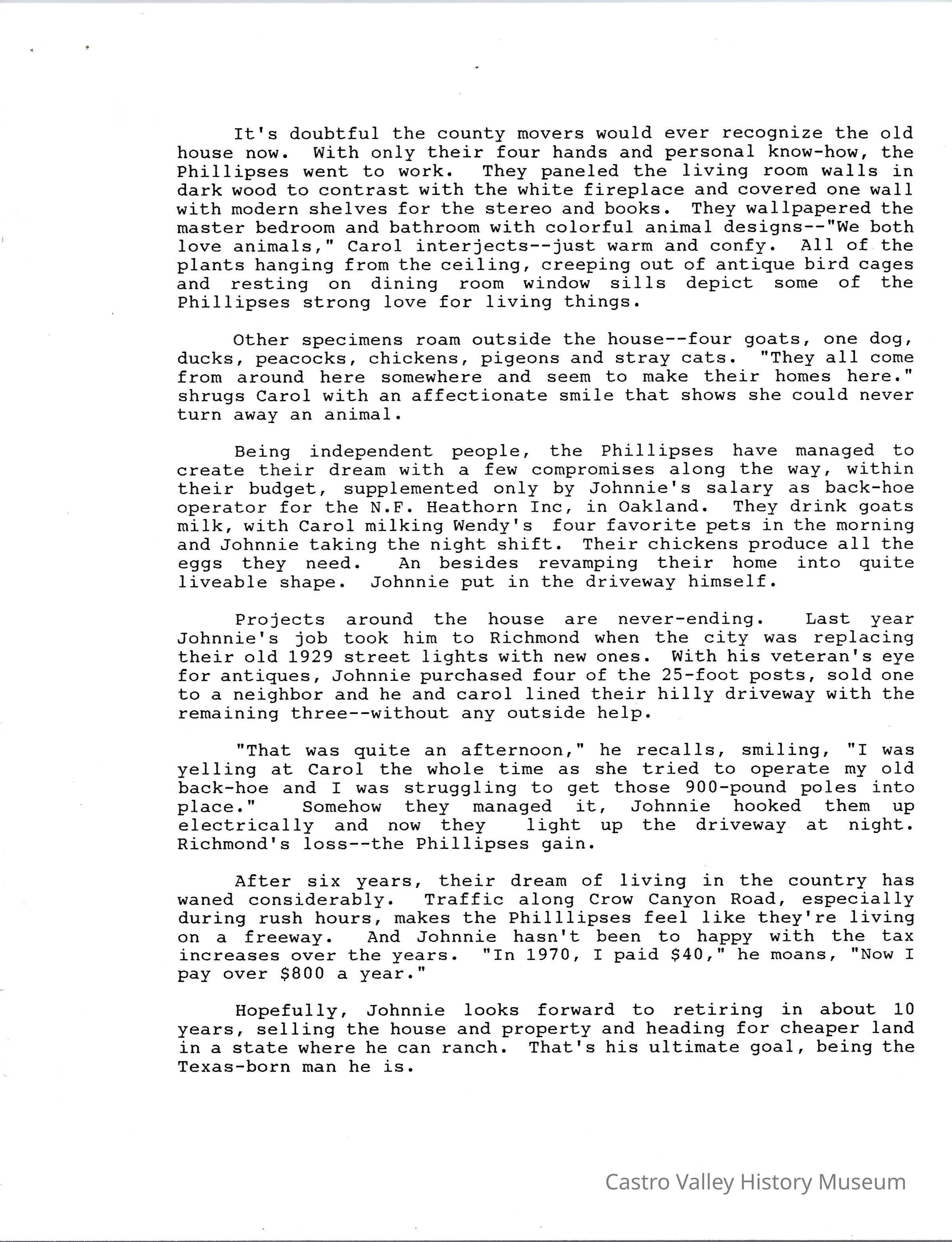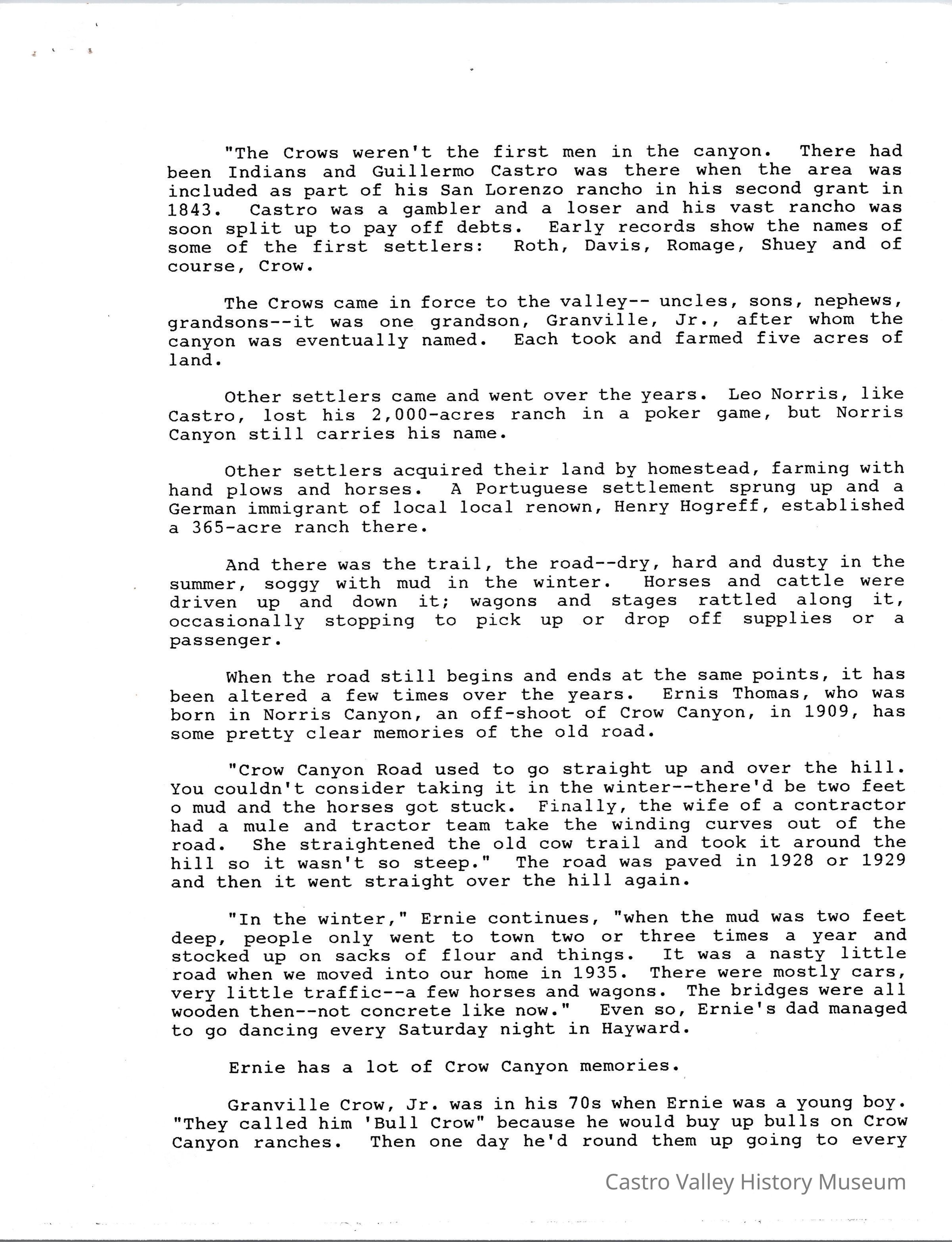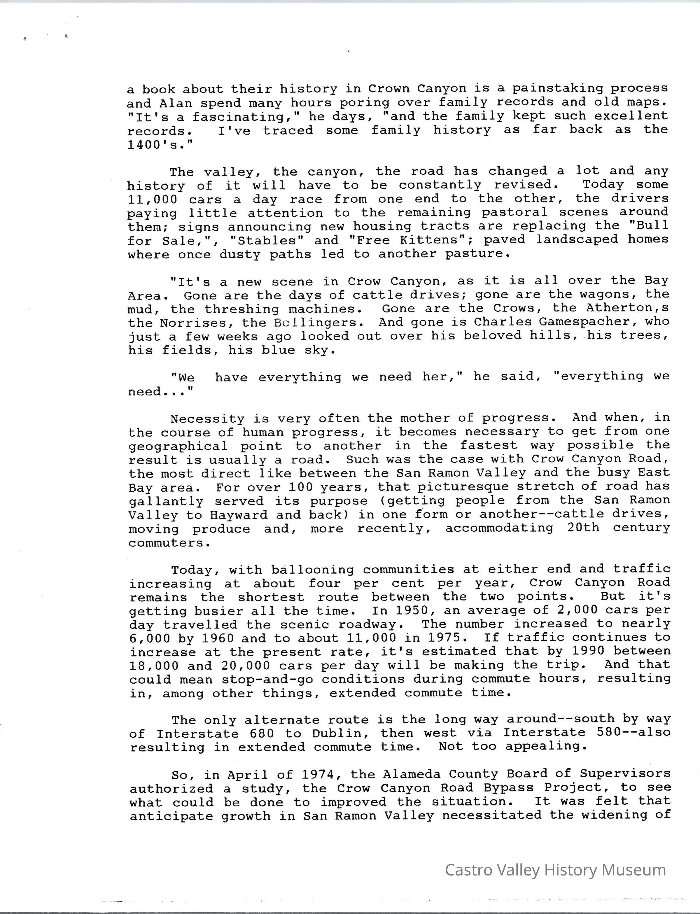 Volume 5 number 32 of Castro Valley Magazine edited by Dr. Marvin E. Smith. Articles on Crow Canyon including Lous Silva, the Phillipses, the Millens, and the Thomases. Written by Jerry Archer, Beth Jacobs, Carolyn Hobbs, Minta Braasch, and Sara Maloney.Collection
