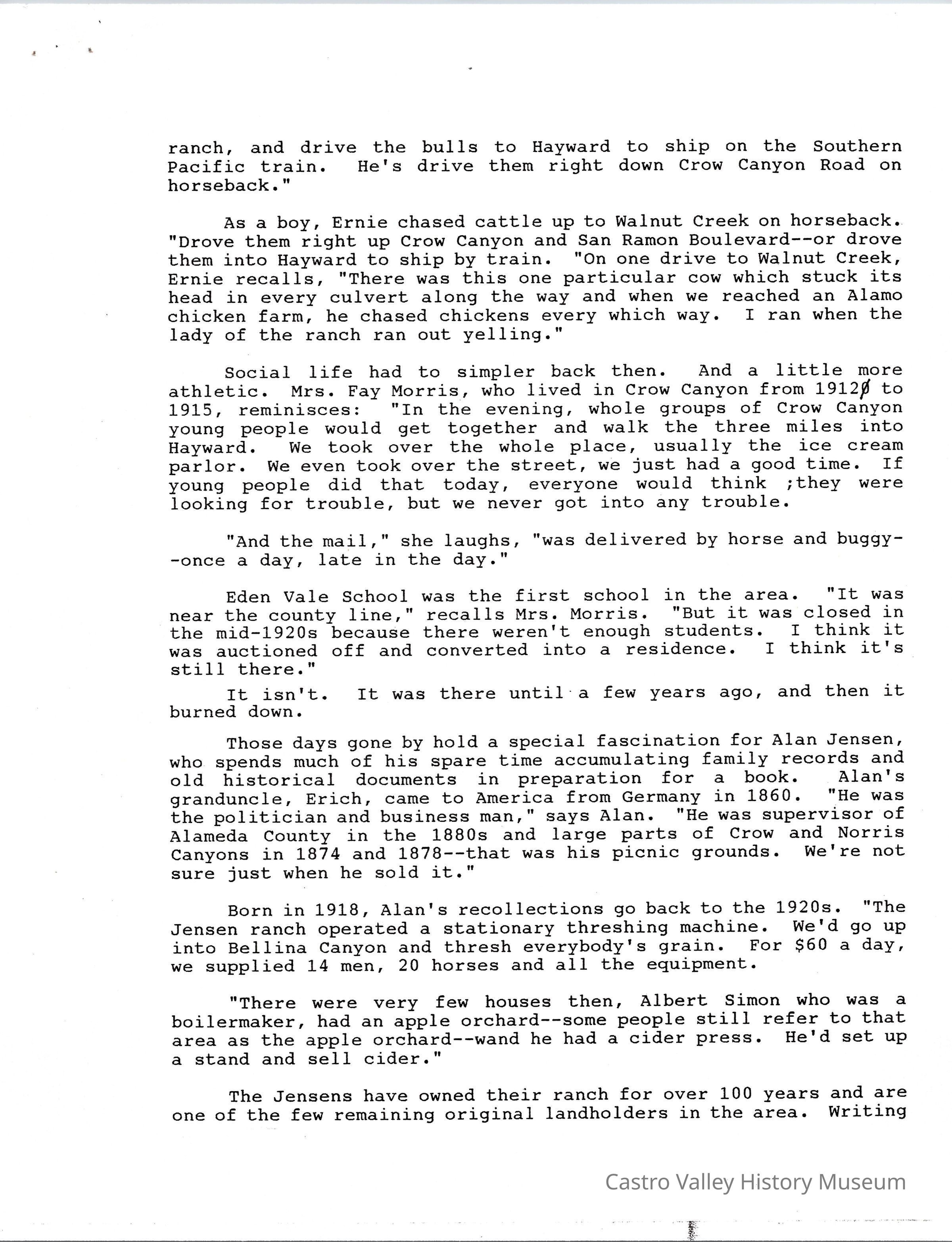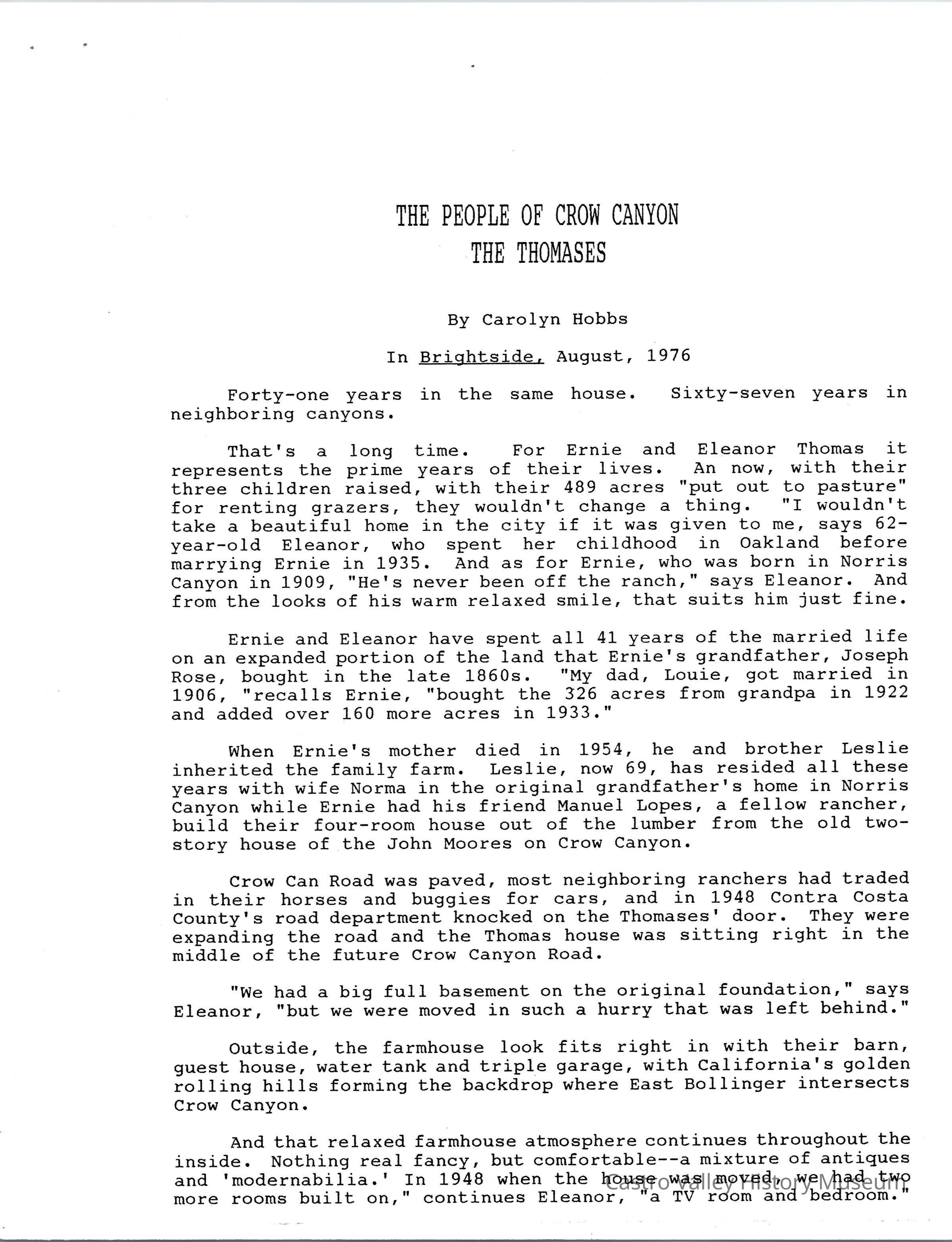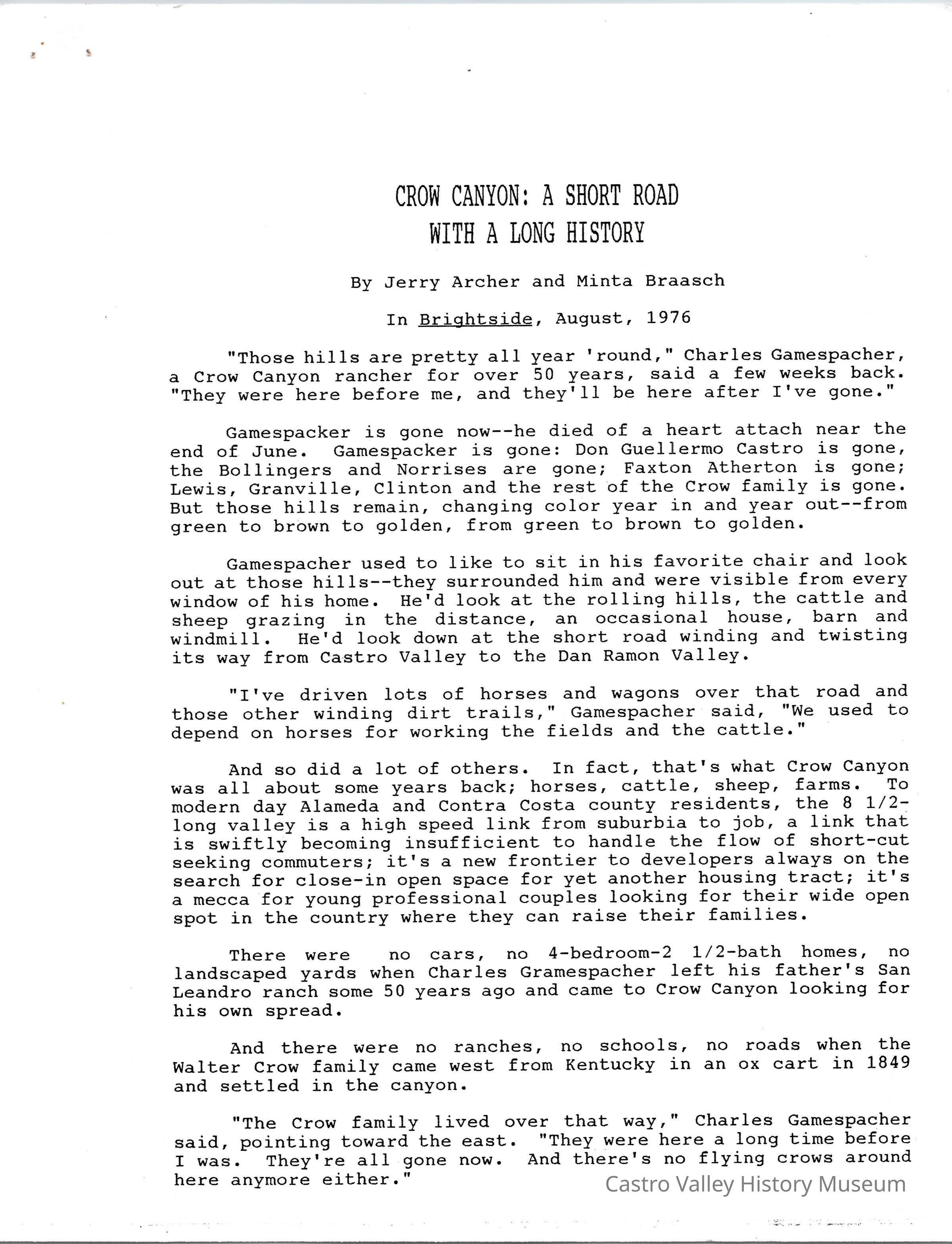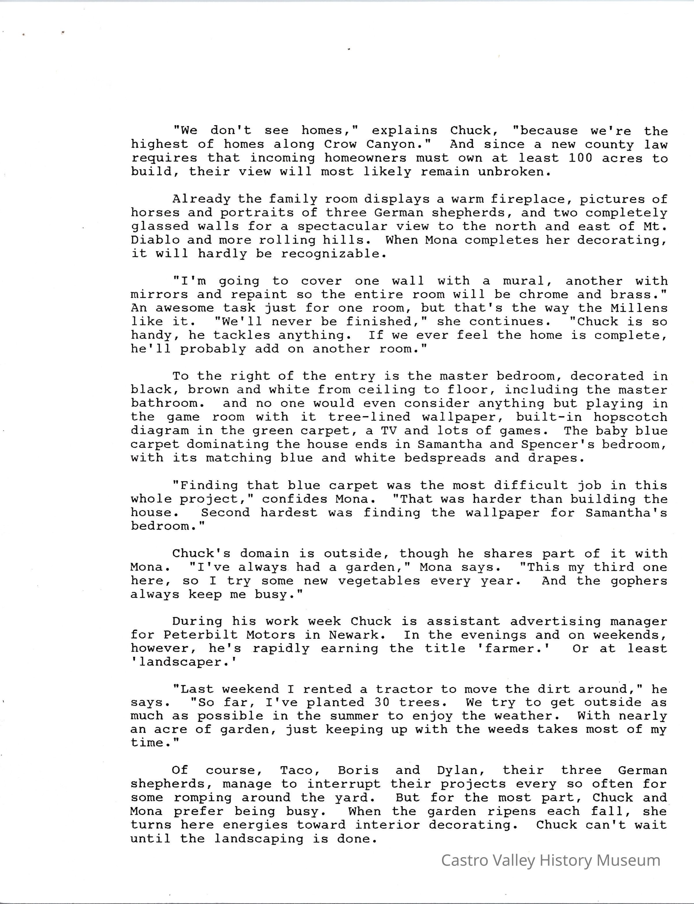 Volume 5 number 32 of Castro Valley Magazine edited by Dr. Marvin E. Smith. Articles on Crow Canyon including Lous Silva, the Phillipses, the Millens, and the Thomases. Written by Jerry Archer, Beth Jacobs, Carolyn Hobbs, Minta Braasch, and Sara Maloney.Collection