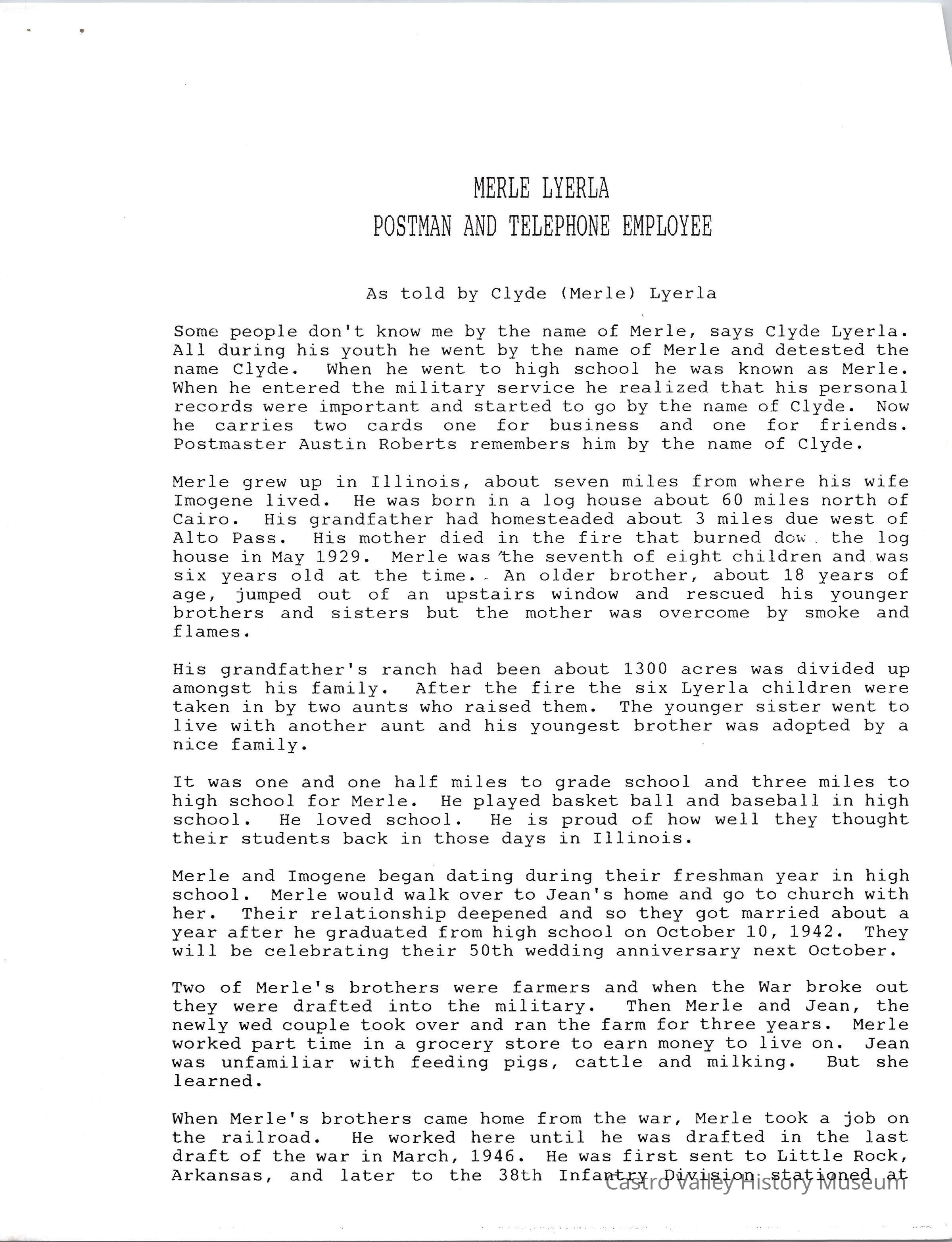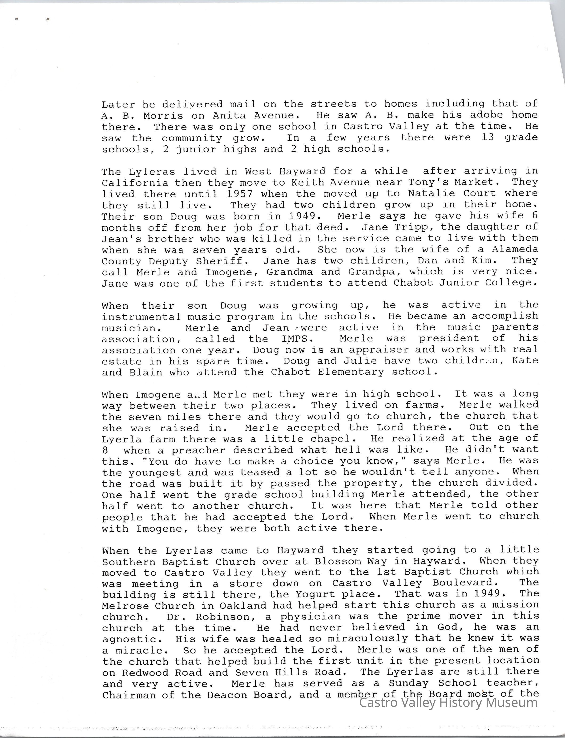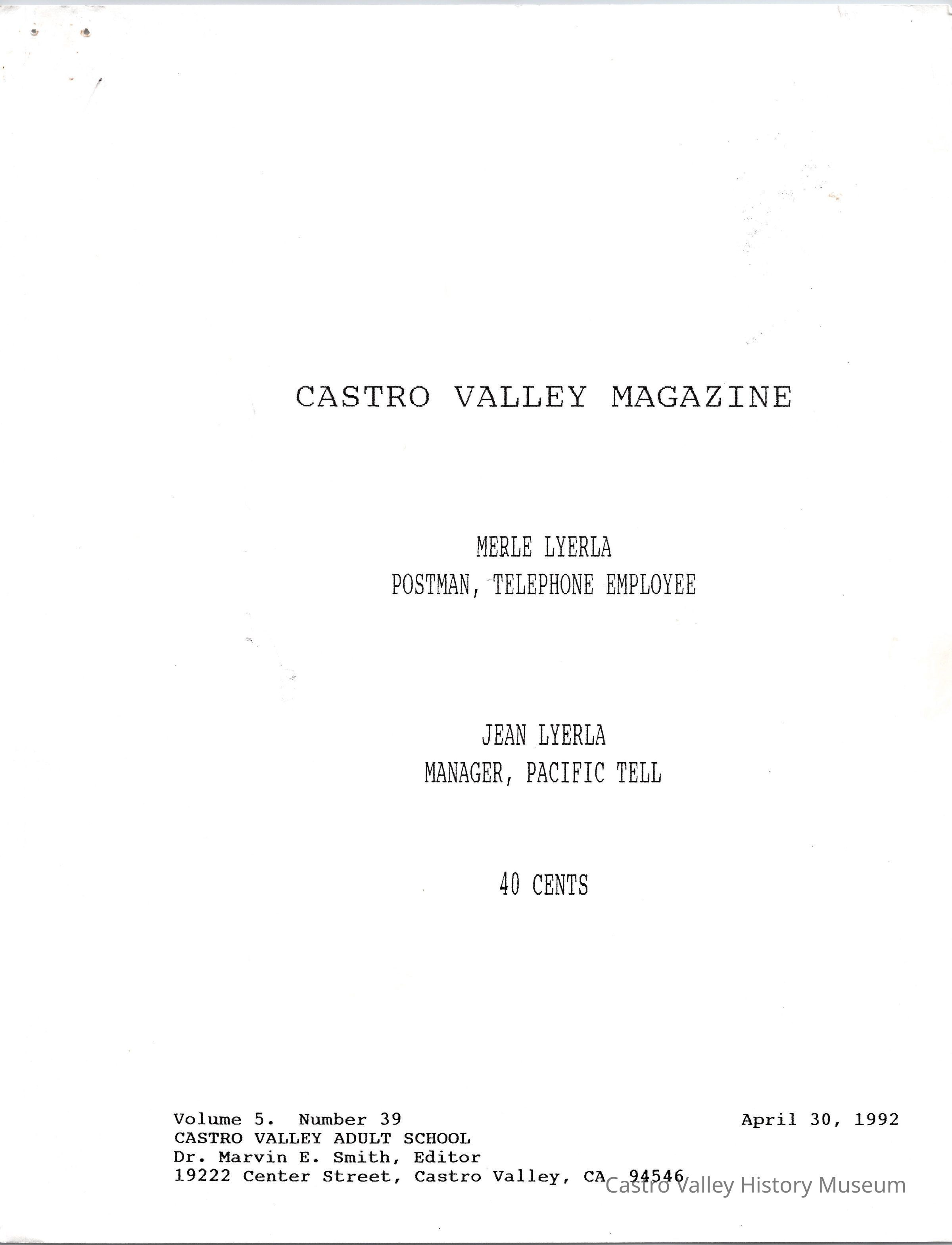 Volume 5 number 39 of Castro Valley Magazine edited by Dr. Marvin E. Smith. Articles on Merle Lyerla and Jean Lyerla, by Imogene Lyerla and Clyde Lyerla.Collection