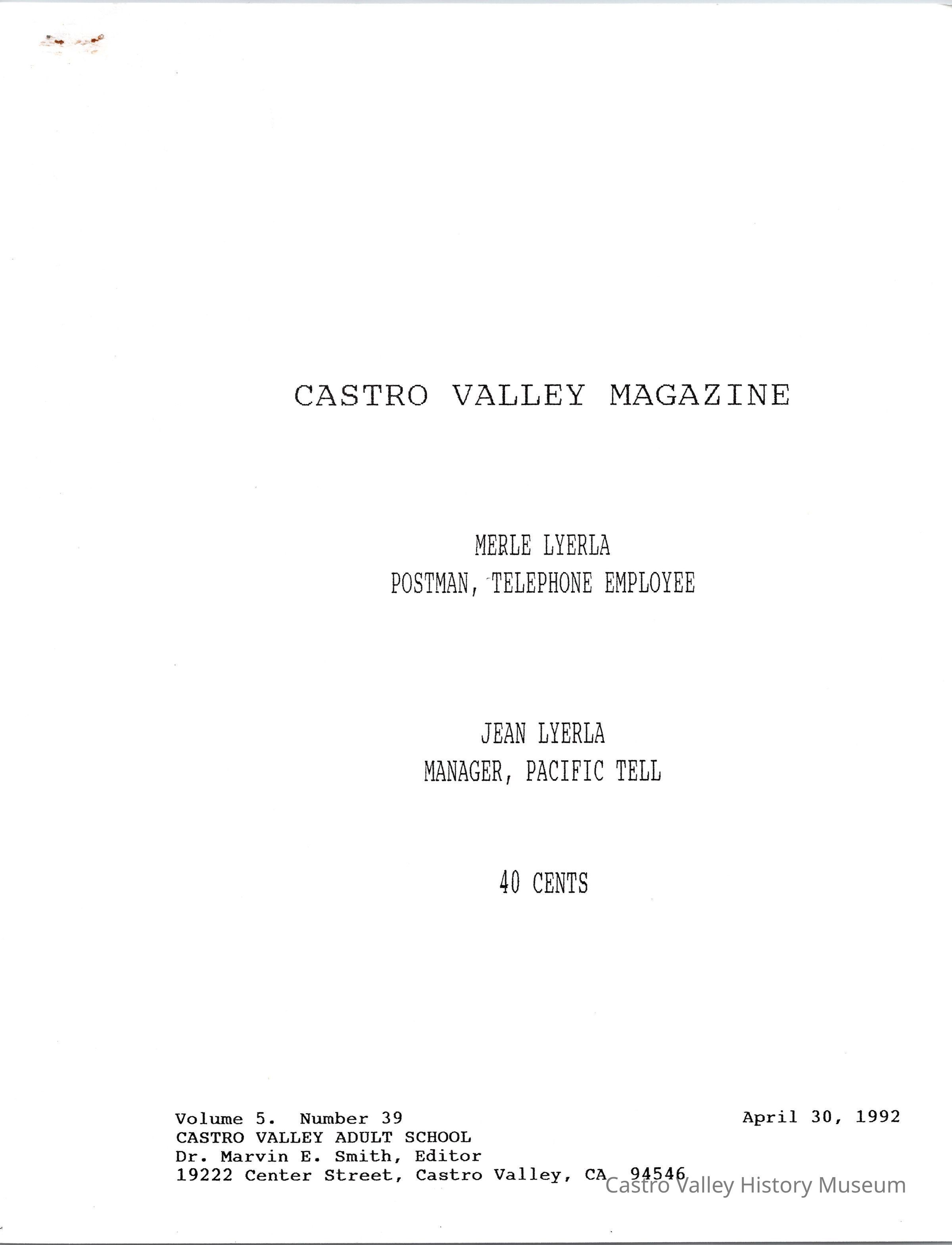 Volume 5 number 40 of Castro Valley Magazine edited by Dr. Marvin E. Smith. Articles on Phil Hazelwood and Bill Hauck, written by Phil Hazelwood and Bill Hauck.Collection