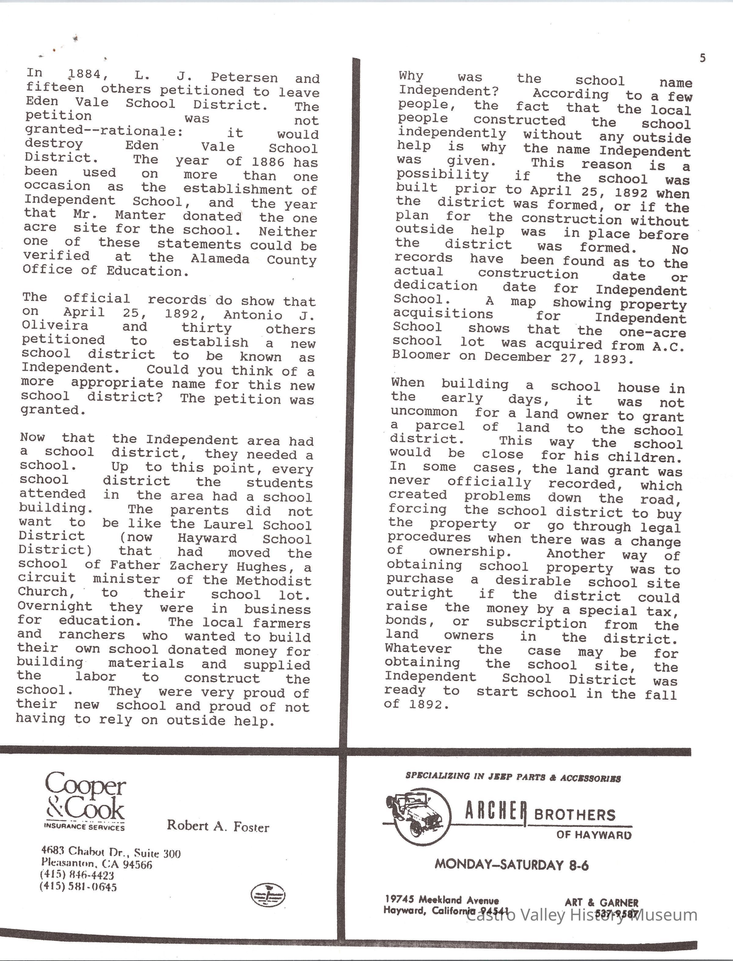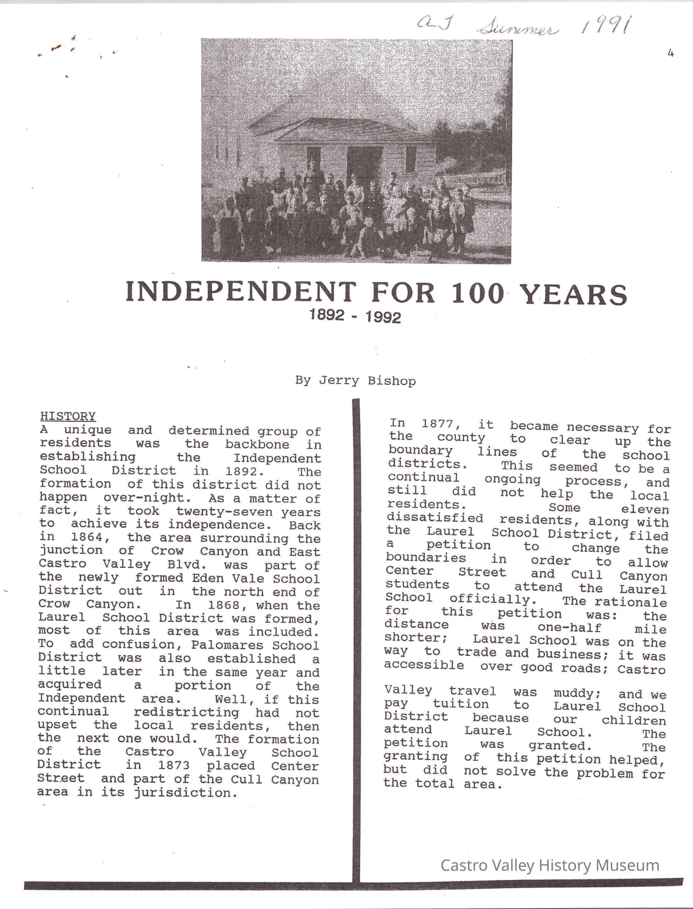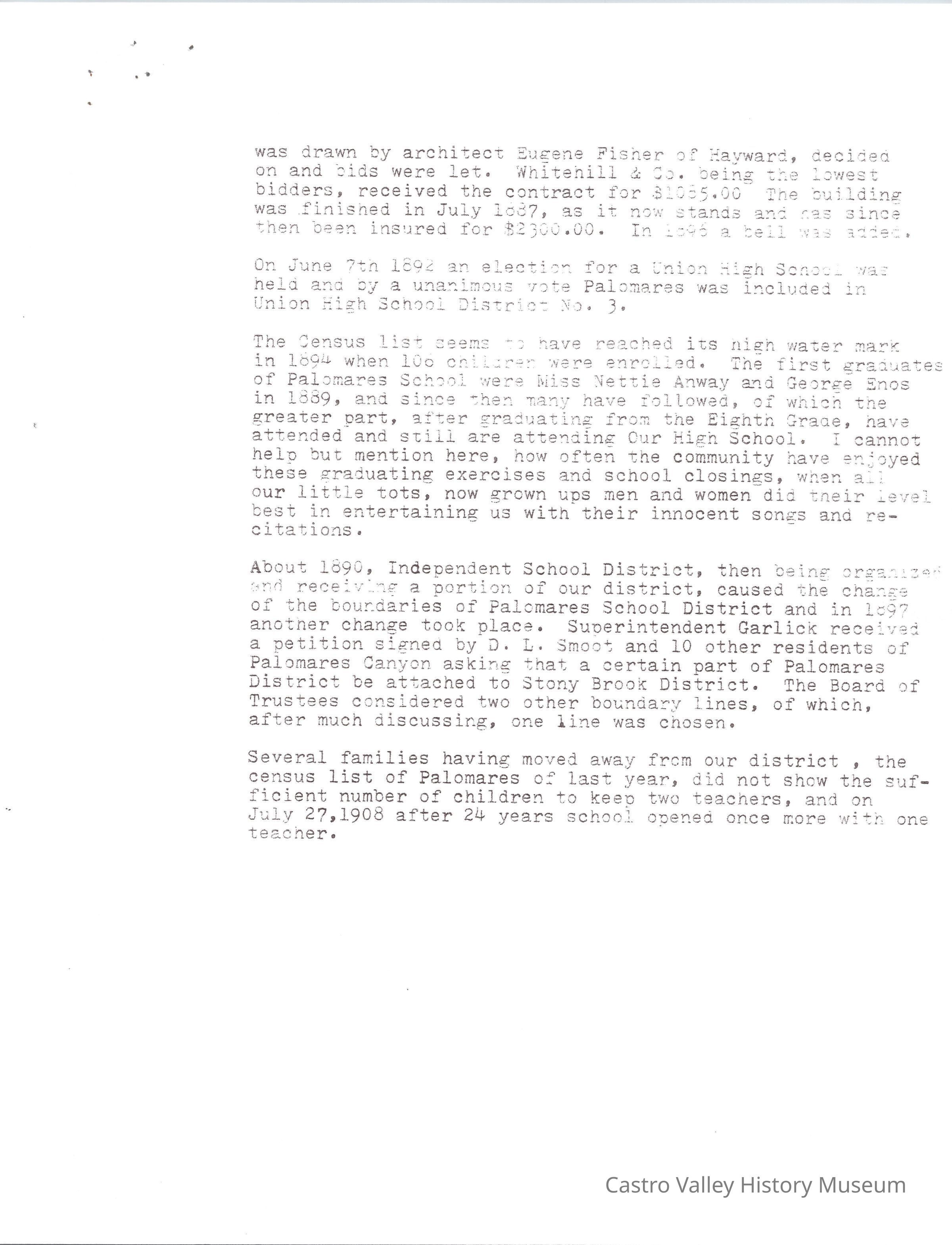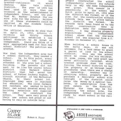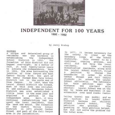 Castro Valley School Stories - Palomares School District; Palomares Public School; Independent for 100 Years 189201992 by Jerry Bishop; Palomares Elementary School Highlights 1951-1953 by Lois M. Schwarz (includes an image - Palomares Elementary School Grades 1-4 1952 Lois Schwarz, Teacher)Collection
