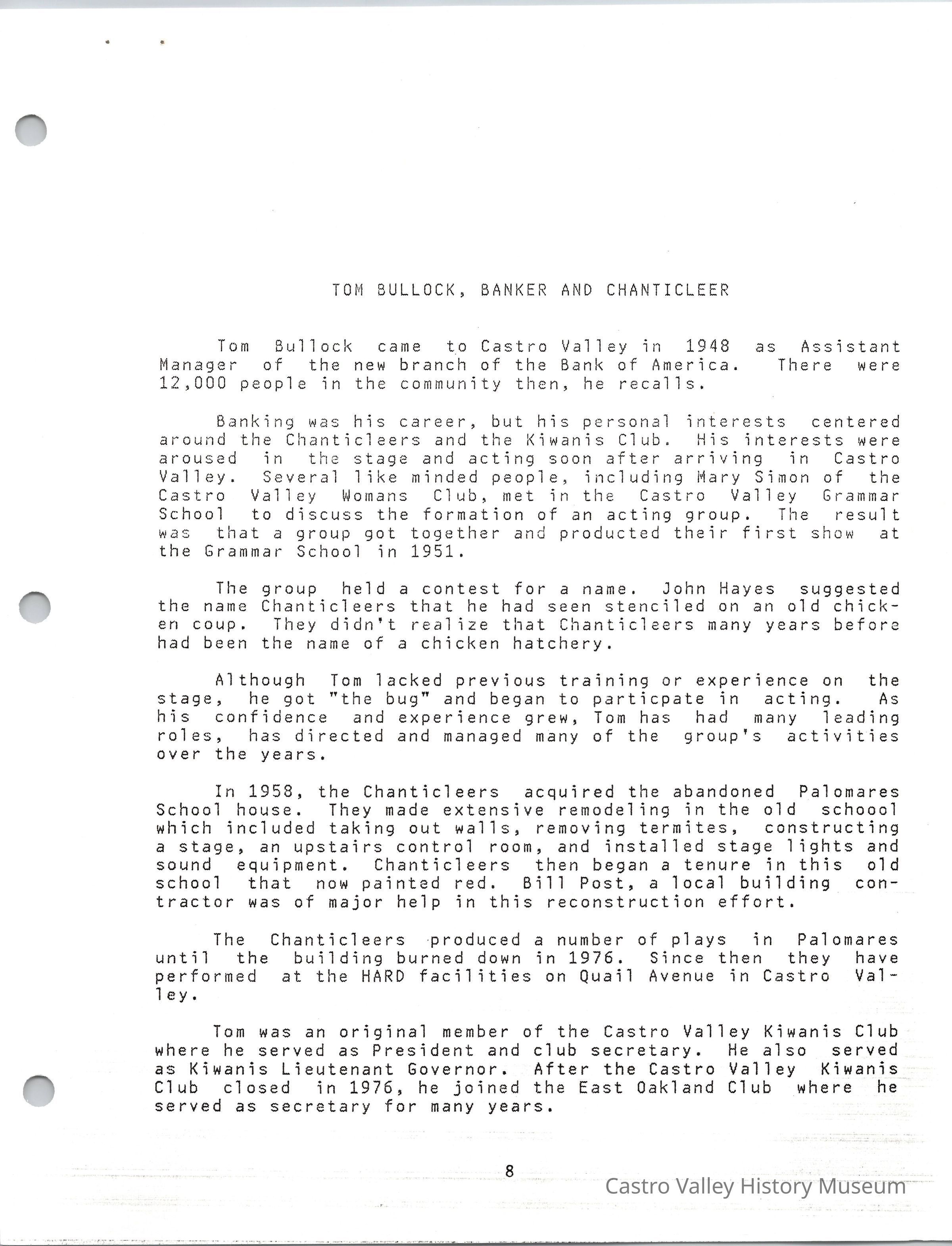 Volume 1 number 6 of Castro Valley Magazine, edited by Marvin E. Smith. Articles on several individuals - Ernest Selmeczki, Tom Bullock, George Alcorn, George Albert, and on post-war Castro Valley by John Sandoval.Collection