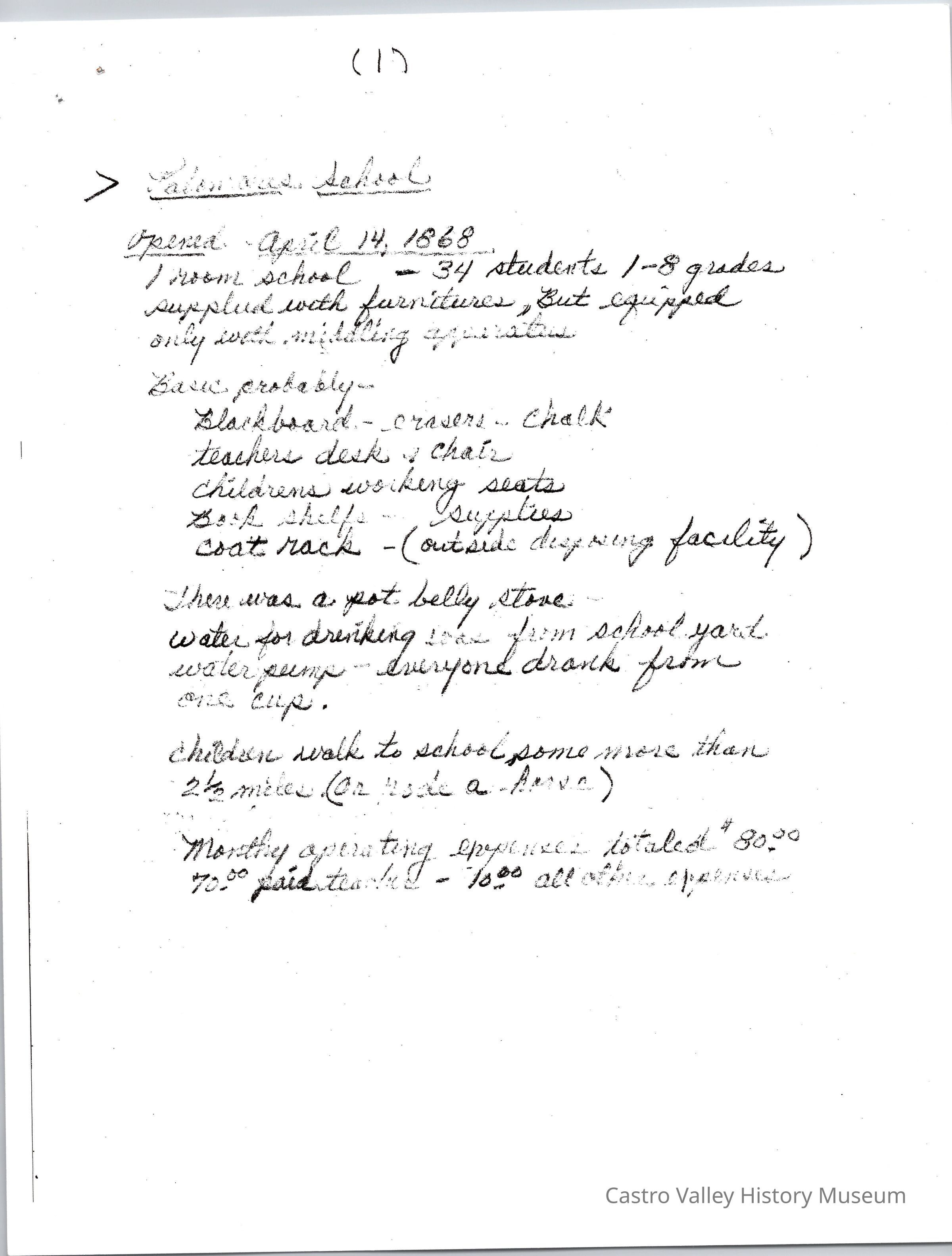 History Write-up of Palomares School including when it opened, what was in the school, how children got to school, operating expenses, and more.