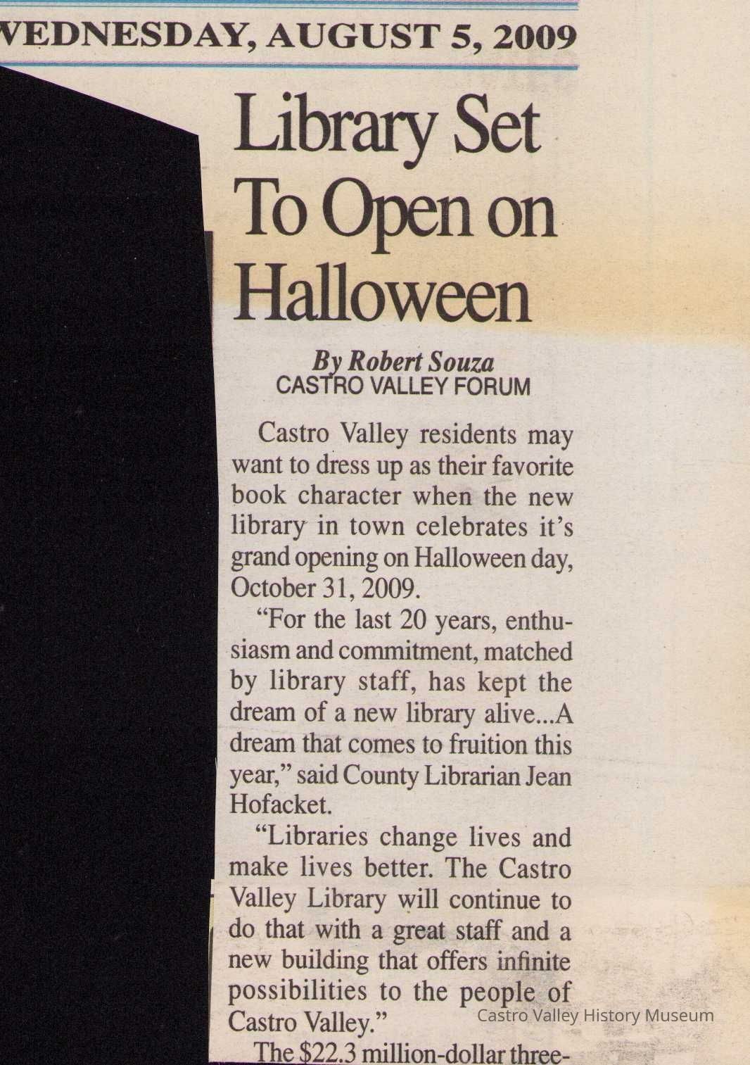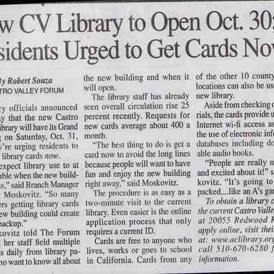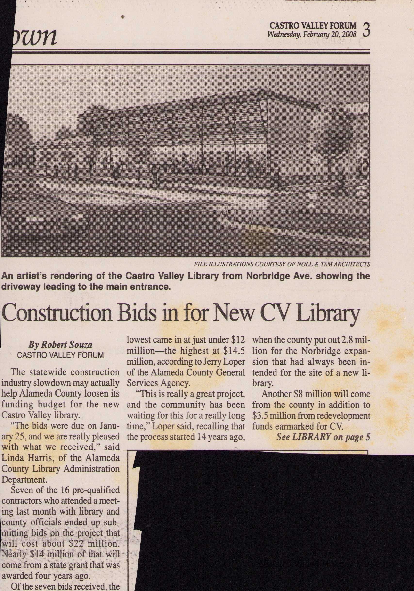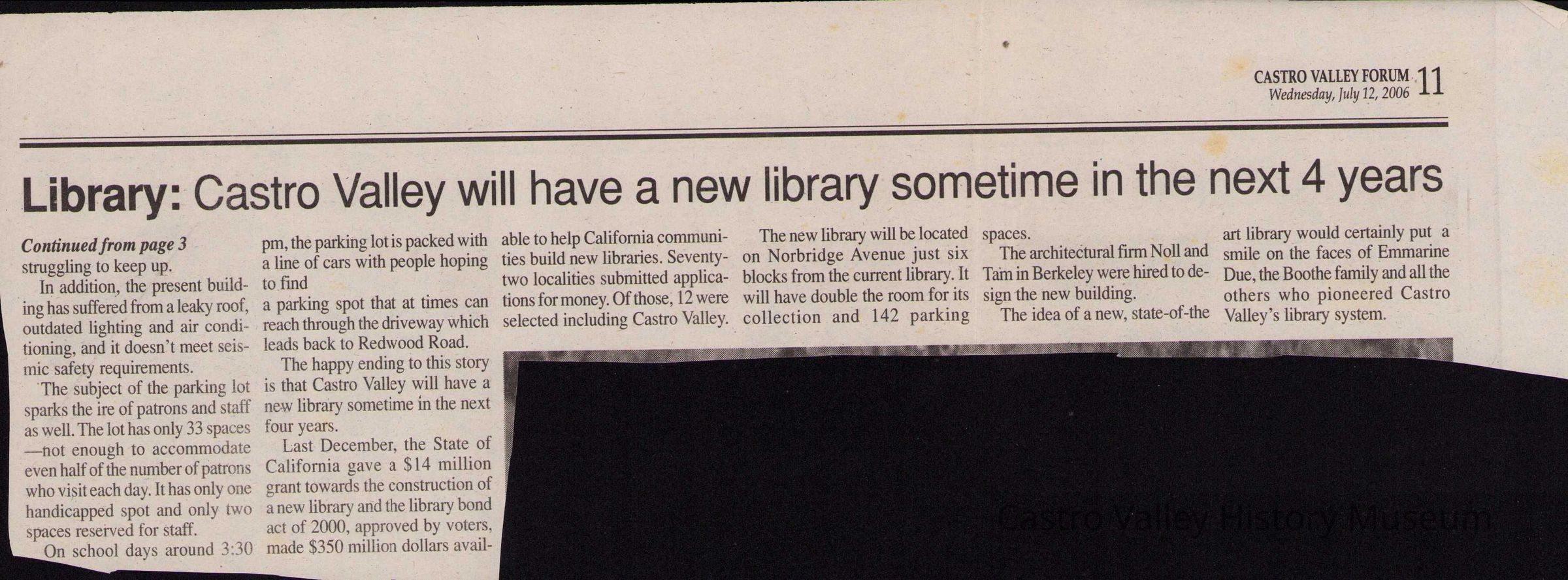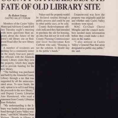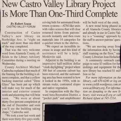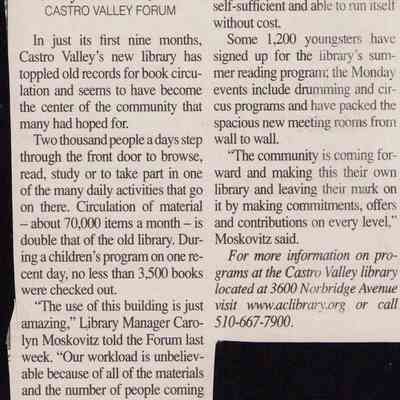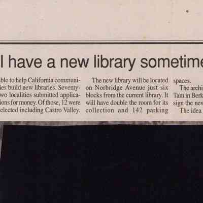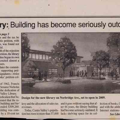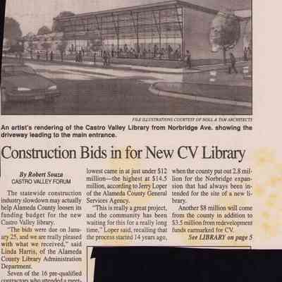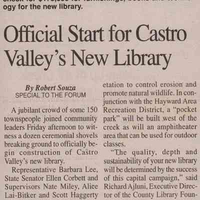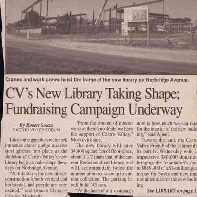 Articles from the Castro Valley Forum and Oakland Tribune on the new Castro Valley library on Norbridge Ave.