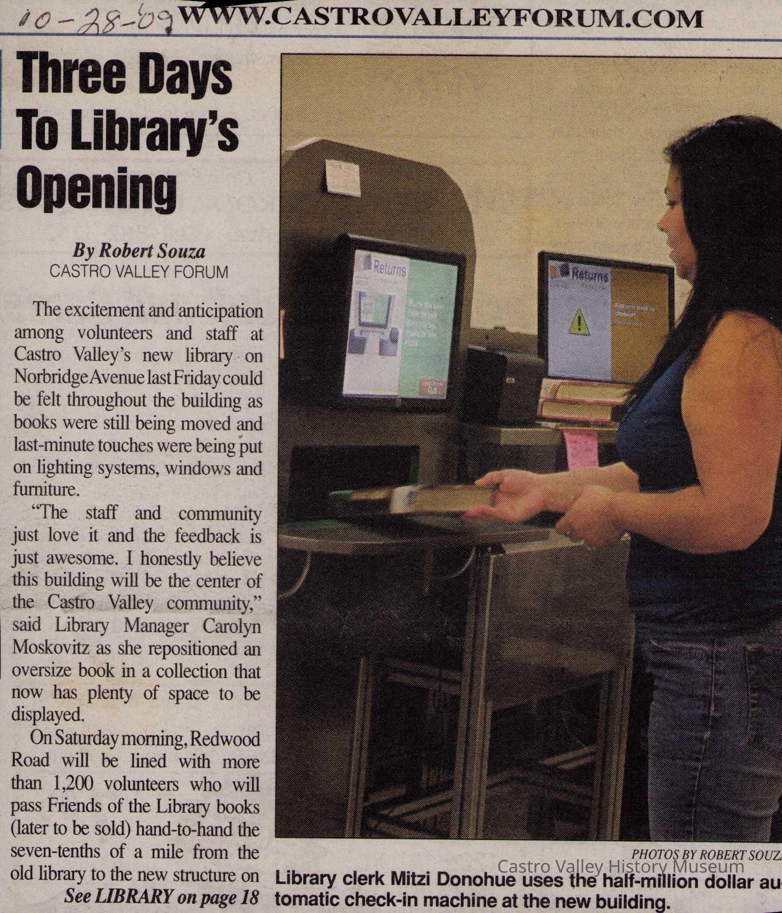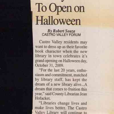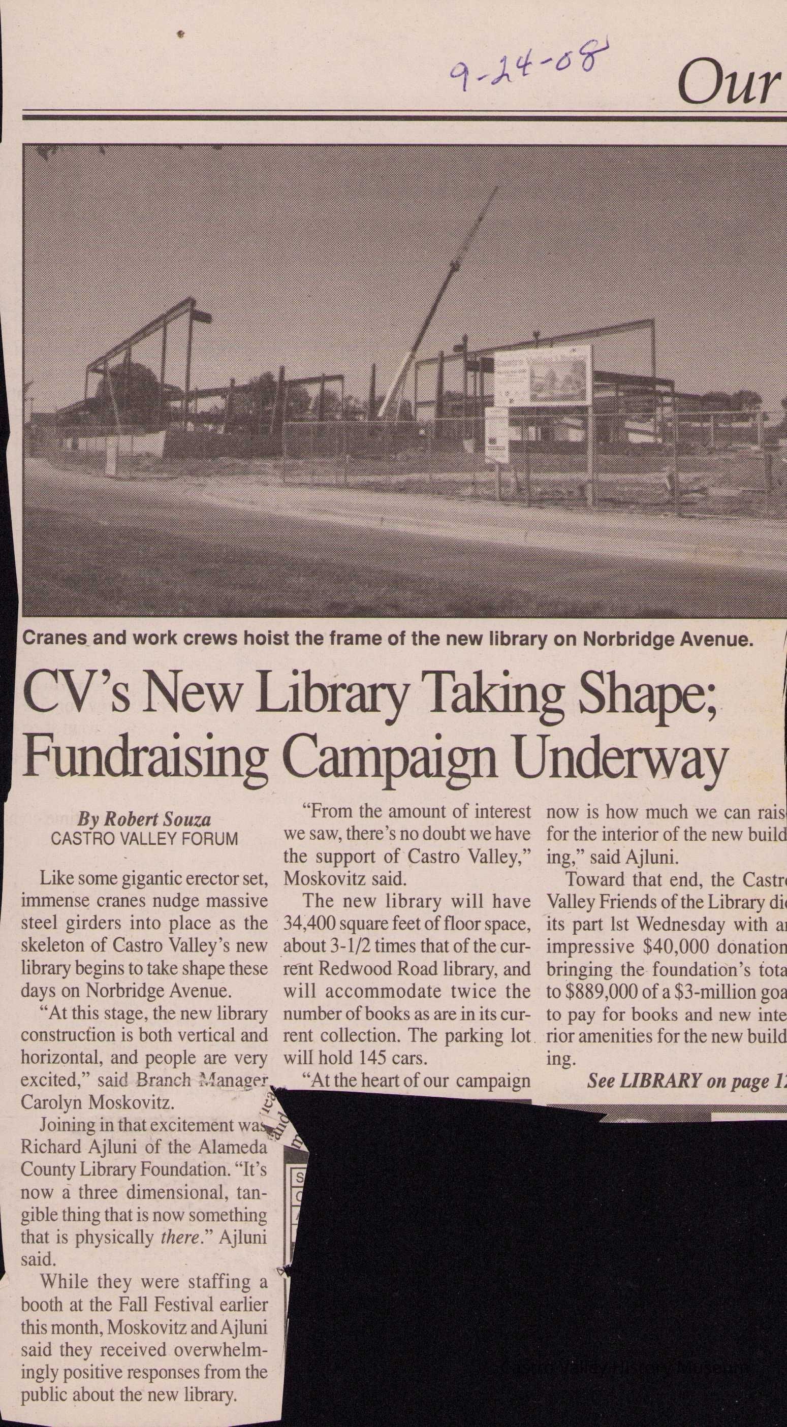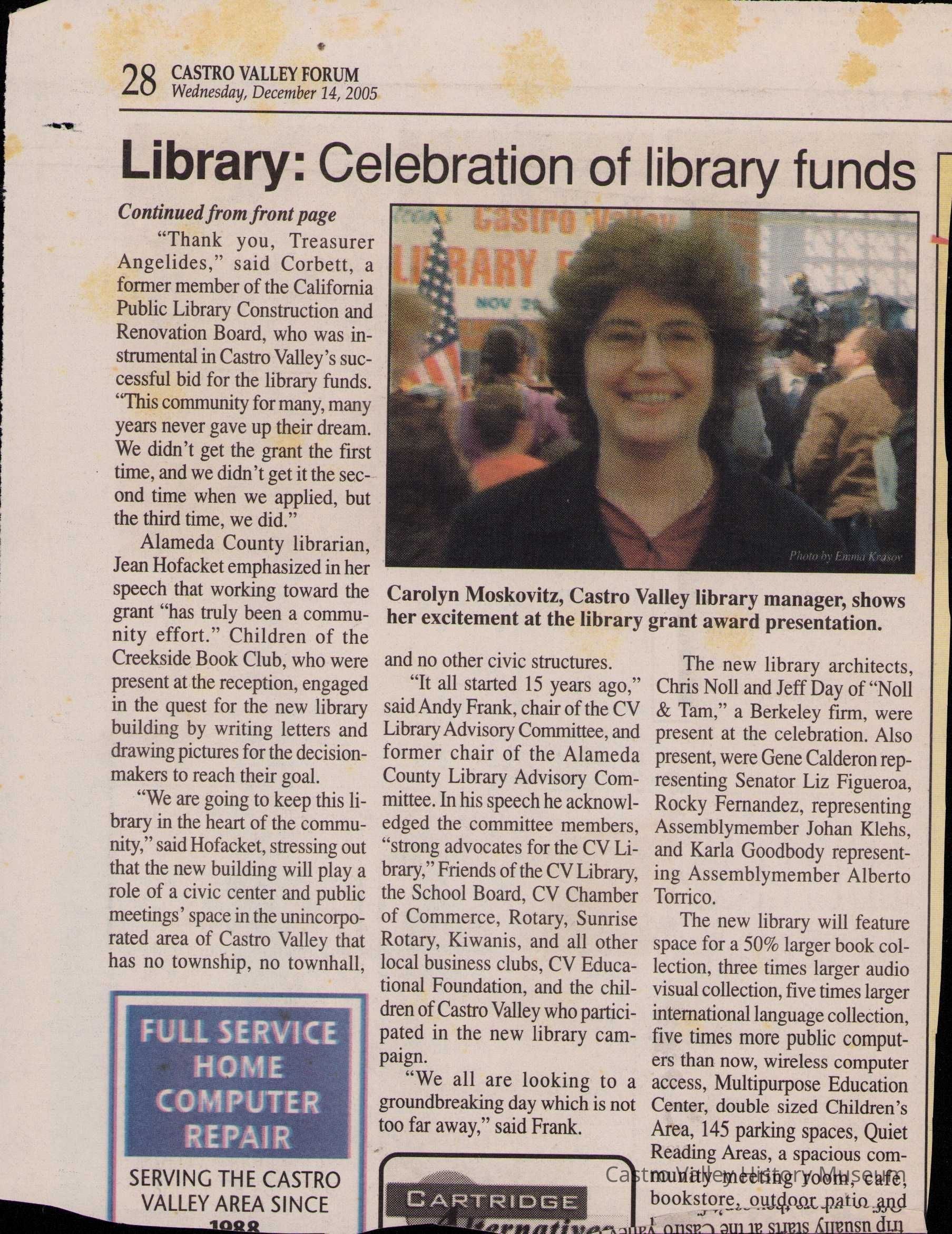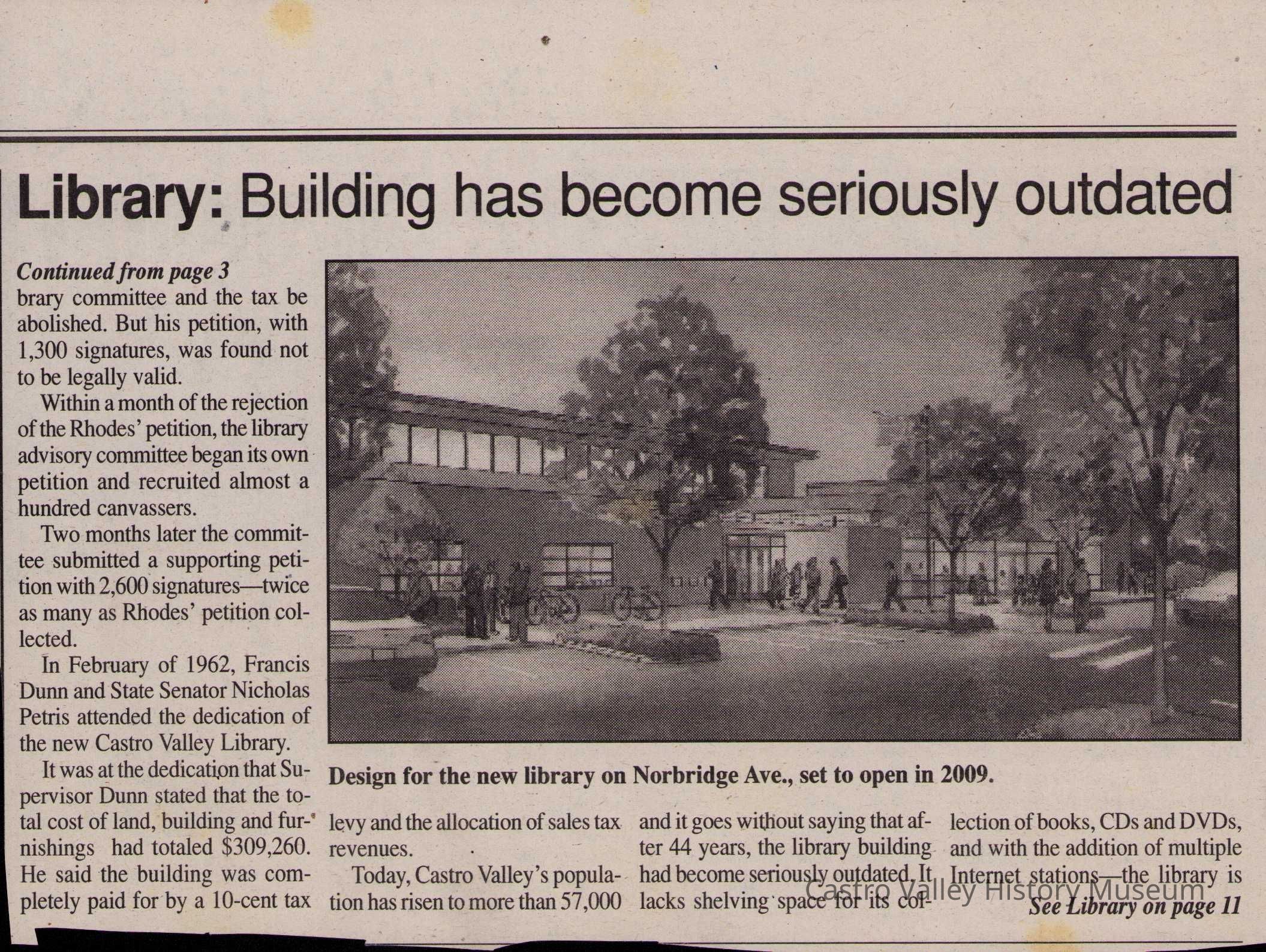 Articles from the Castro Valley Forum and Oakland Tribune on the new Castro Valley library on Norbridge Ave.