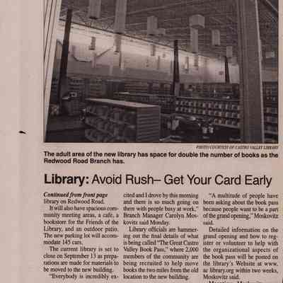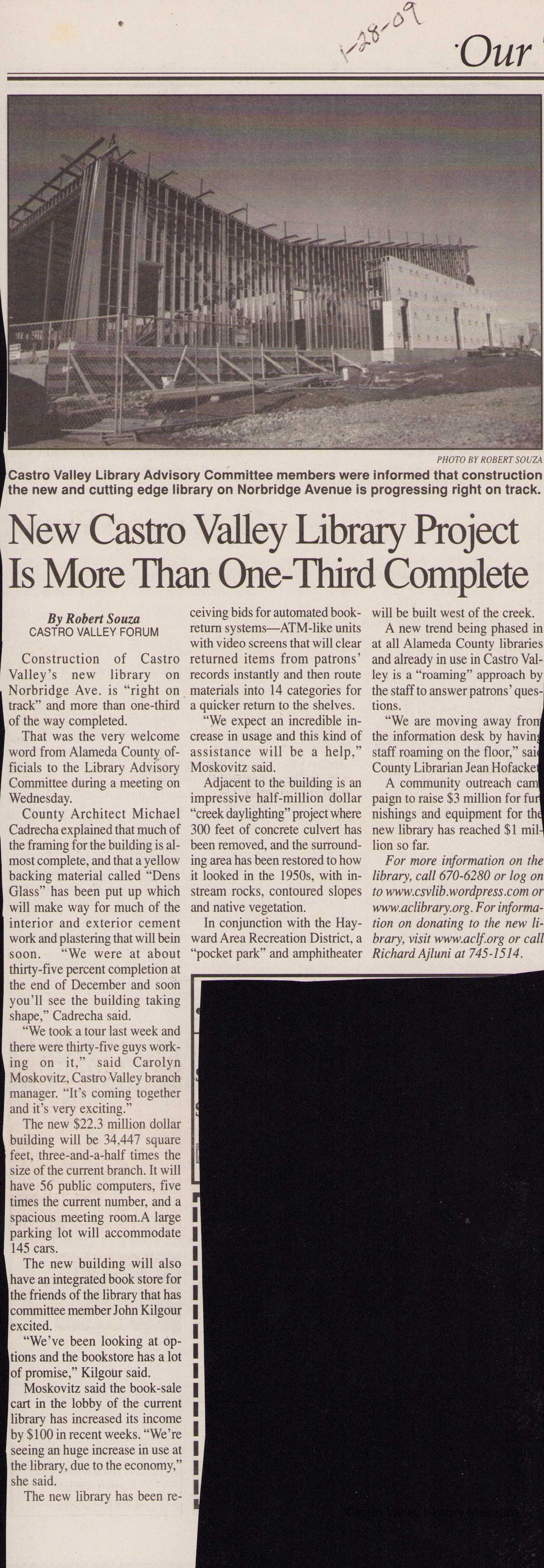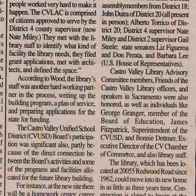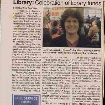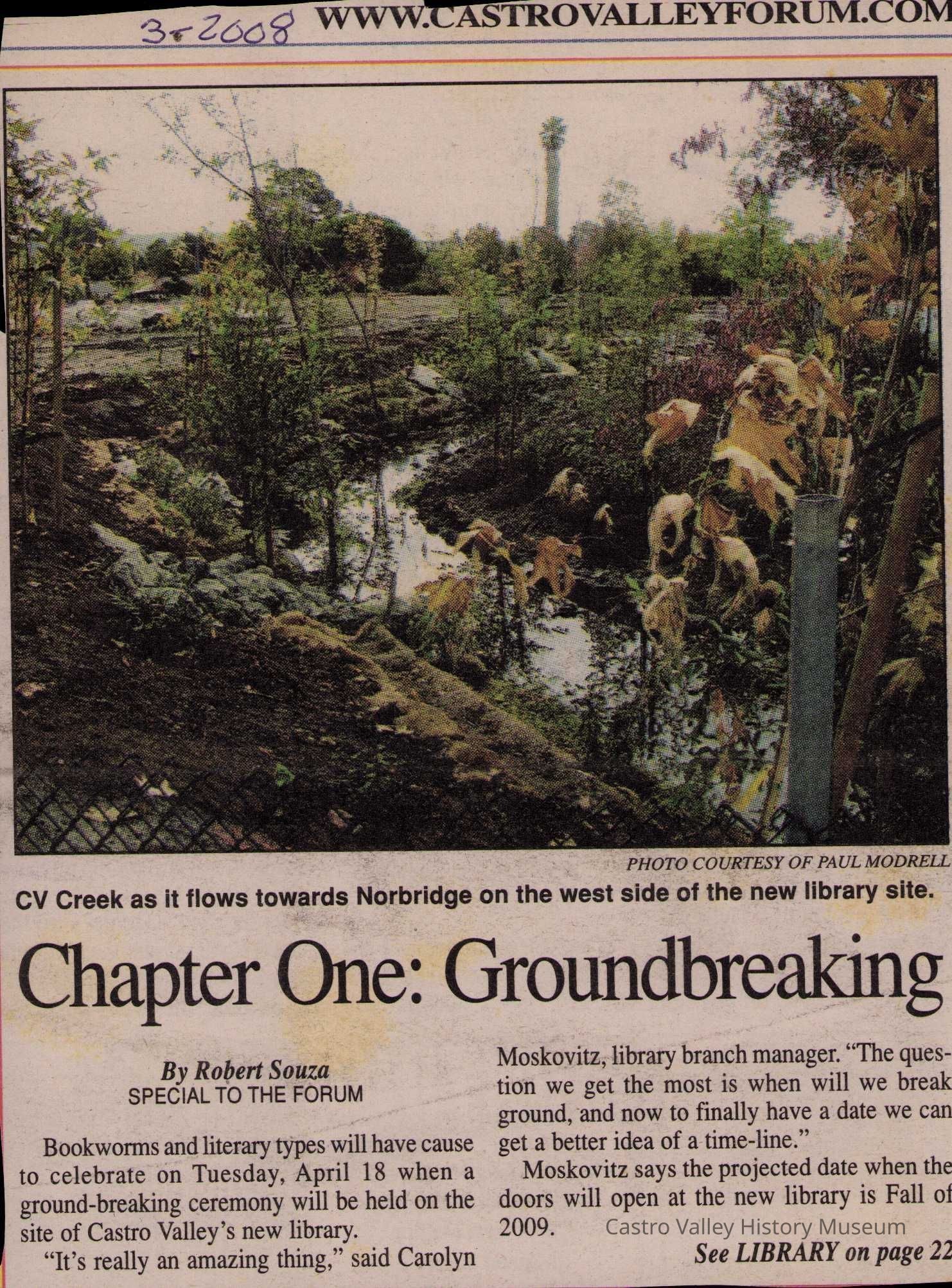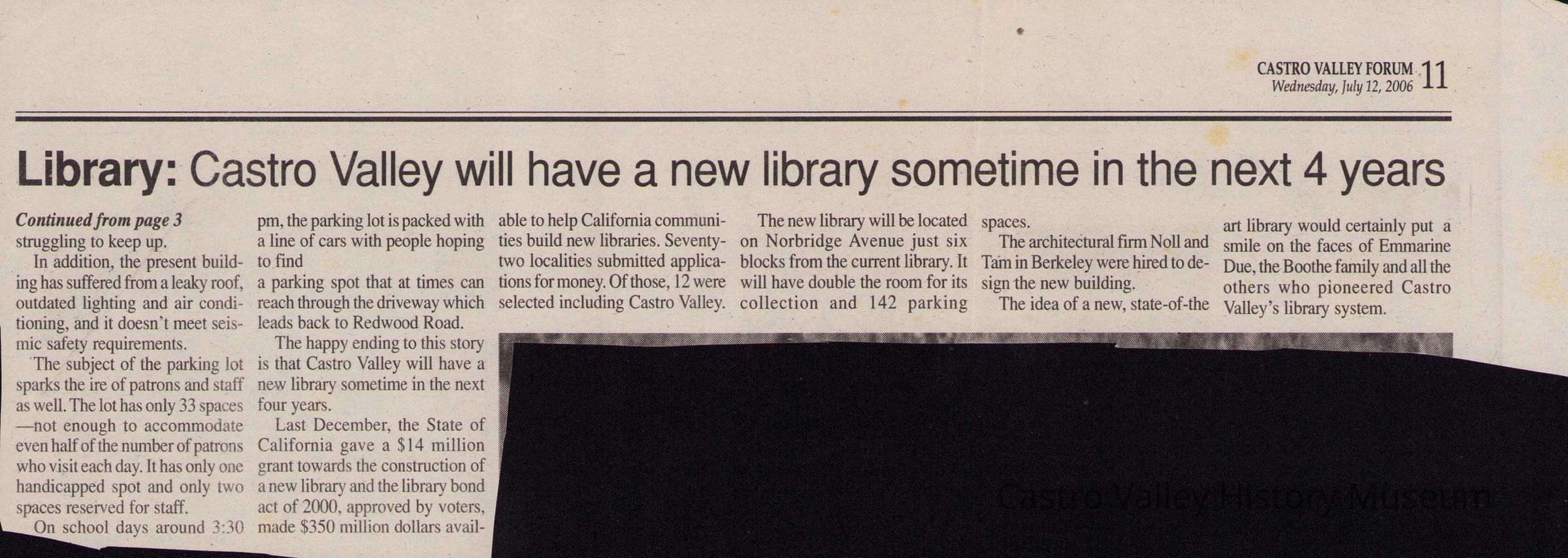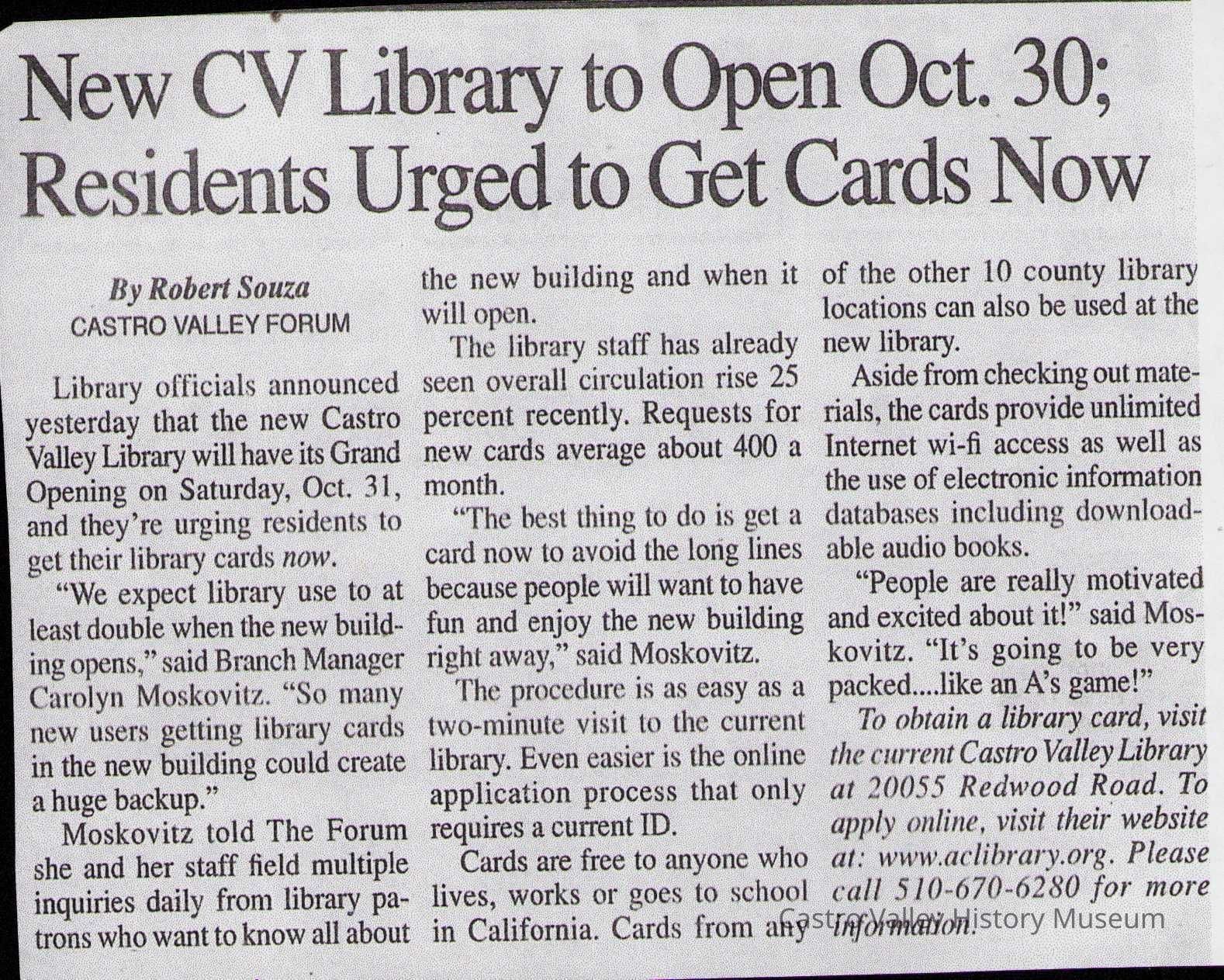 Articles from the Castro Valley Forum and Oakland Tribune on the new Castro Valley library on Norbridge Ave.