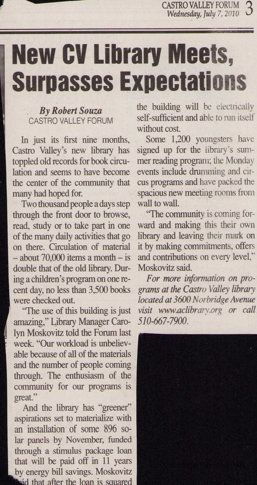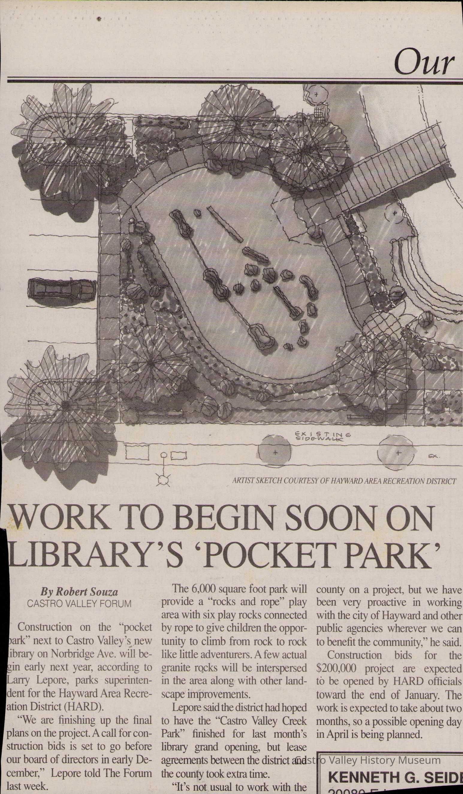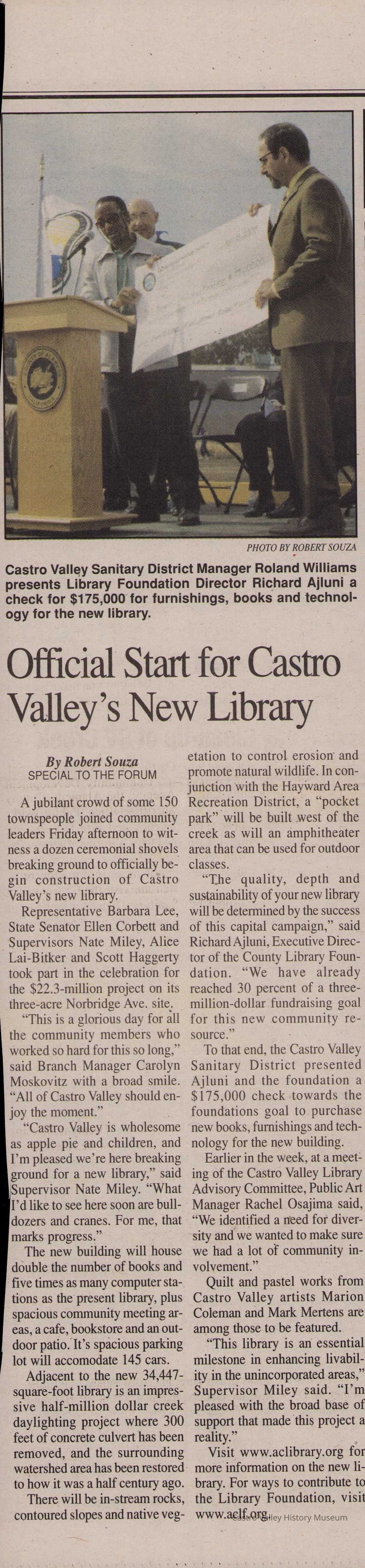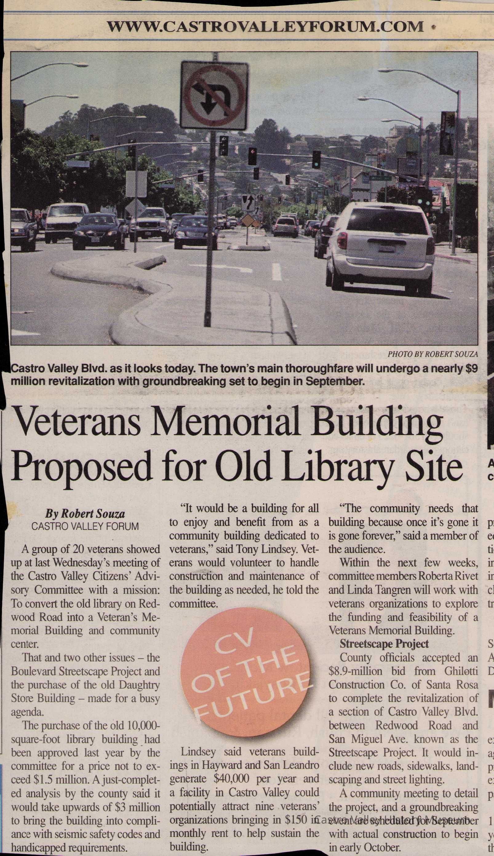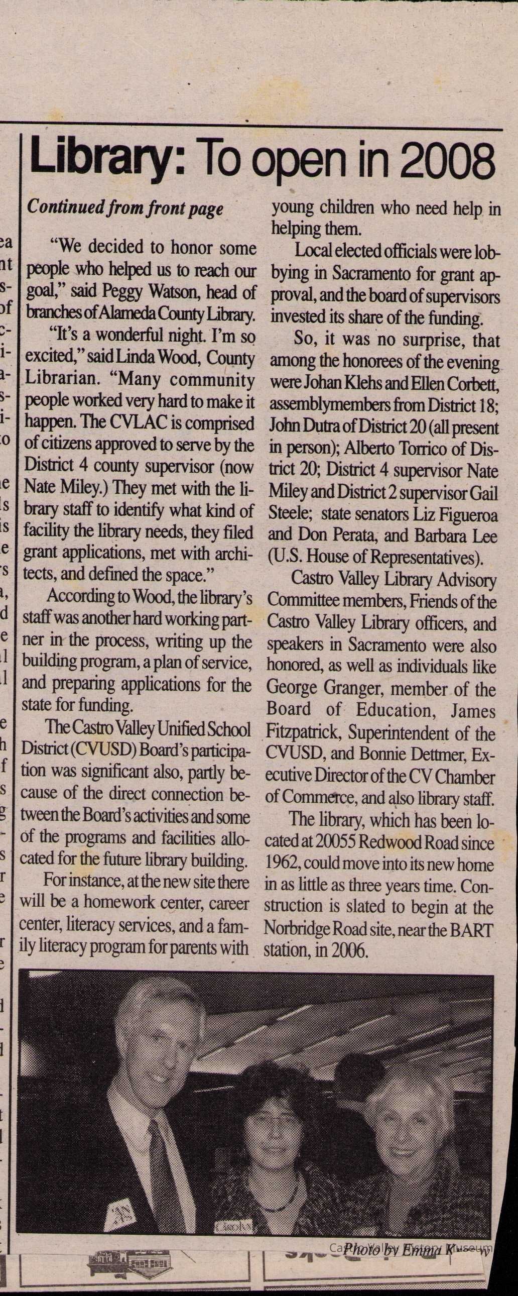 Articles from the Castro Valley Forum and Oakland Tribune on the new Castro Valley library on Norbridge Ave.