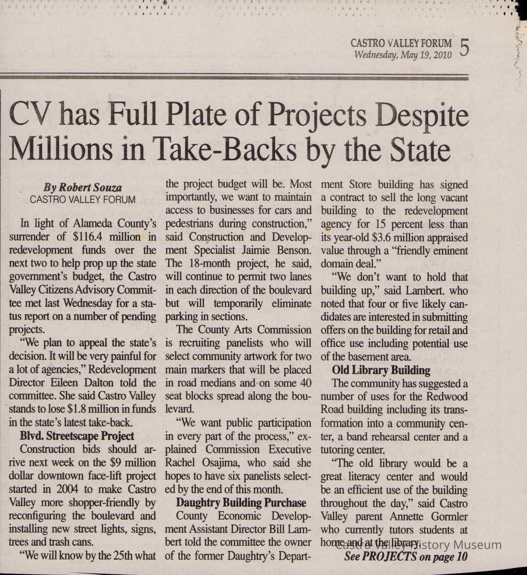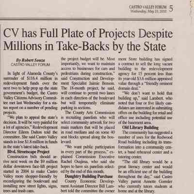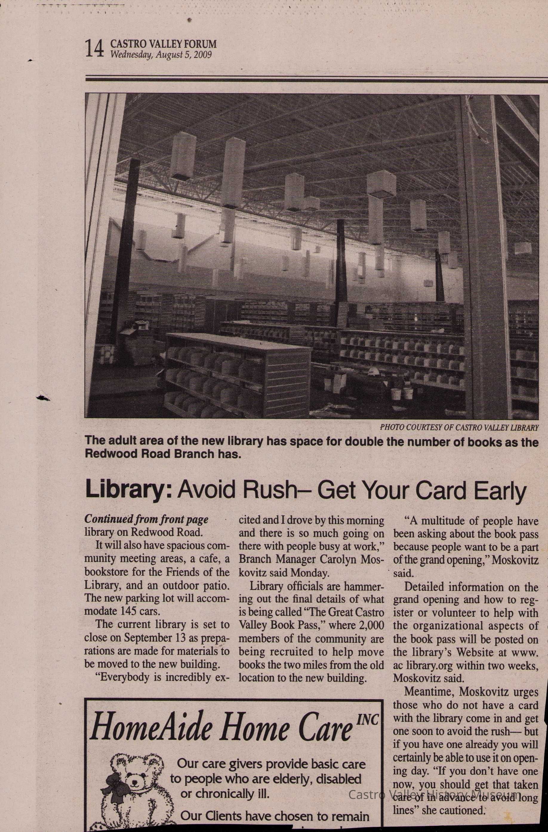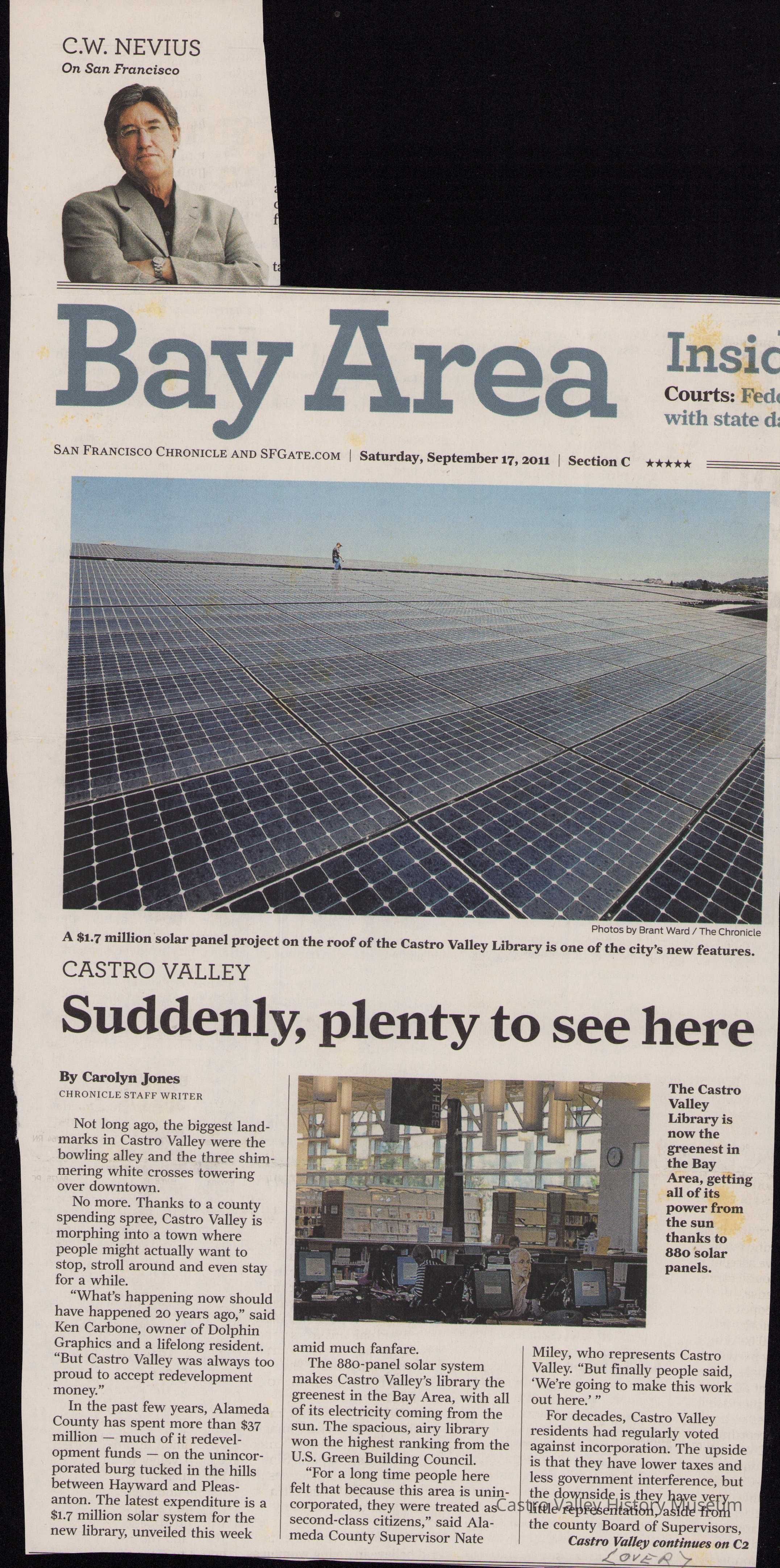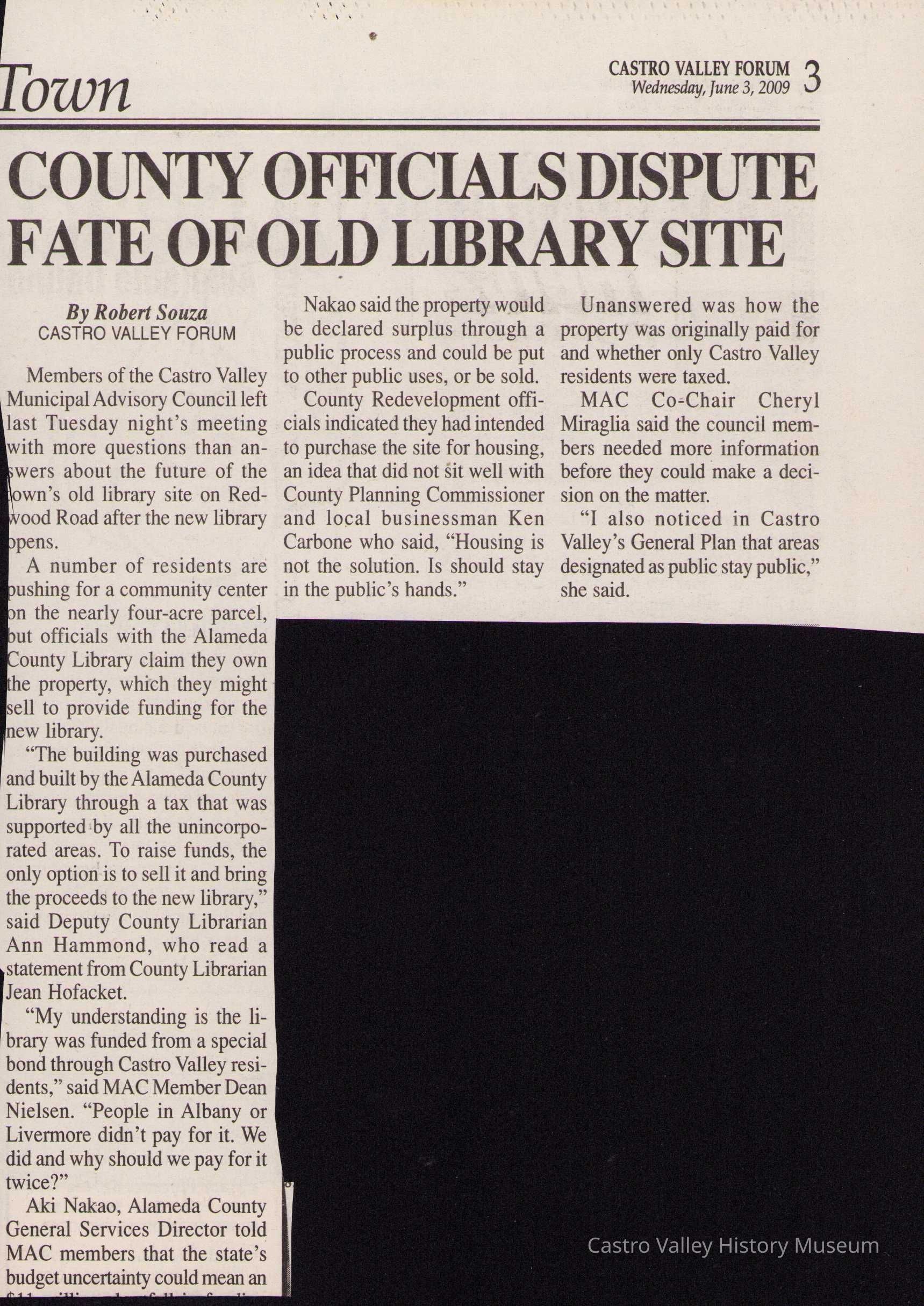 Articles from the Castro Valley Forum and Oakland Tribune on the new Castro Valley library on Norbridge Ave.