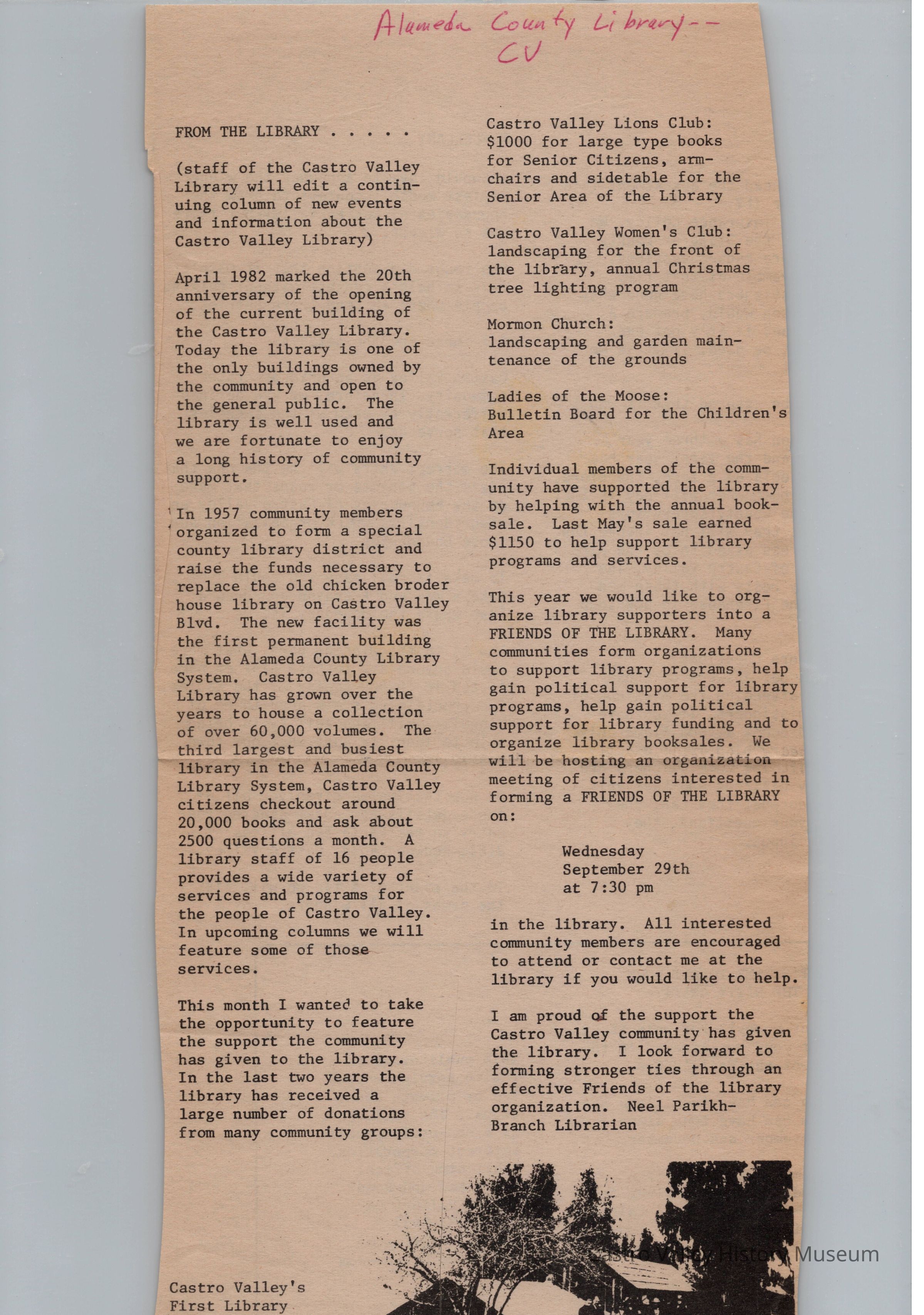 Newspaper Column - From Staff of the Castro Valley LibraryScope and Content