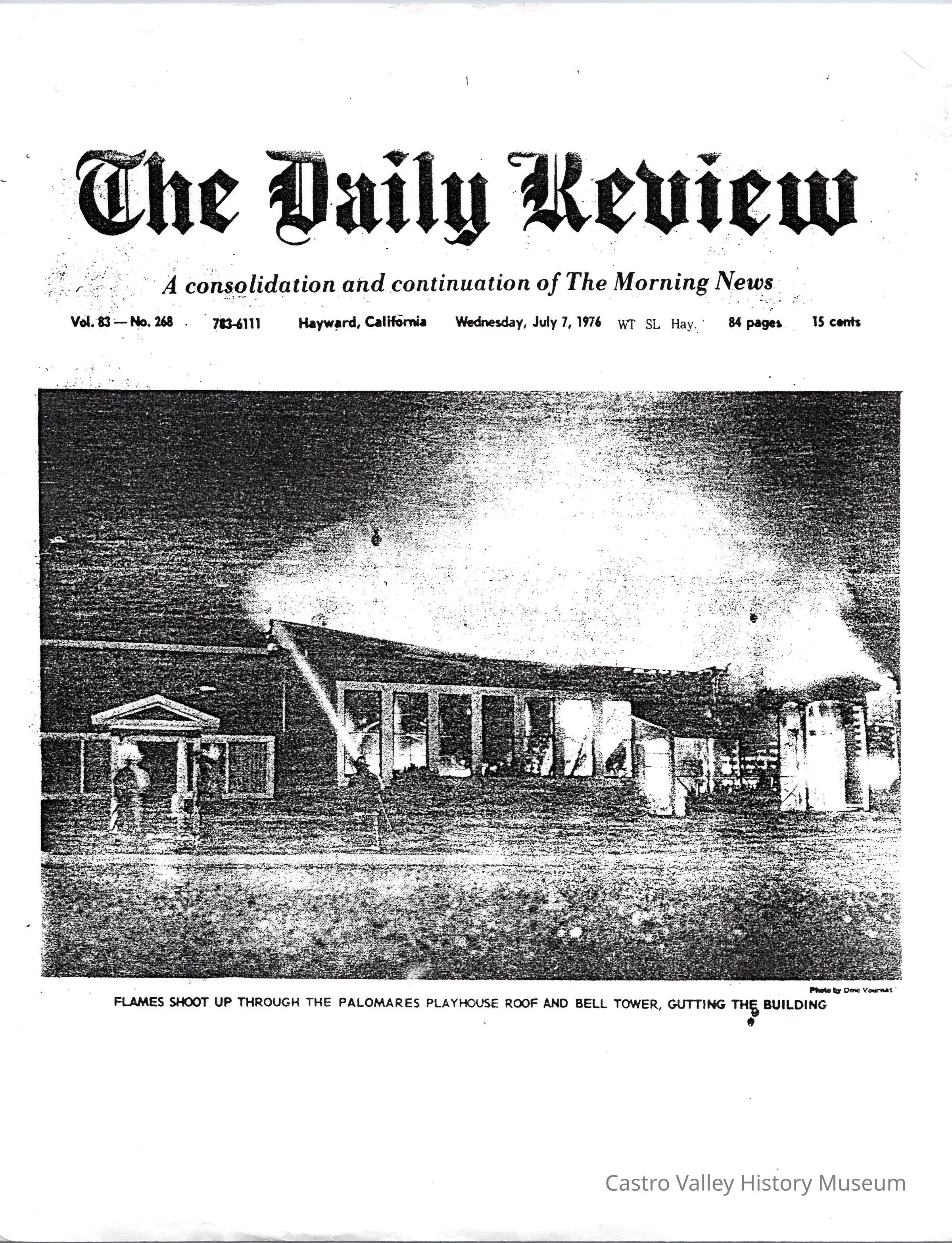 Photo captioned Flames Shoot Up Through the Palomares Playhouse Roof and Bell Tower, Gutting the BuildingCollection