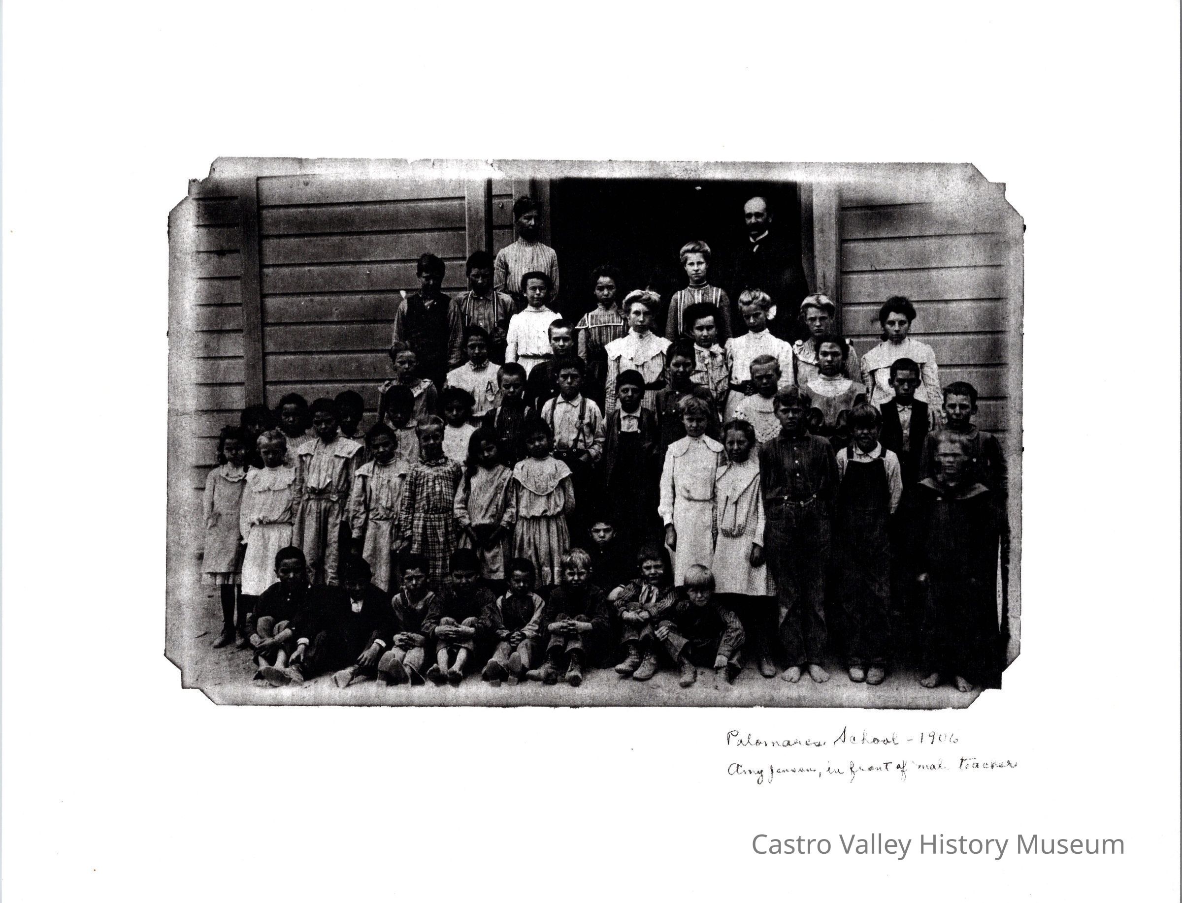 Photo Palomares School 1906 Amy Jensen in front of [?] teacher