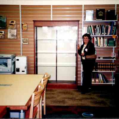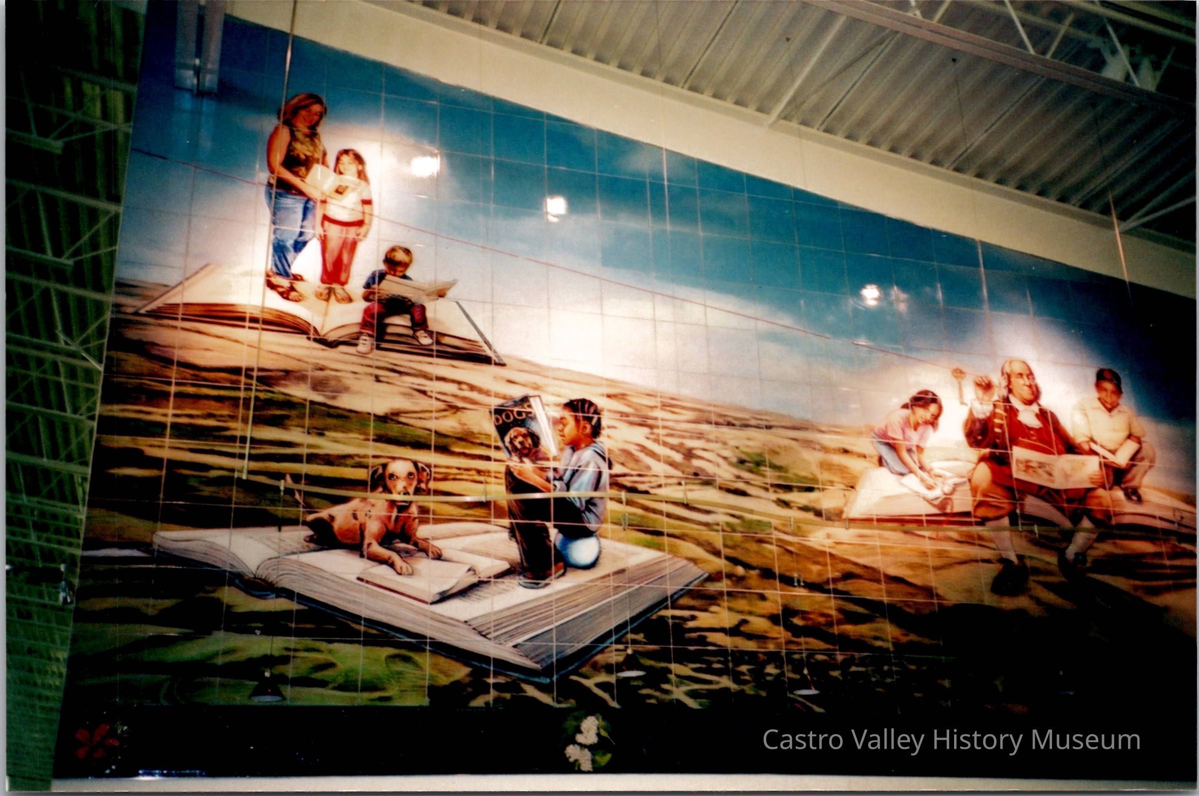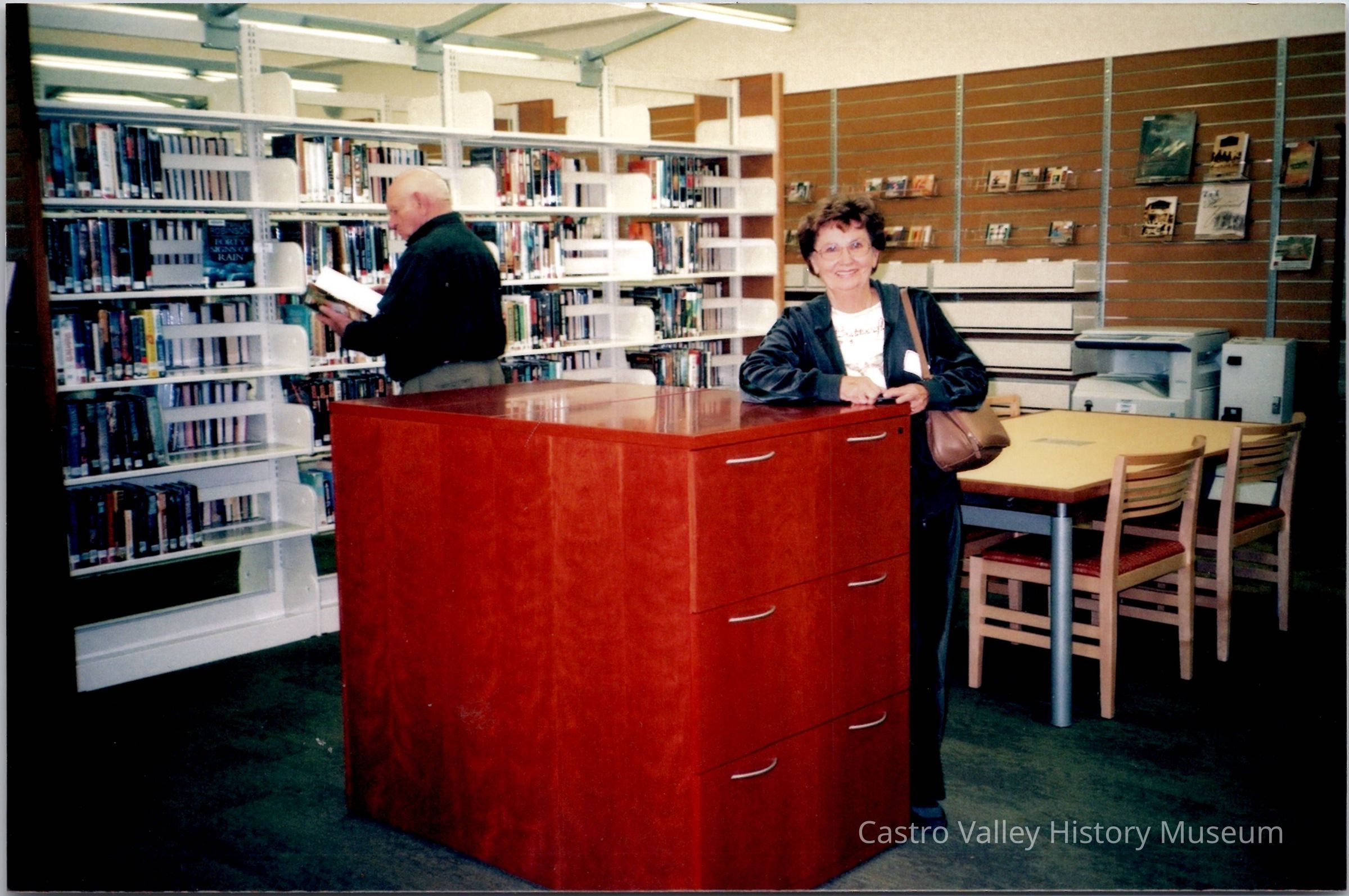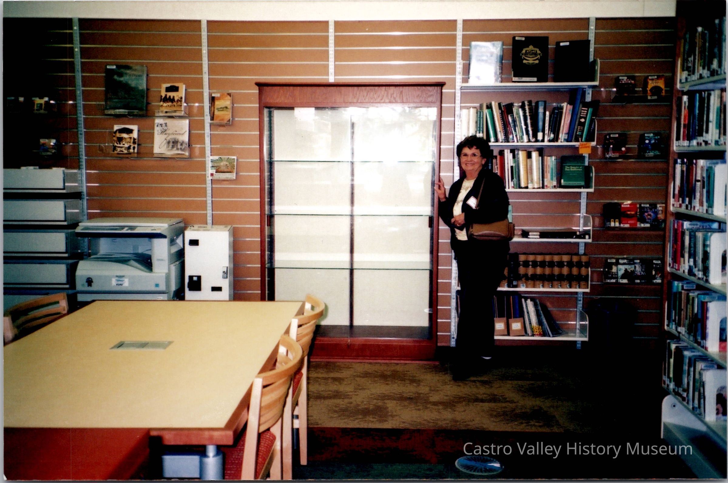 Photographs of Lucille Lorge in the History Area in the Castro Valley Library and a Library MuralScope and Content