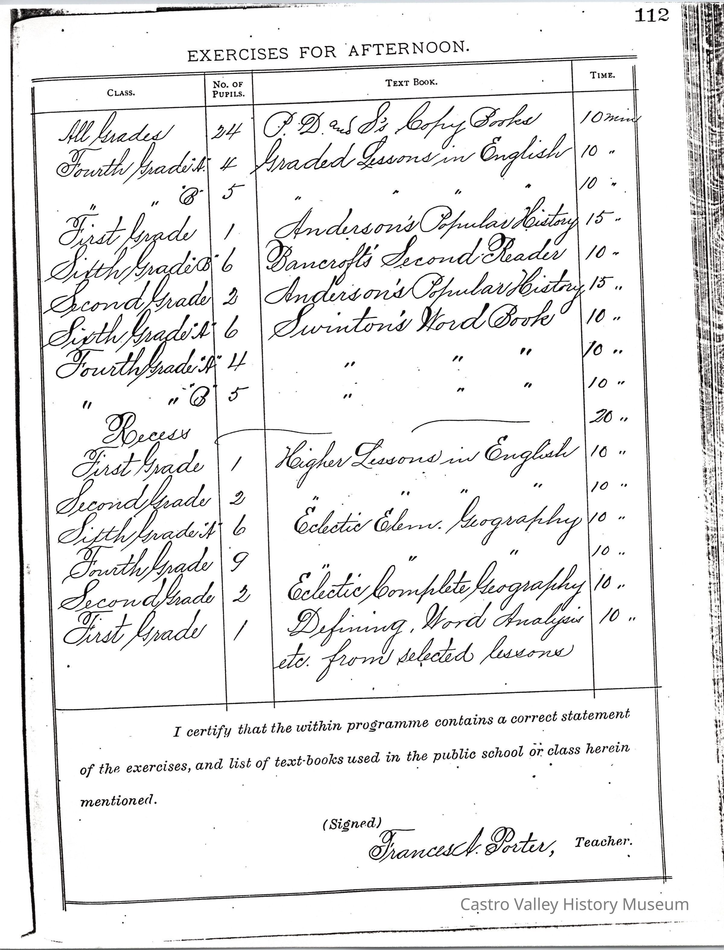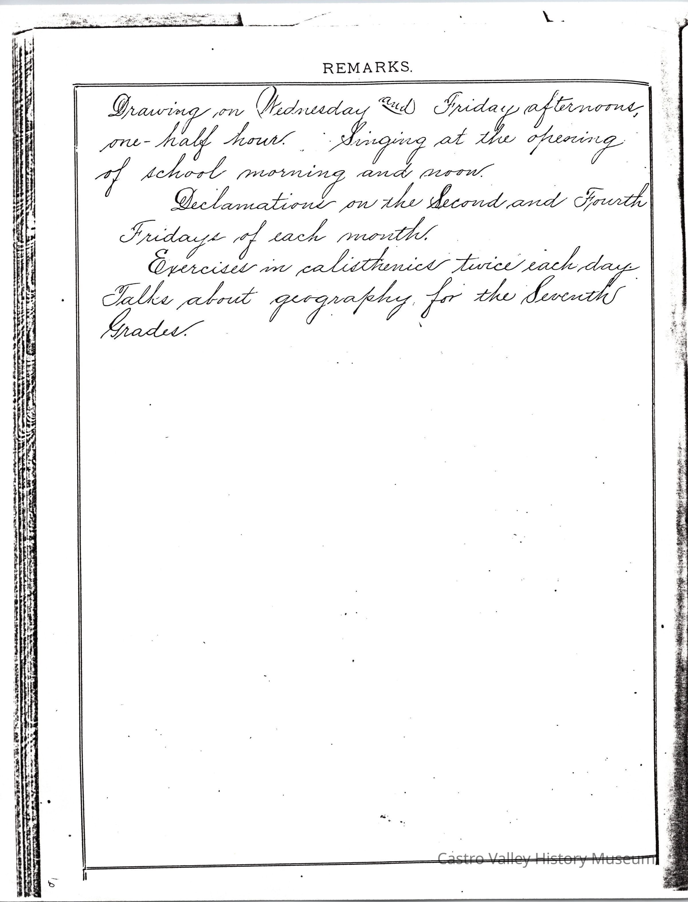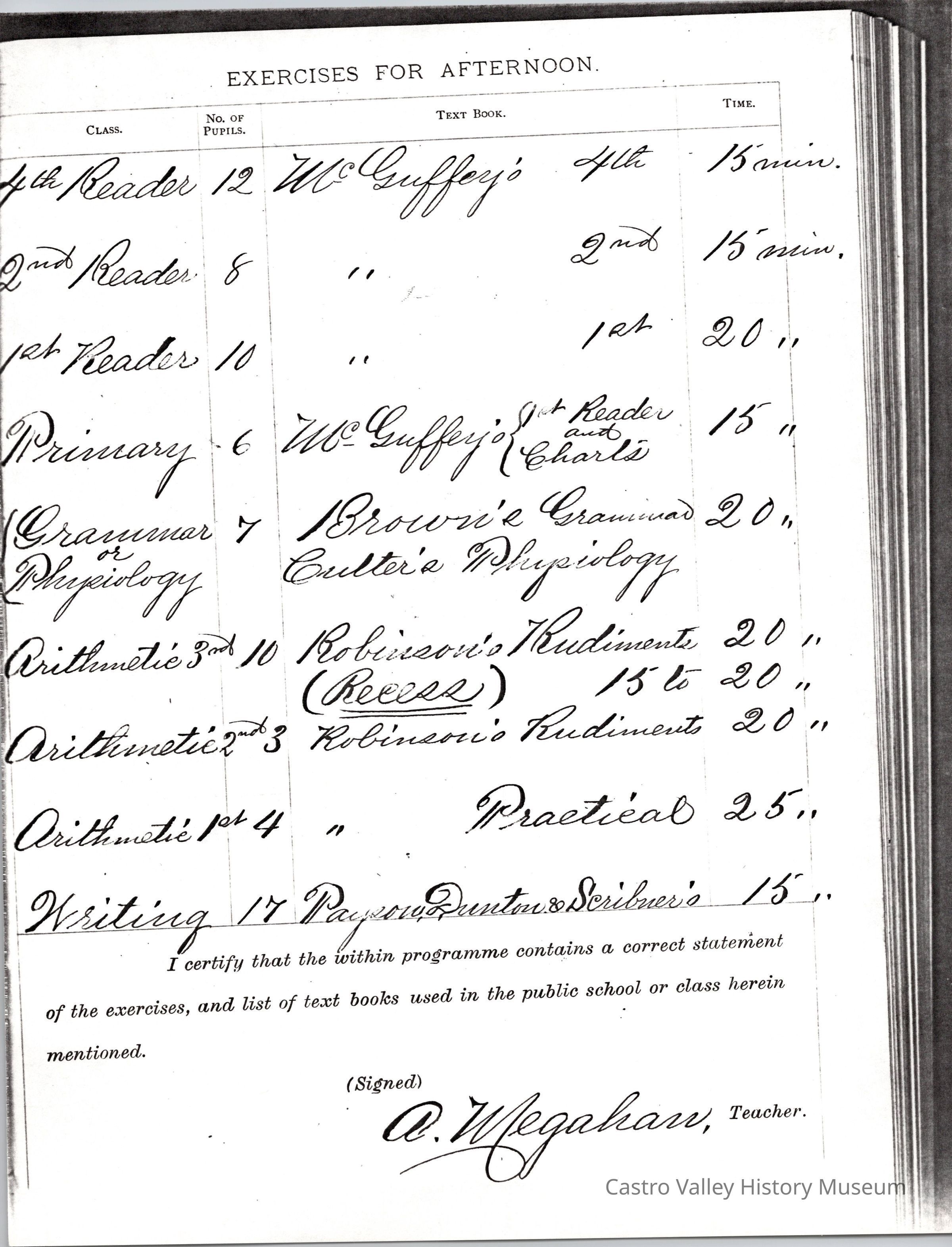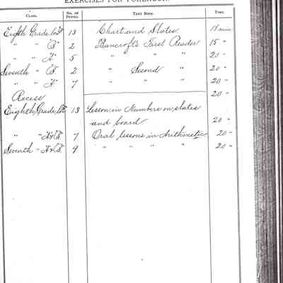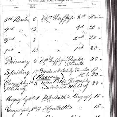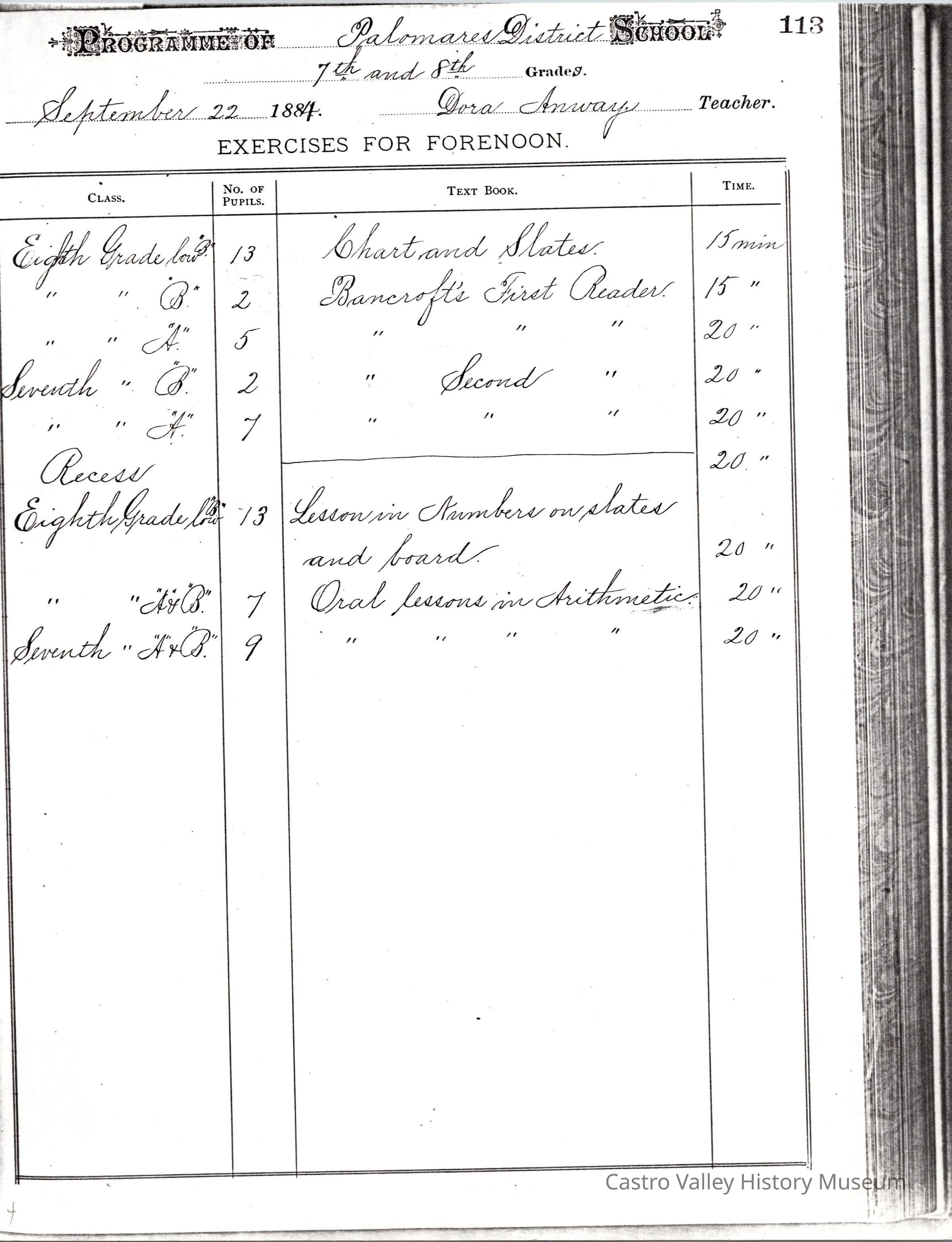 Exercises for Afternoon, Exercises for Forenoon, and Remarks from the following teachers: Dora Anway, Frances A. Porter, Dora Anway (September 22, 1884), A. Megahan (March 1879).Collection