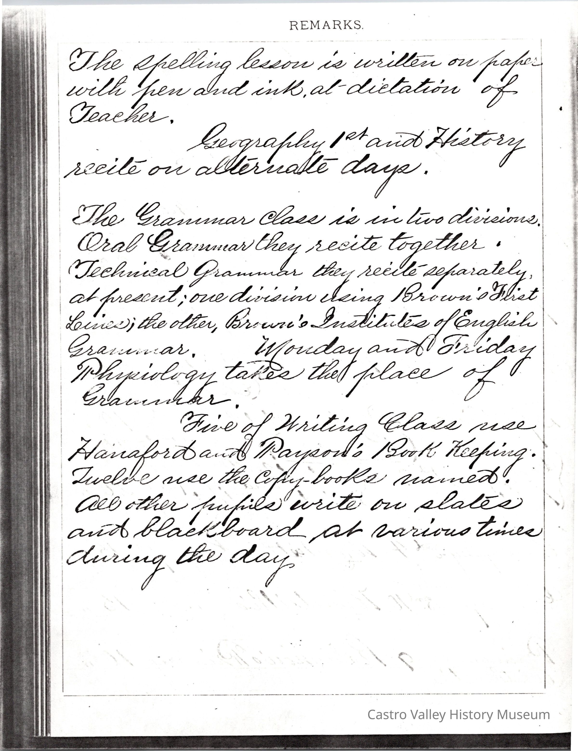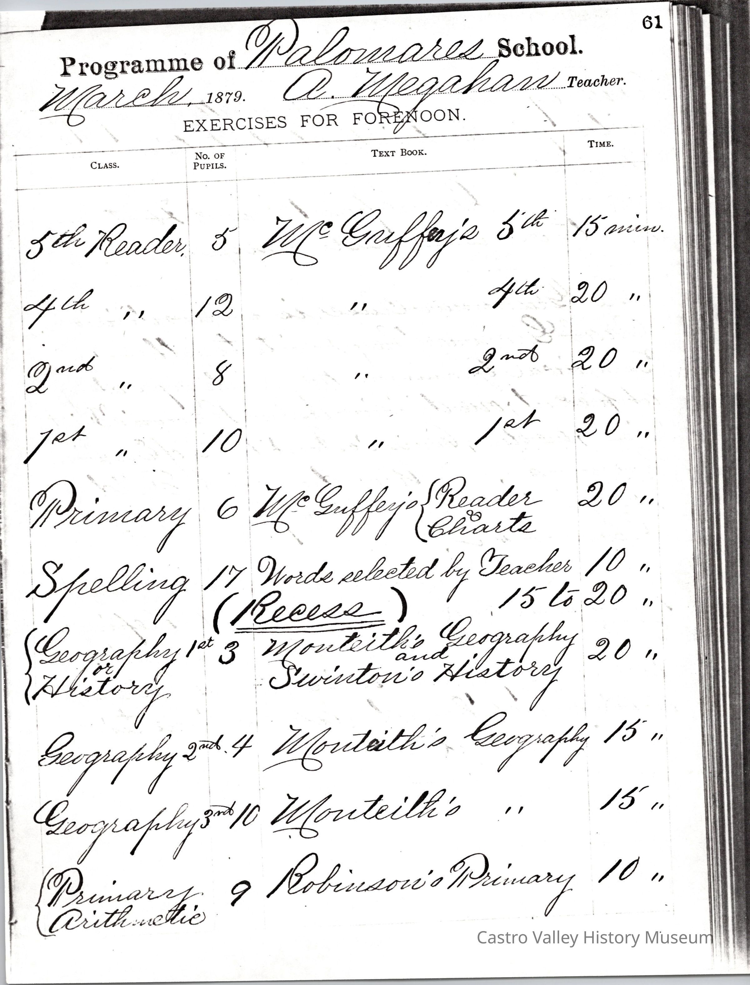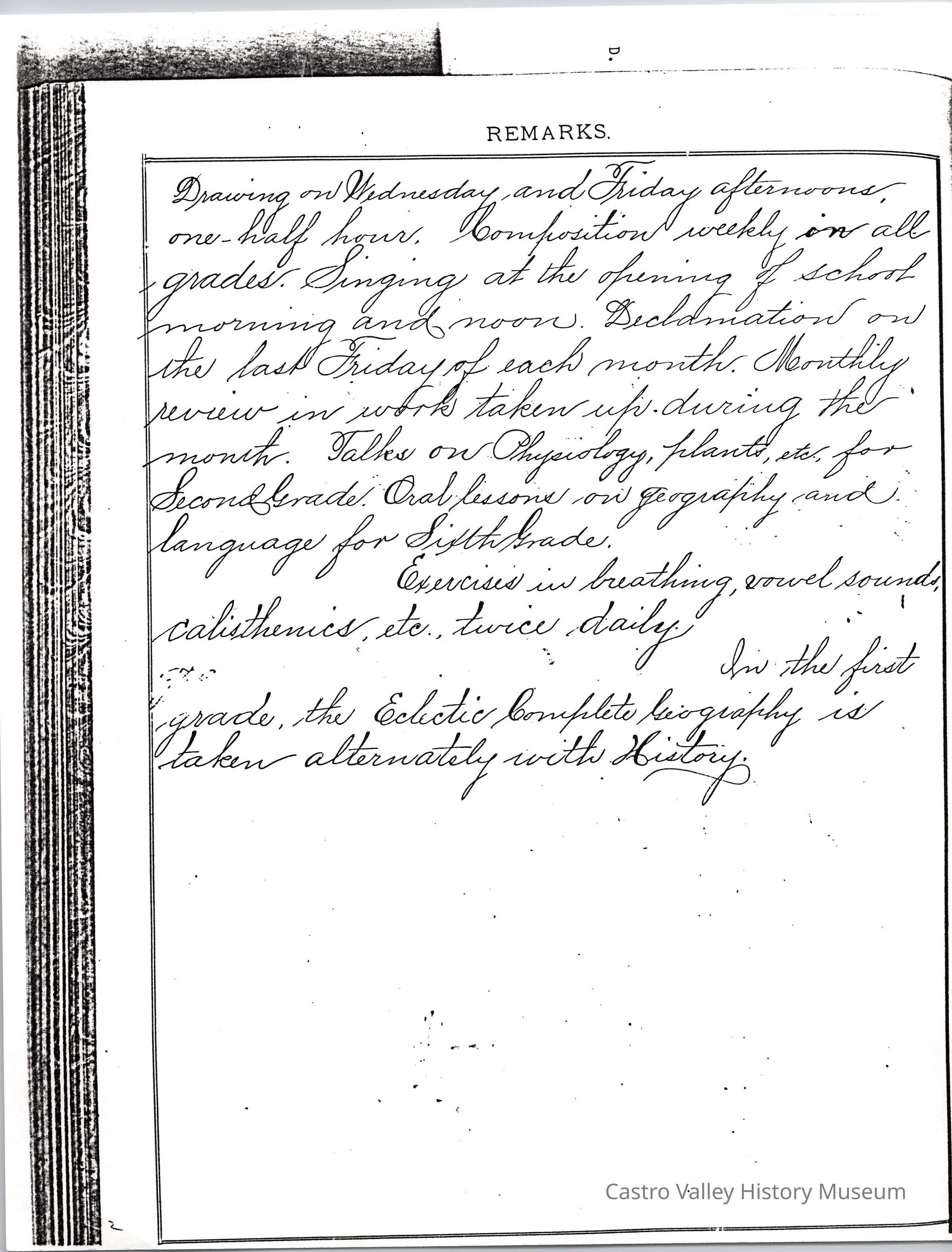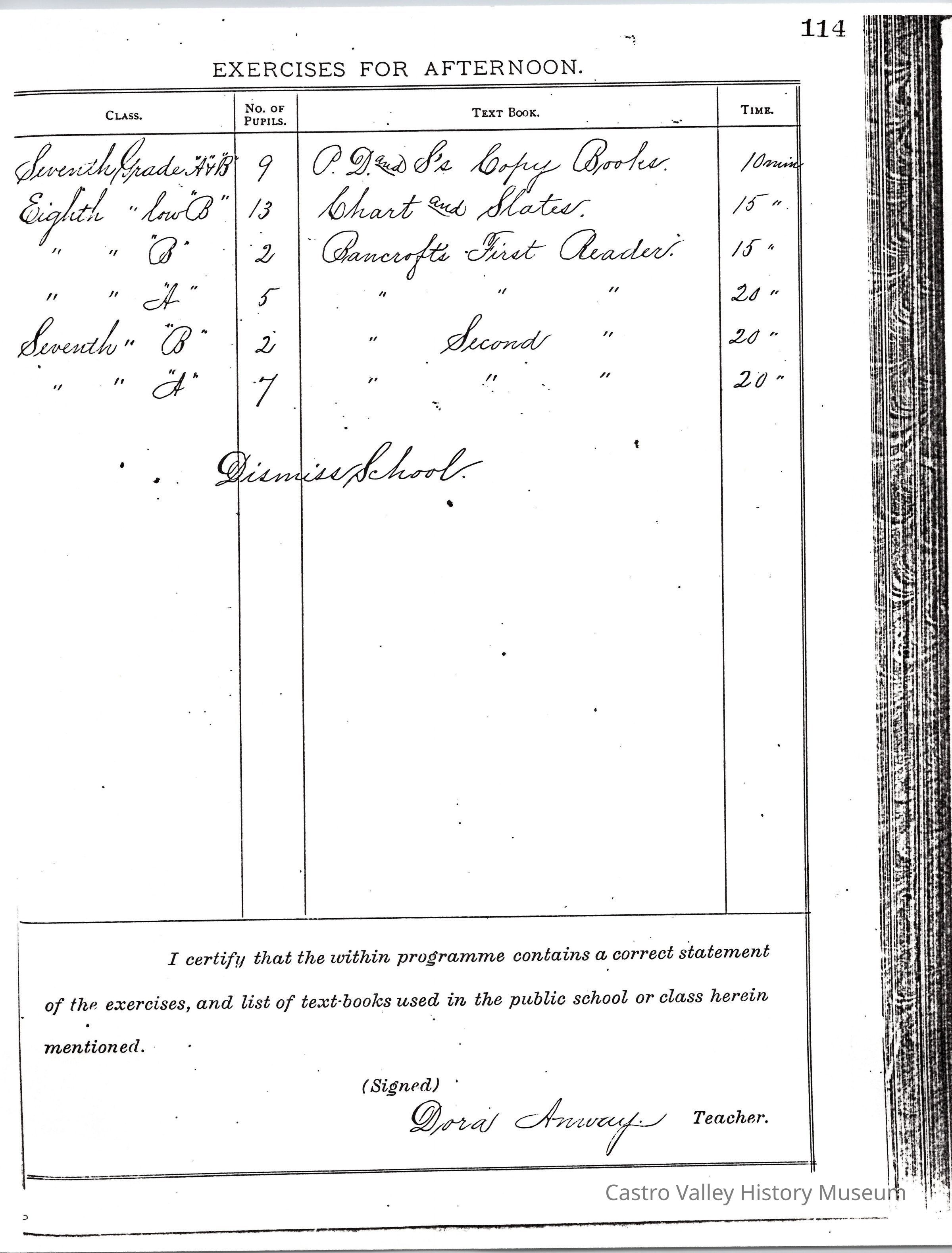 Exercises for Afternoon, Exercises for Forenoon, and Remarks from the following teachers: Dora Anway, Frances A. Porter, Dora Anway (September 22, 1884), A. Megahan (March 1879).Collection