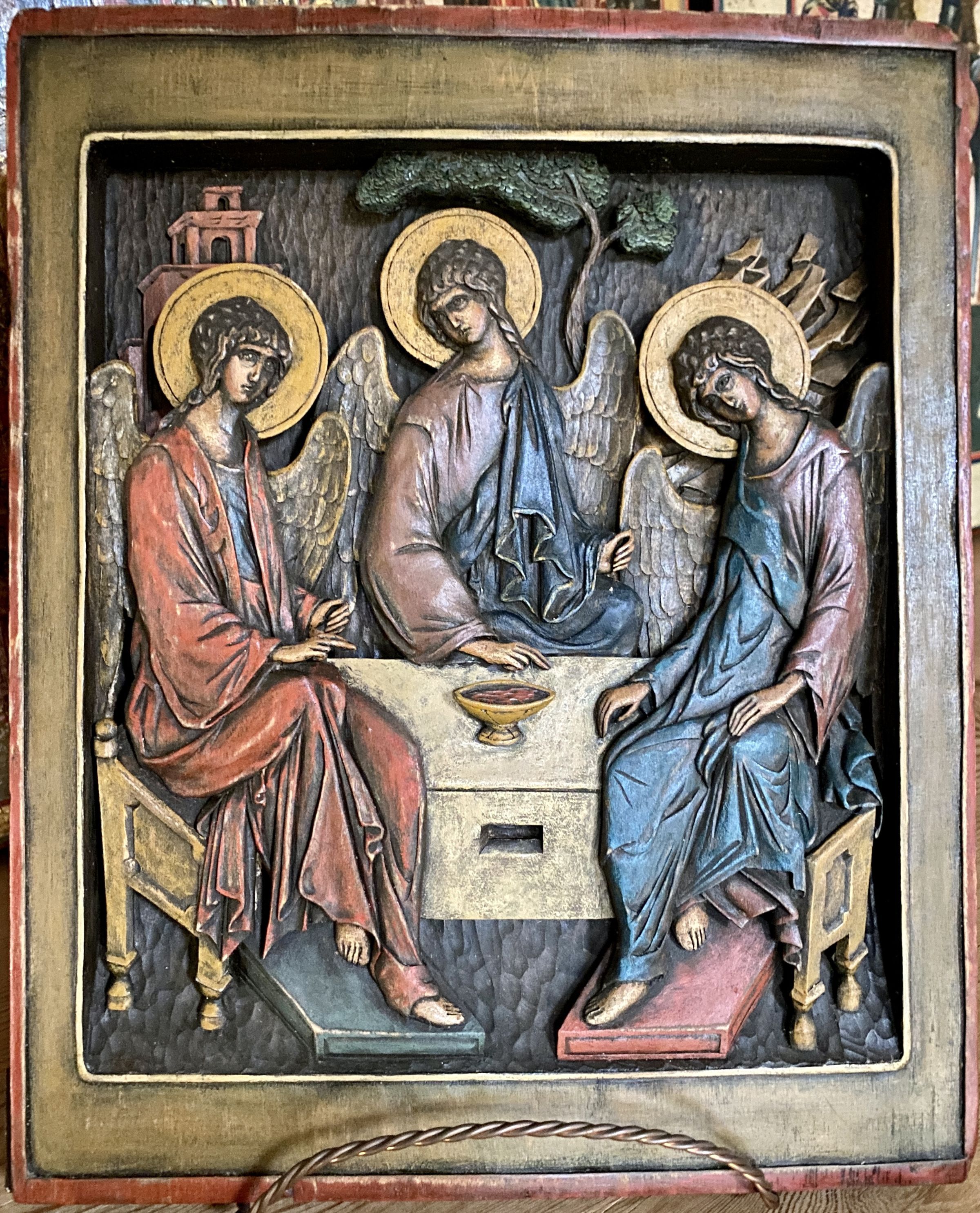 Bas-relief carving of Rublev's Trinity