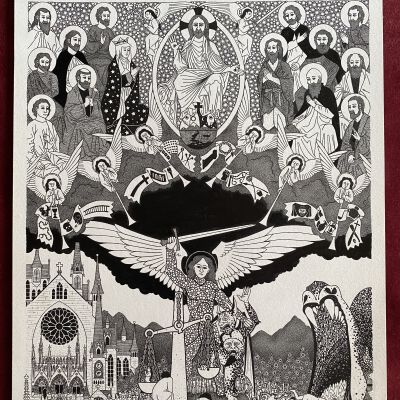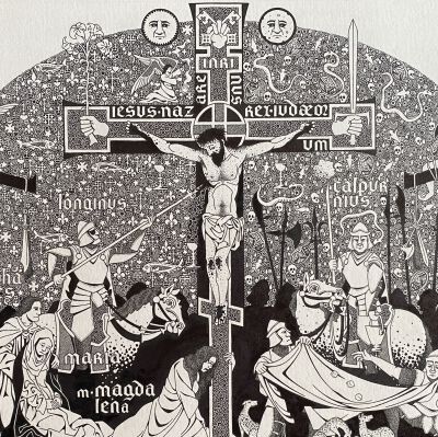 Z001a OT Trinity Bible Bookmark & 4 Evangelists Veil in the style of the Book of Kells