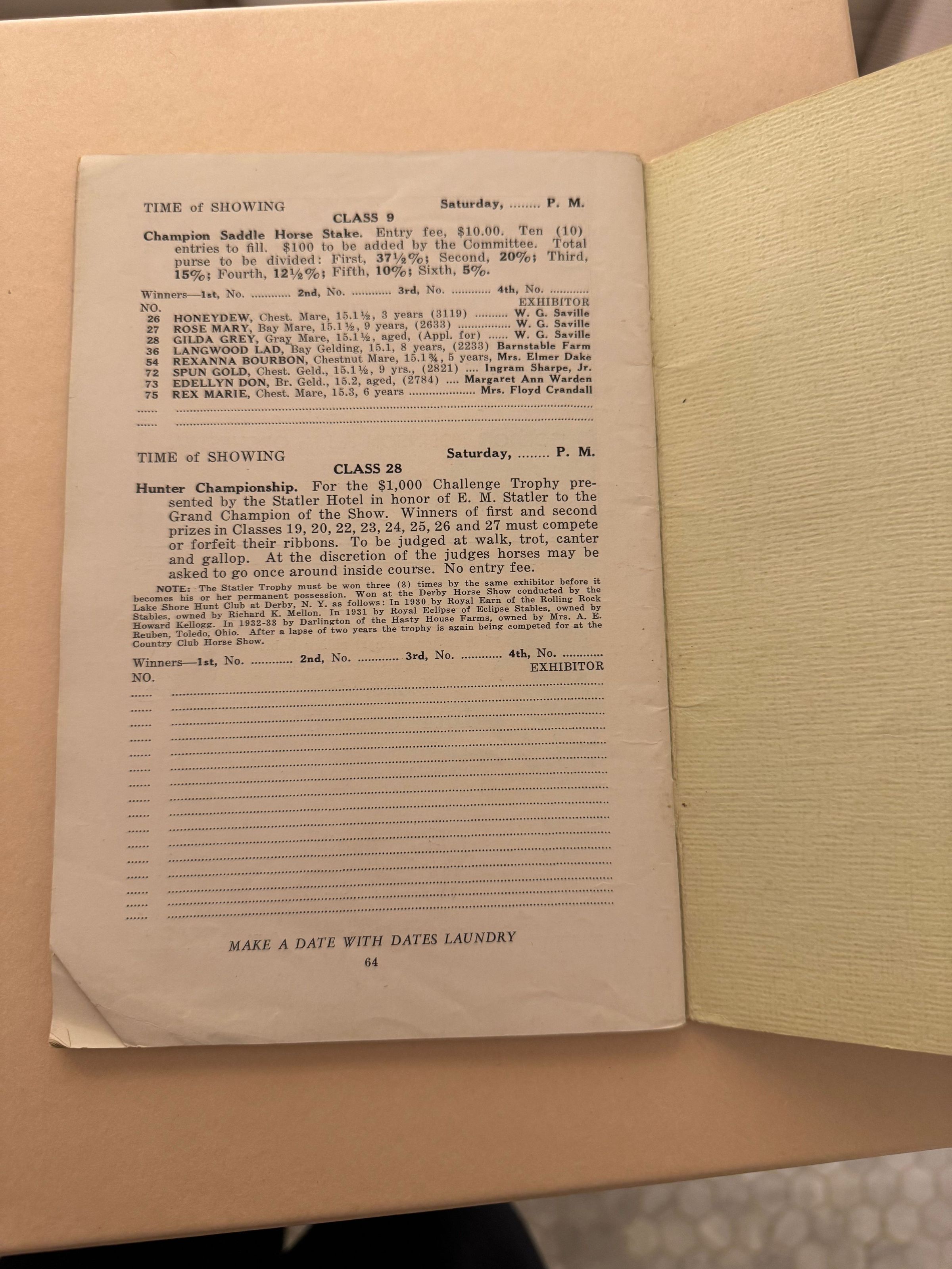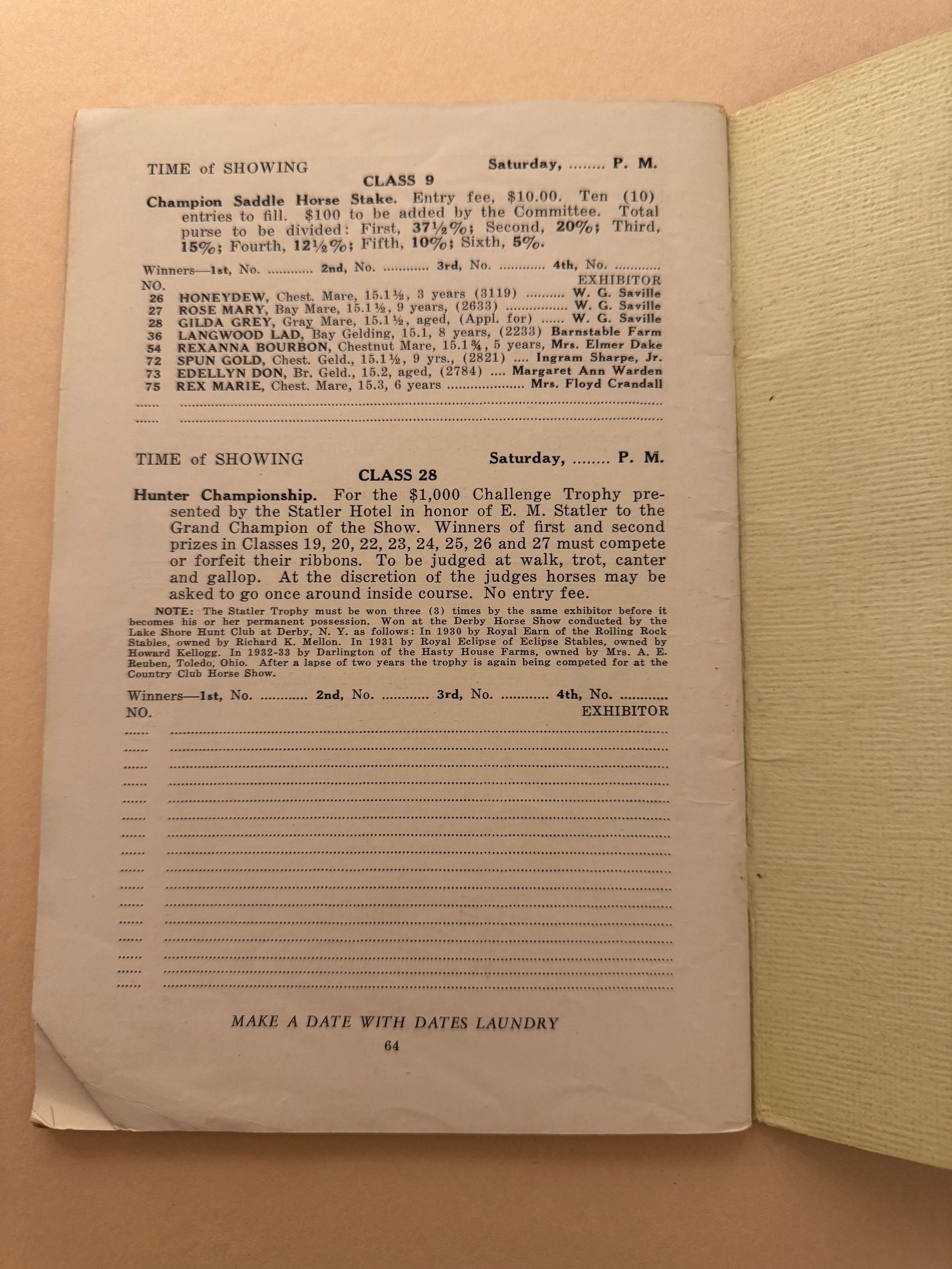 Horse Show Programme, 1936Entry/Object ID