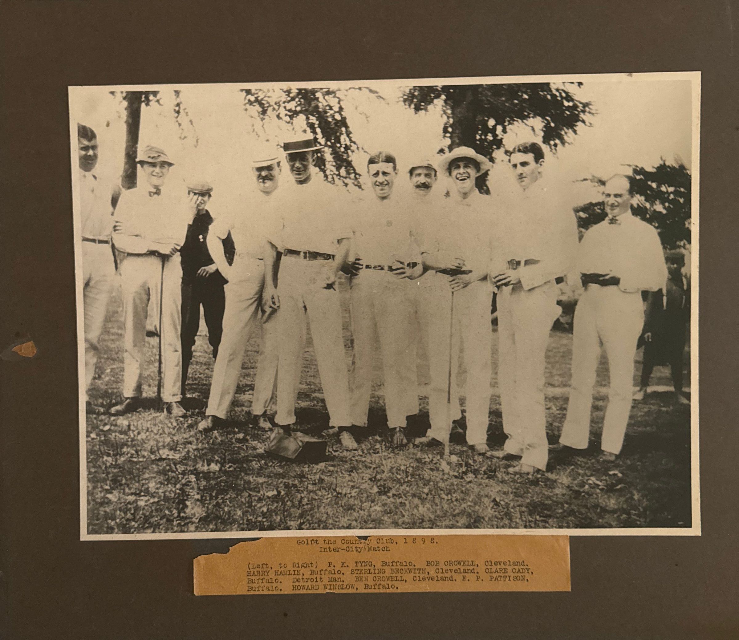 Inter-City Match, 1898. From left to right: P.K. Tyng, Buffalo; Bob Crowell, Cleveland; Harry Hamlin, Buffalo; Sterling Beckwith, Cleveland; Clare Cady, Detroit; Ben Crowell, Cleveland; E.P. Pattison, Buffalo; Howard Winslow, BuffaloCategory