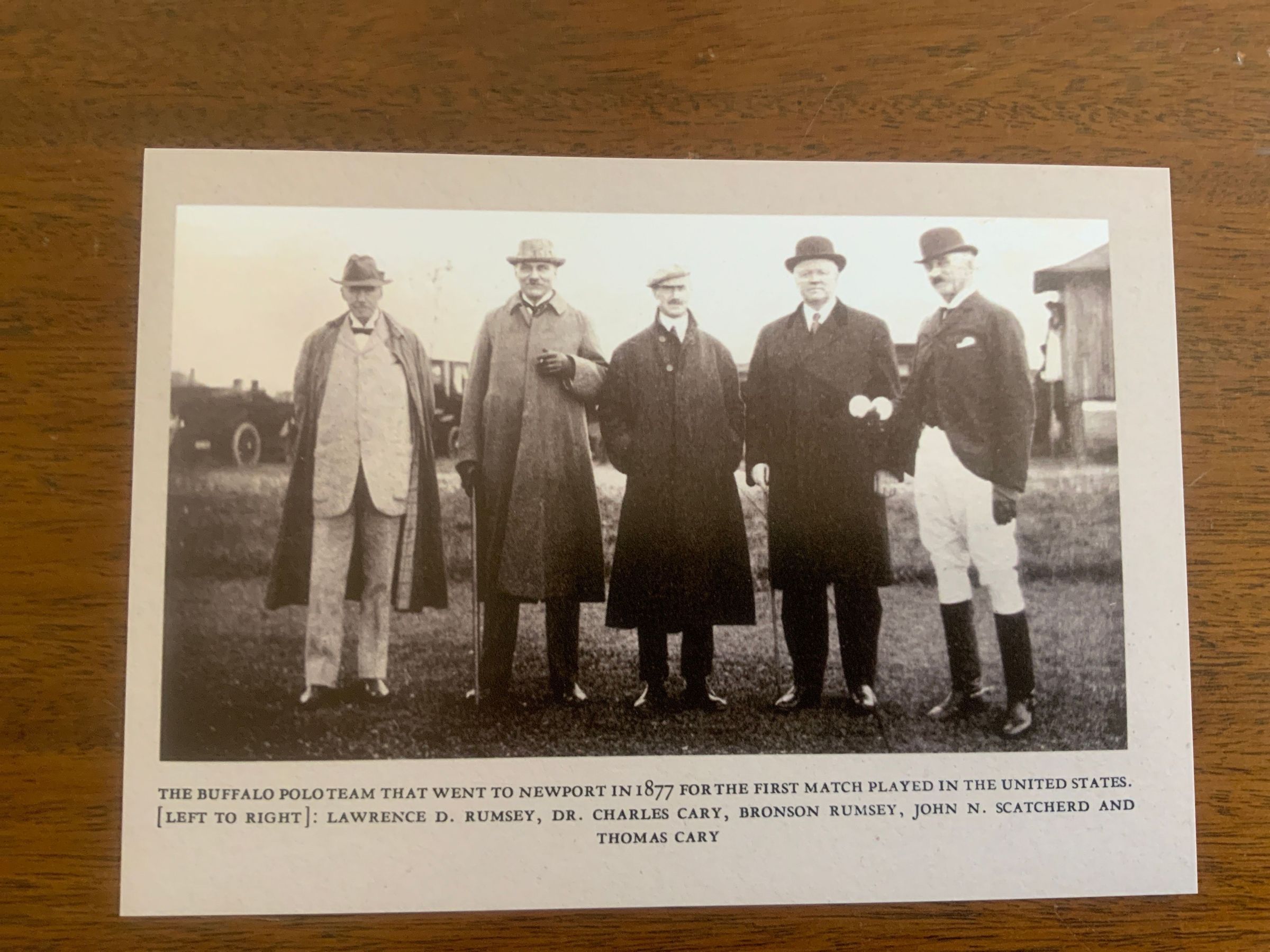 The First Polo Match in America, held in Newport Rhode Island, 1877. The Buffalo Team : Laurence D. Rumsey, Dr. Charles Cary, Bronson Rumsey, John Newton Scatchard and Thomas CaryCataloged By