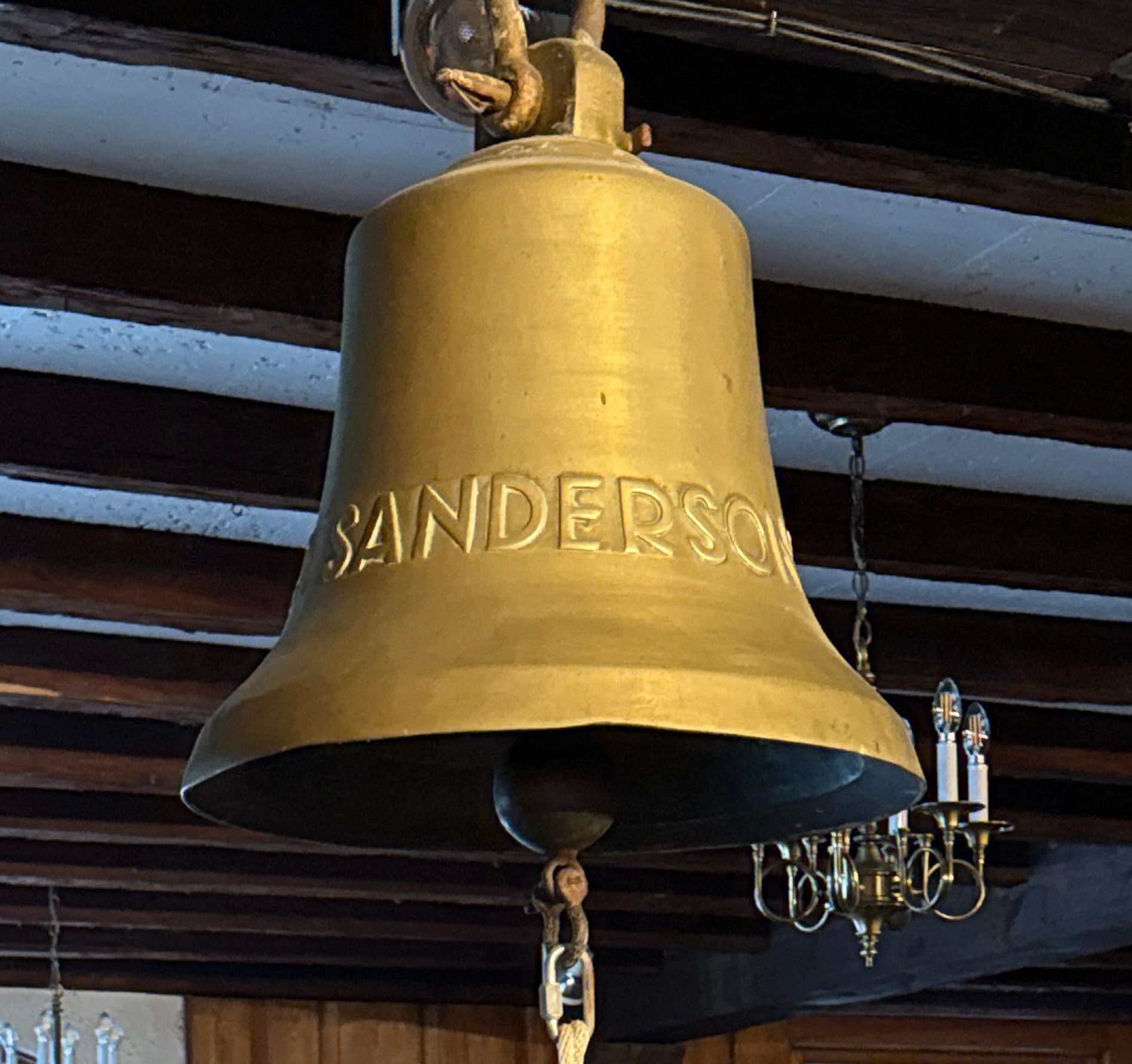 The Ship bell , that was named for Mr.Sanderson was rung by delightful waiter