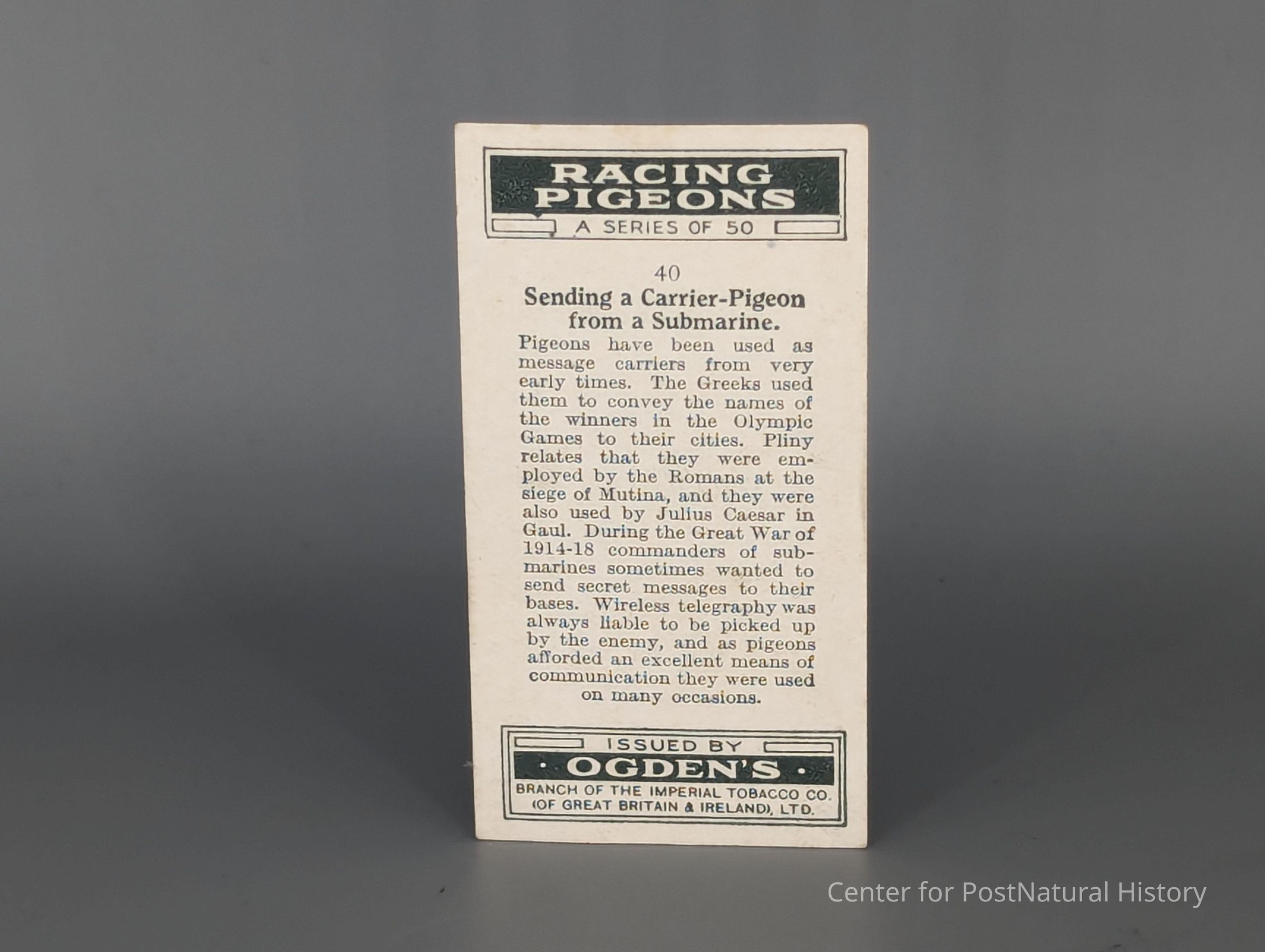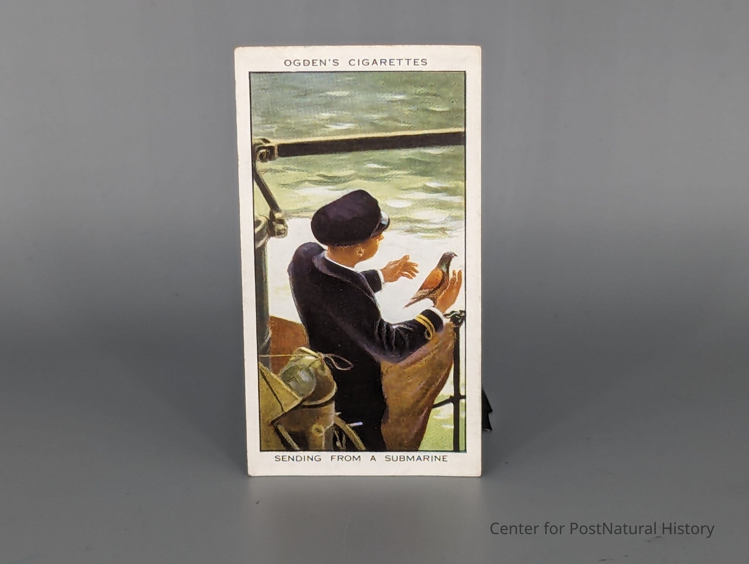 Ogden Cigarette cards: Sending a pigeon from a submarine