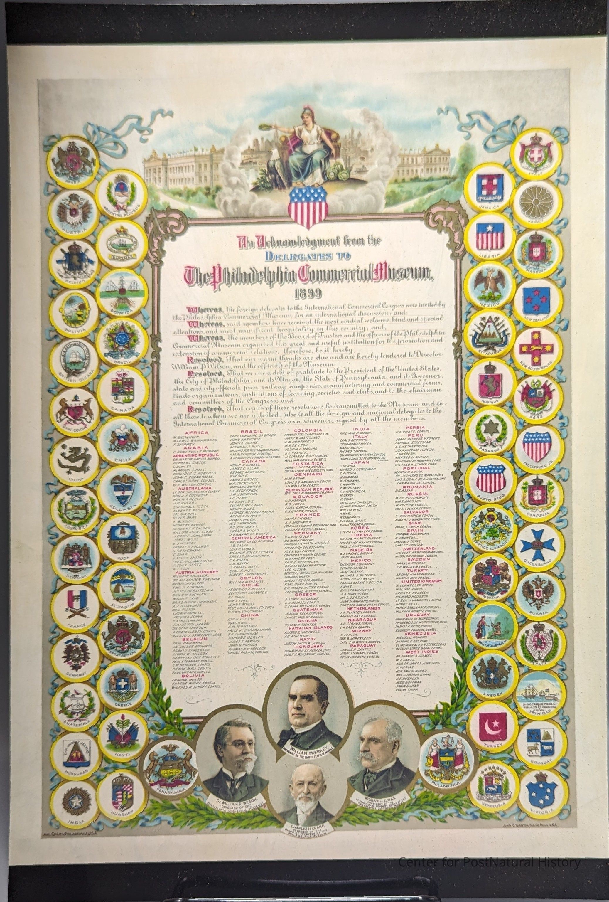 The Acknowledgement from the Delegates to the Philadelphia Commercial Museum