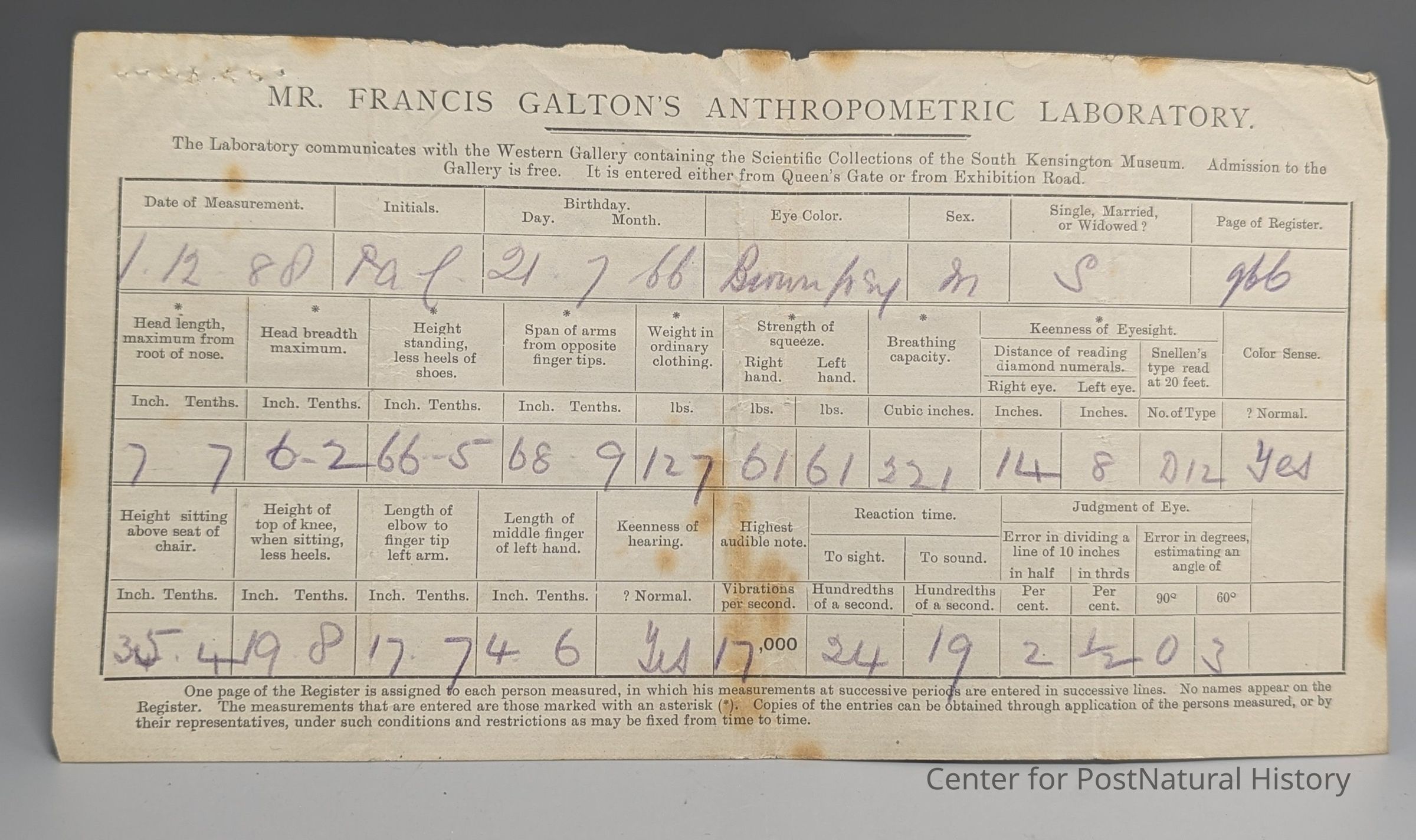 Fingerprints from Mr. Francis Galton's Anthropometric Laboratory circa 1894