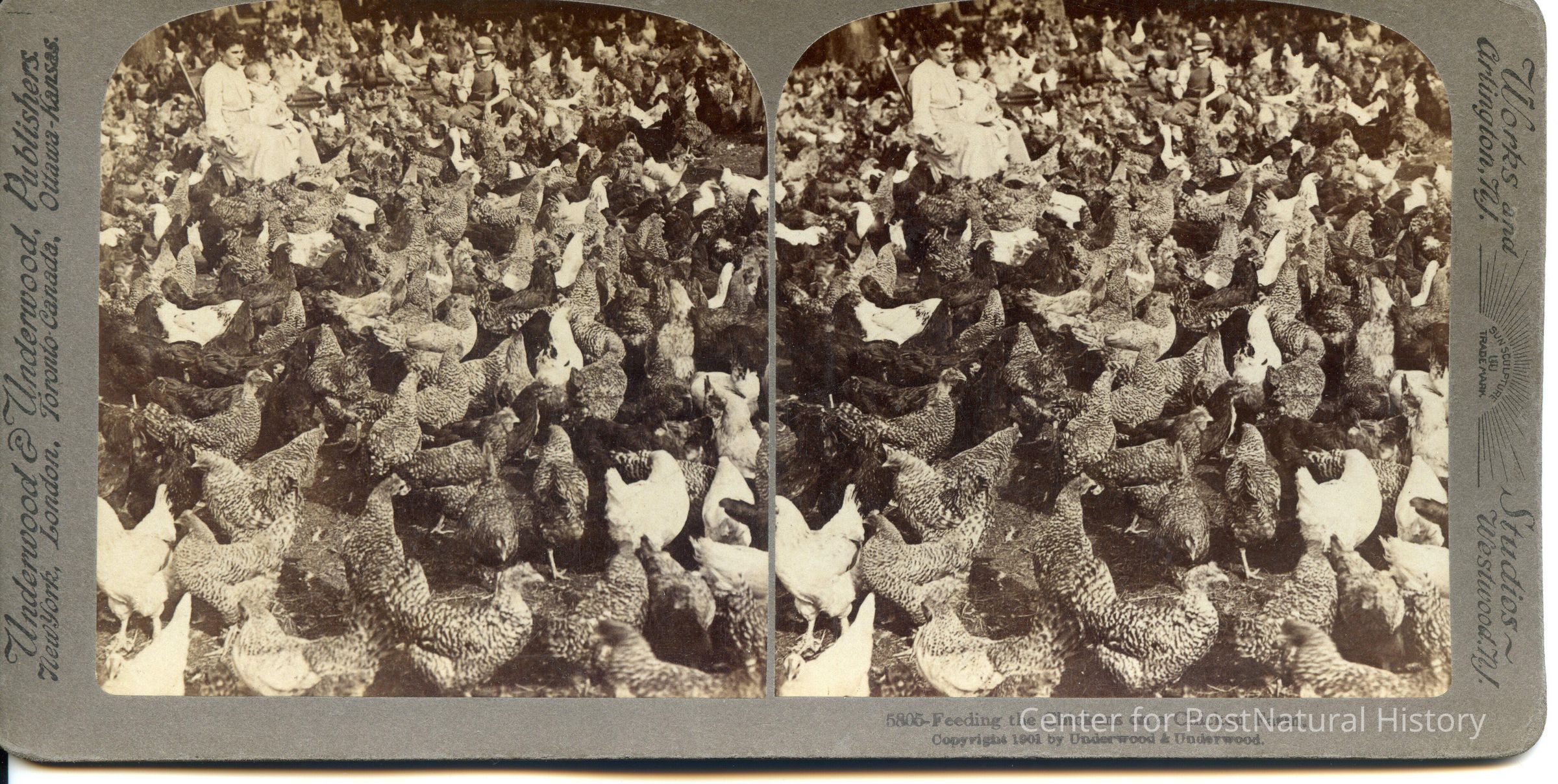 Feeding the chickens on a farm (1903)