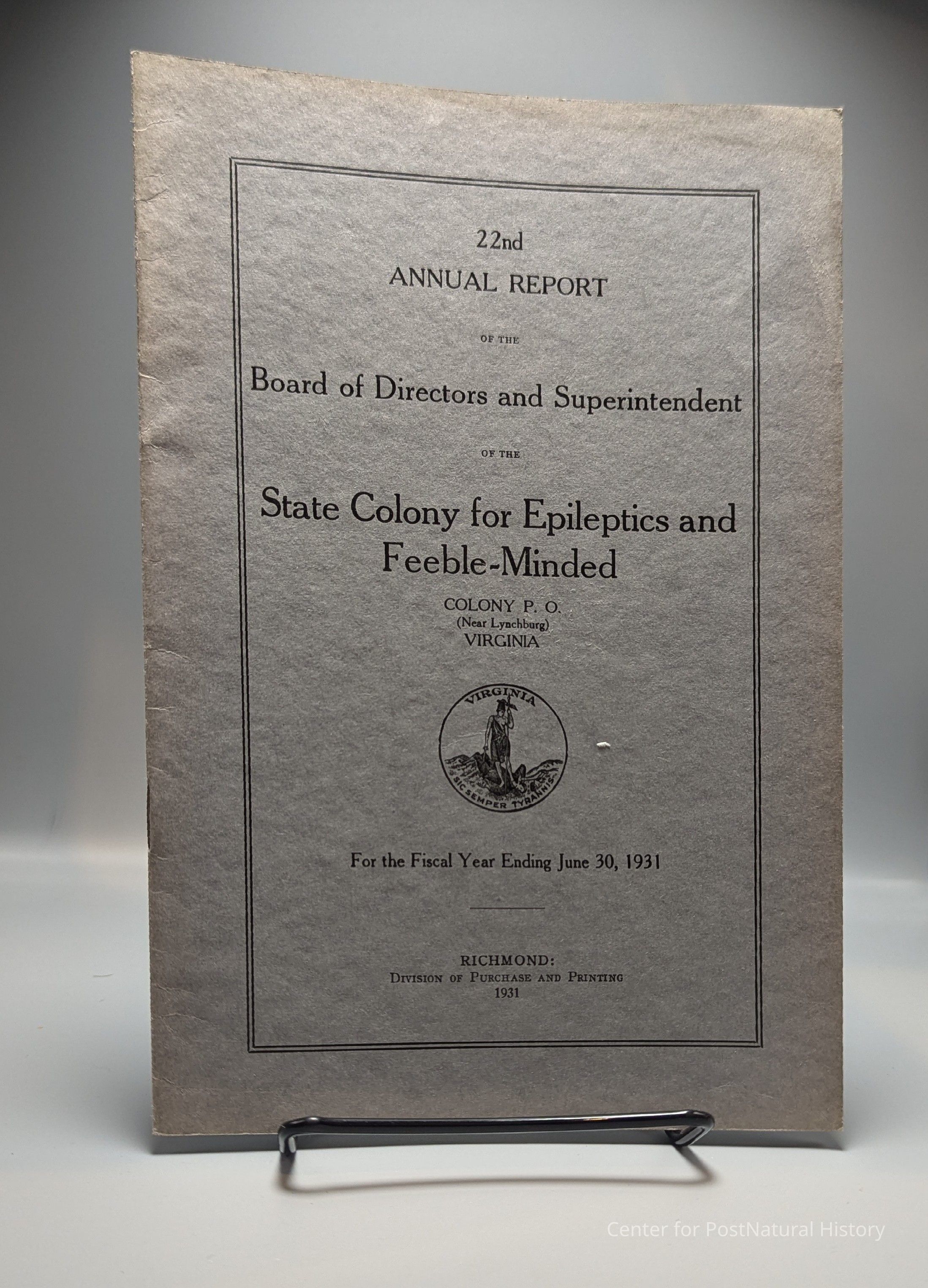 22nd Annual Report of the Board of Directors of the State Colony for Epileptics and Feeble-Minded near Lynchburg, VA