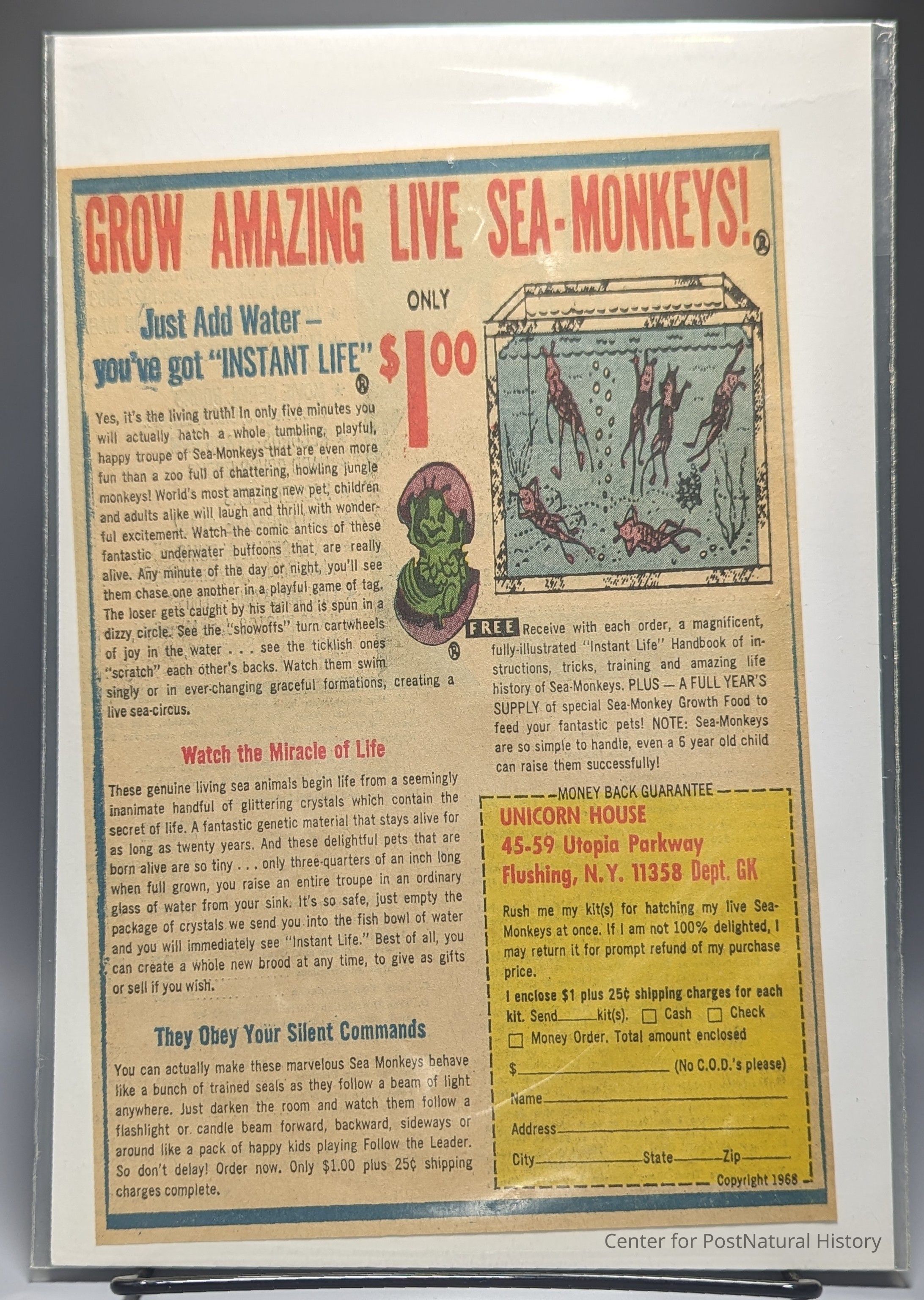 Newspaper or comic book clipping of an early sea monkey advertisement