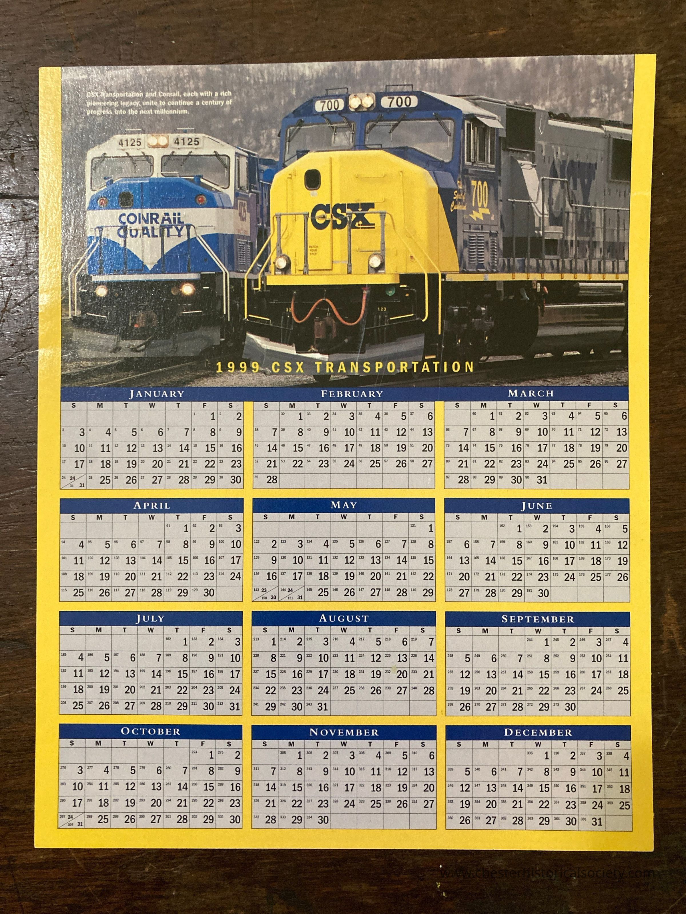 1999 - 2000 CSX Transportation calendar promoting Contrail & CSX railroad companies.Acquisition