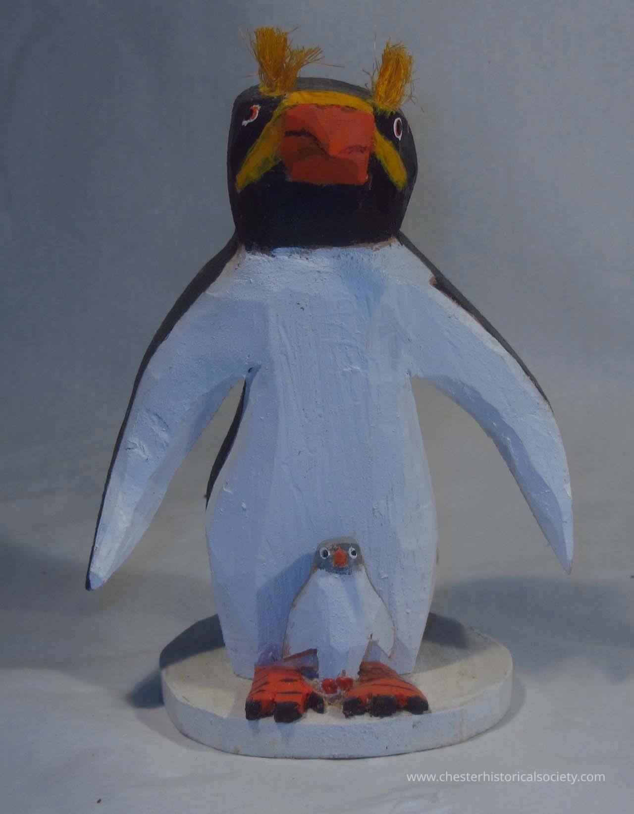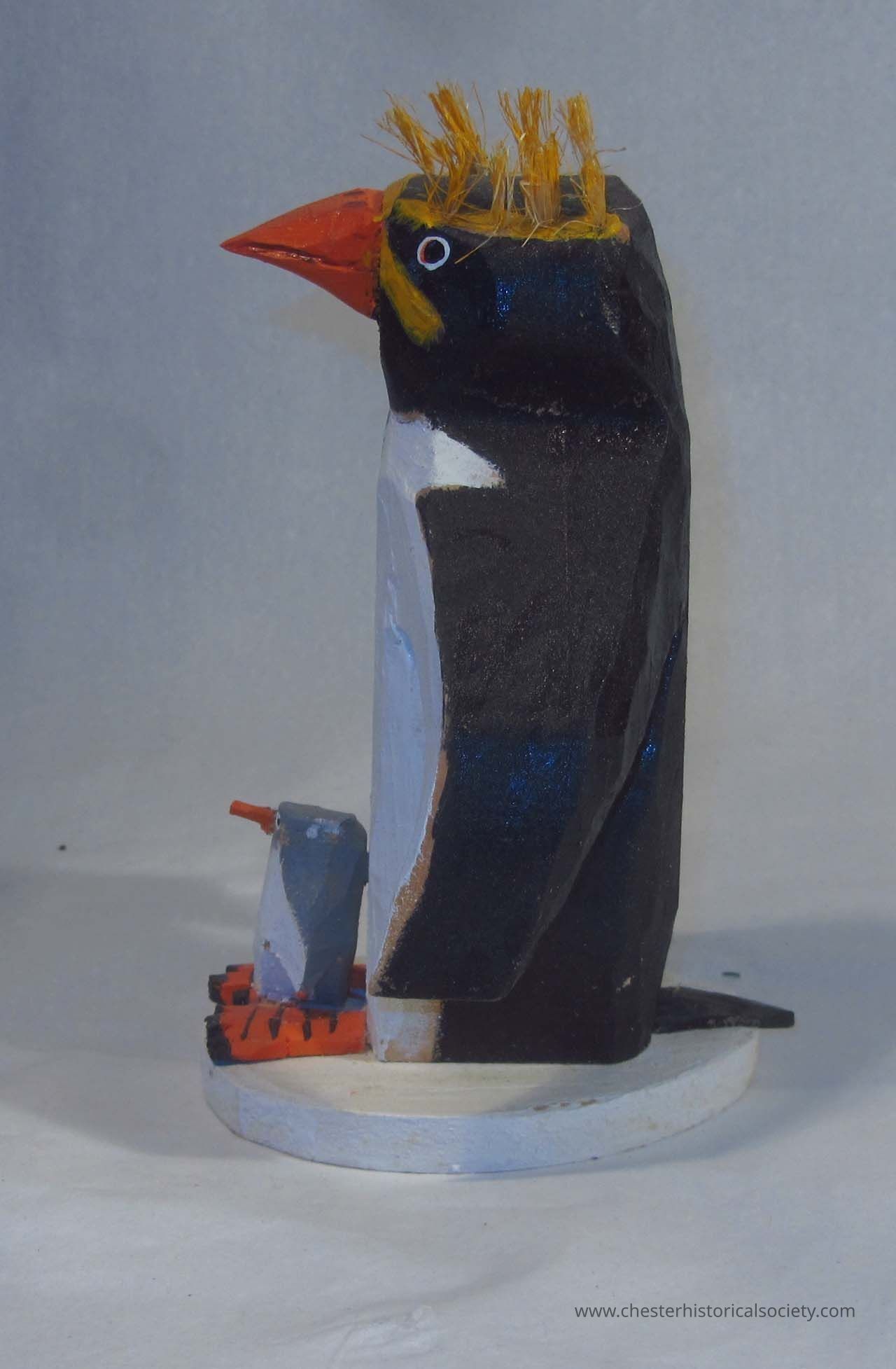 Bruno Wolfgang Kurtz, 1926-2013 created this sculpture of a Rockhopper Penquin with a chick on its feet..Collection