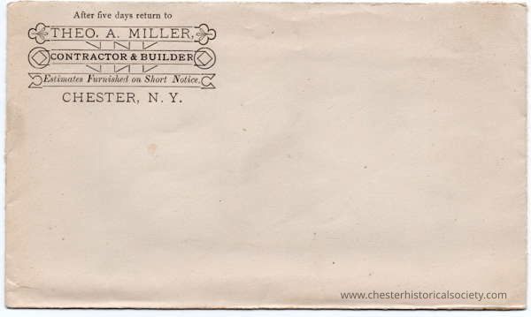 This Building of the Mason work was Built By Theodore A. Miler of Chester NY for the Sum of Two Thousand three Hundred and forty five dollars $2345.00. The carpenter work was done by P. G. Miller of Middletown NY 1,175.00 The Plumbing By G S Conklin for $185.00 dollars the Painting was done by Geo Conklin for $160.00 all of Chester