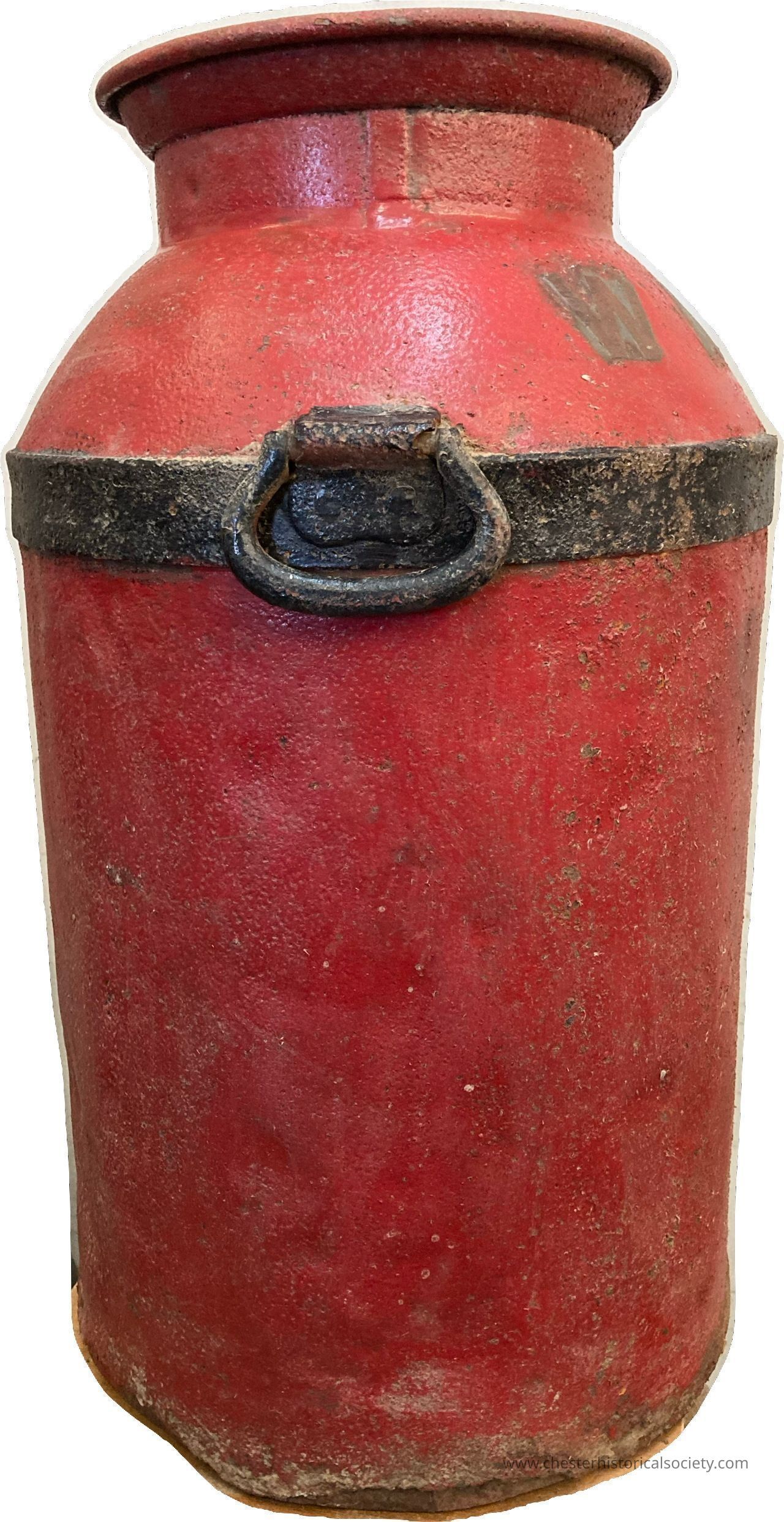 Painted red, with black band - formerly kept in the house of Dottie Talmadge, then after her death in 2004, her son, Dale. Dale is the g-grandson of WA Lawrence, grandfather of Dottie.