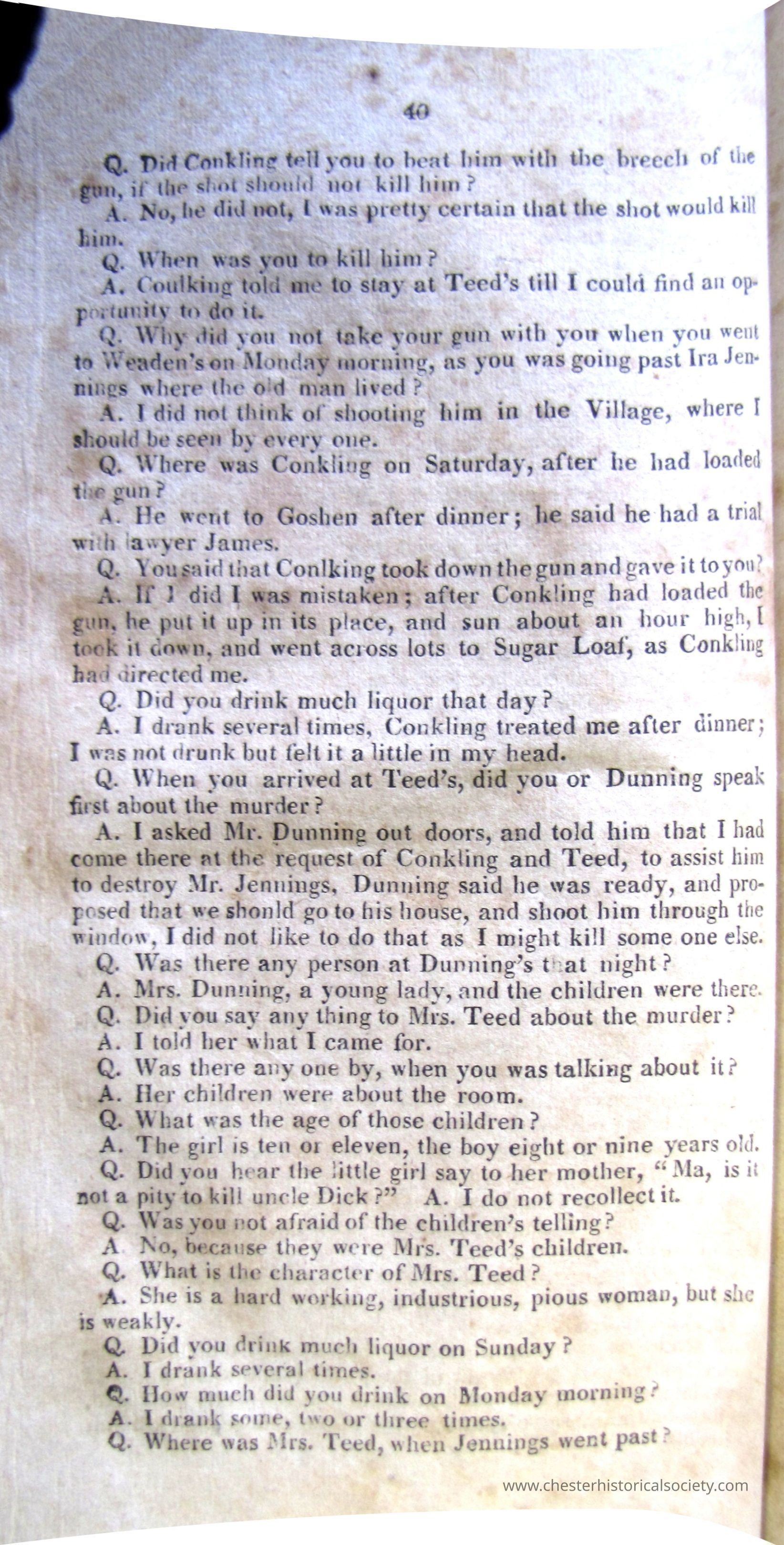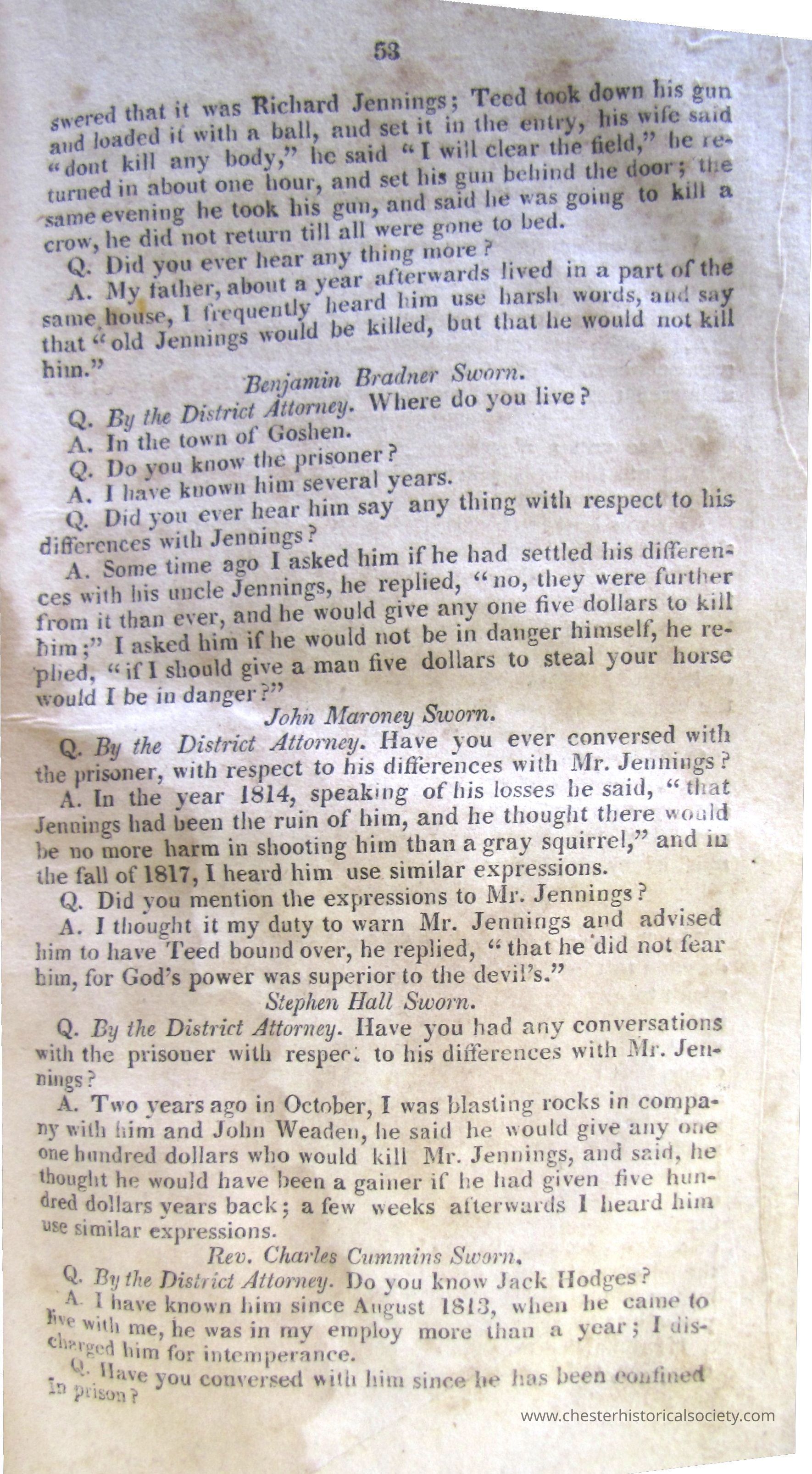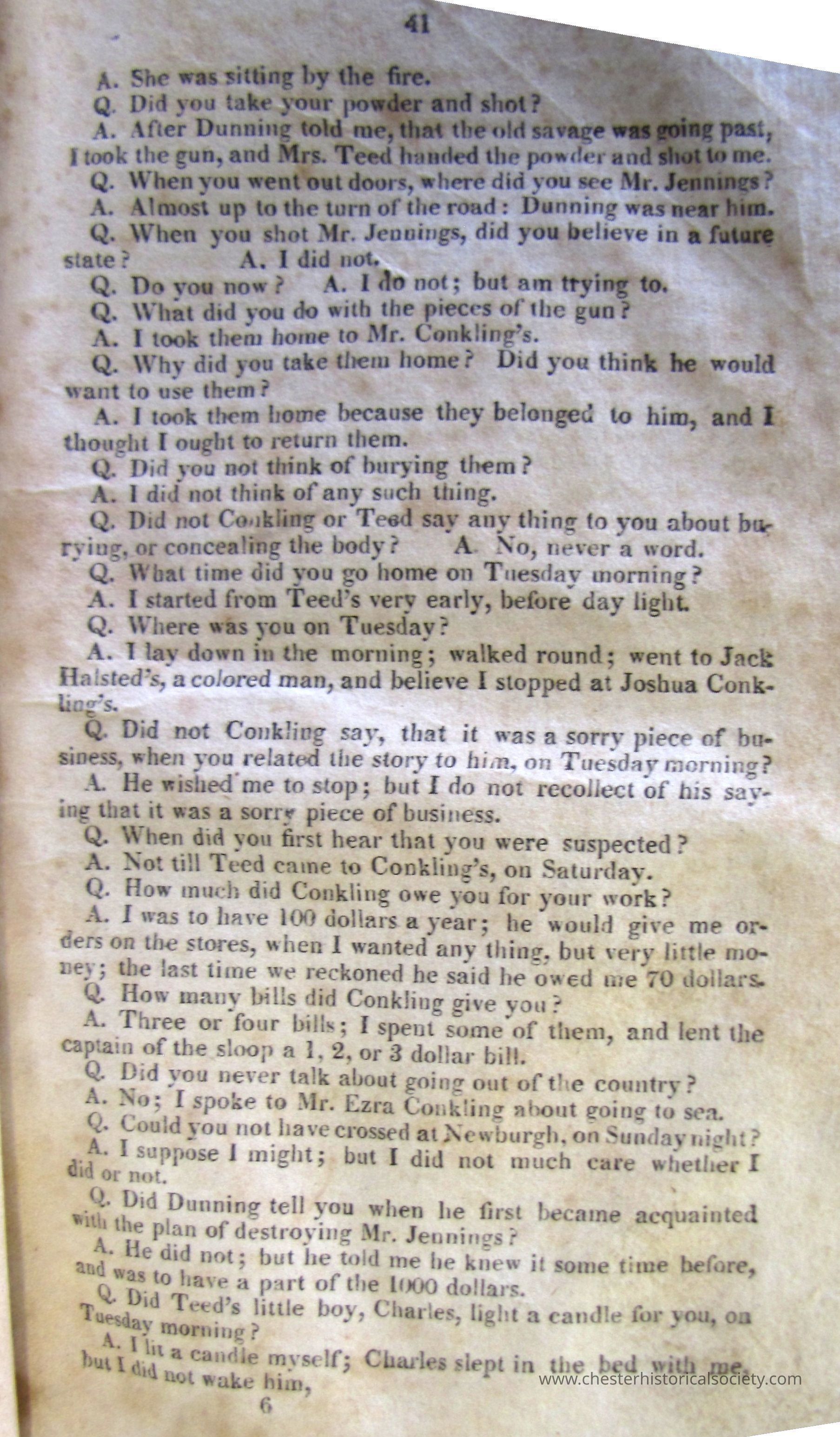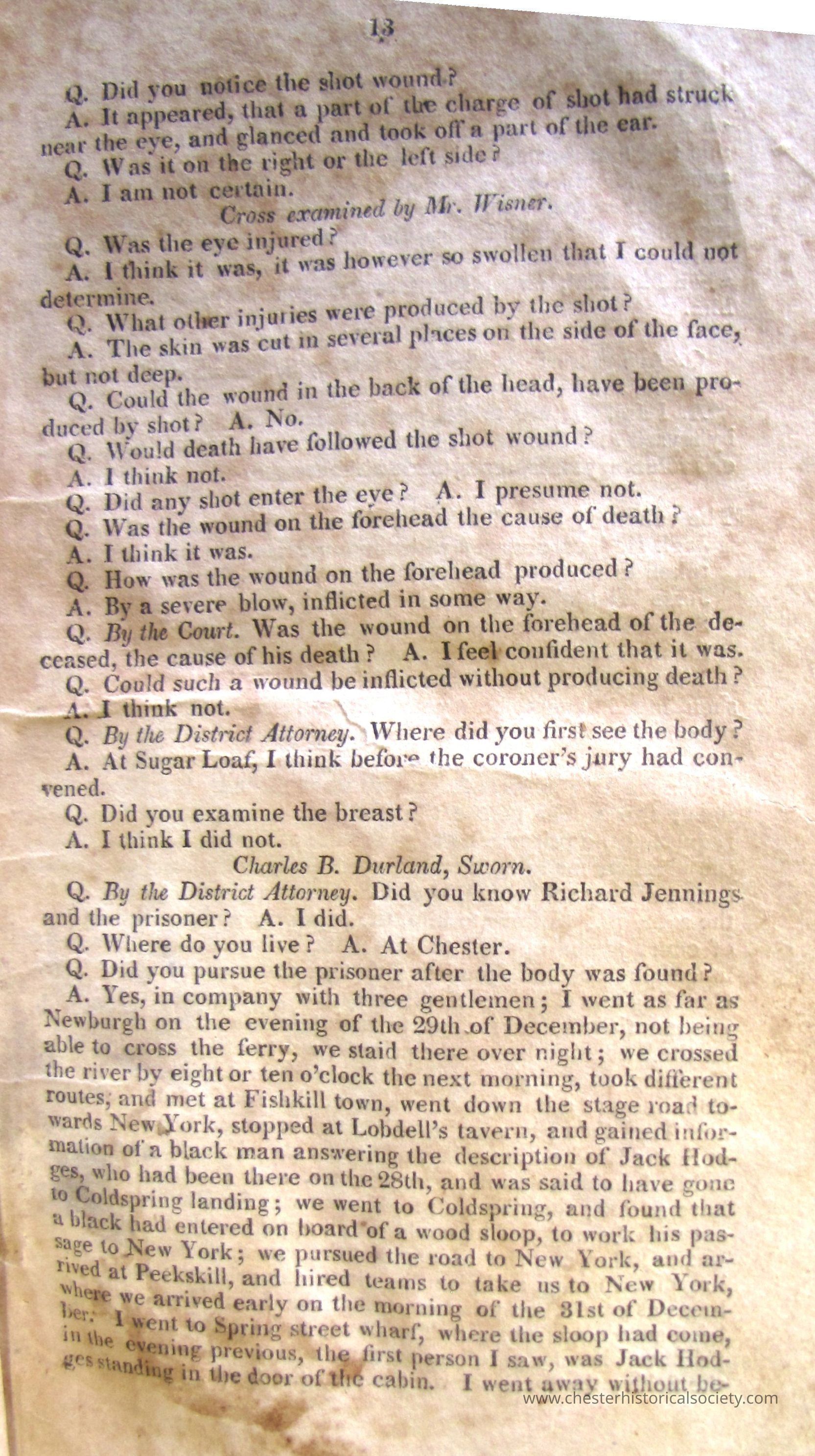 Report of the Trial of the Murderers of Richard Jennings in Orange County, NY Printed by Benjamin F. Lewis Newburgh, NY