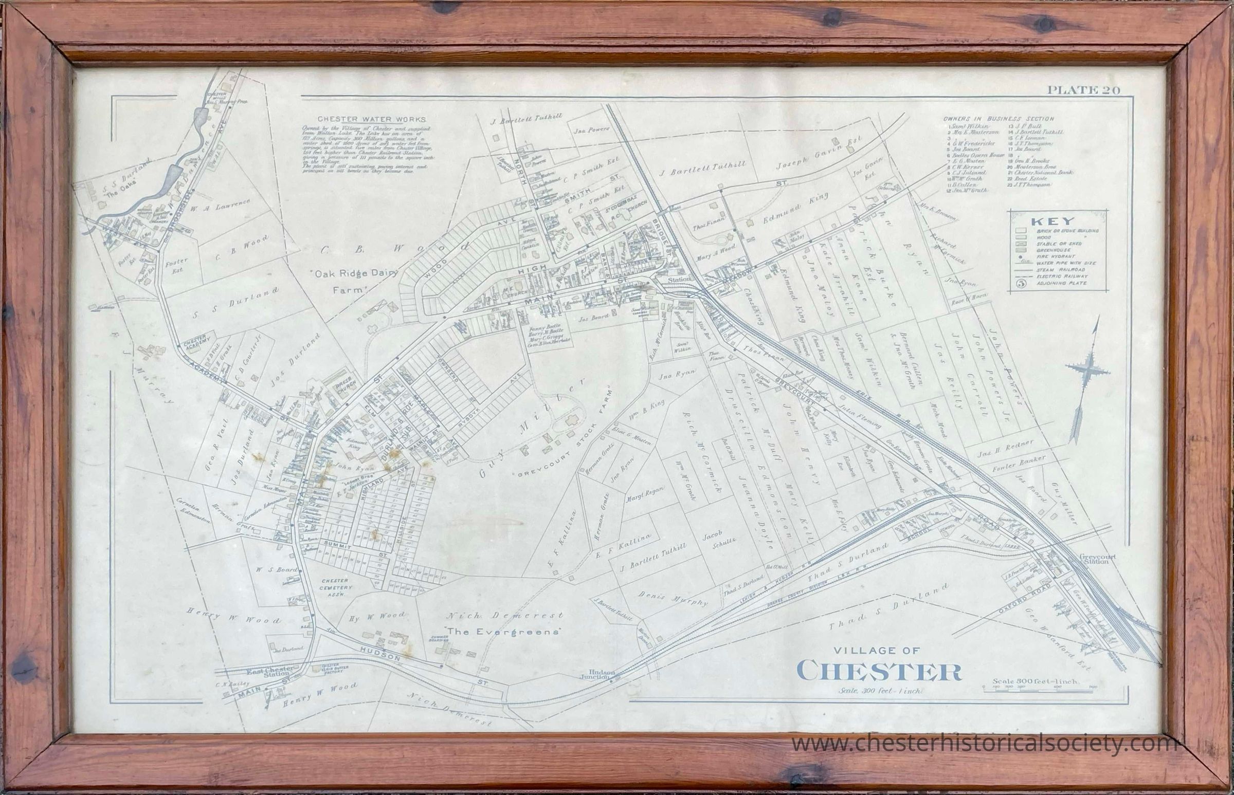 Framed Village of Chester Map. Plate 20 taken from a Lathrop, J.M., C.E., ATLAS OF ORANGE COUNTY, N.Y. (Phila: A. H. Mueller & Co., 1903)
