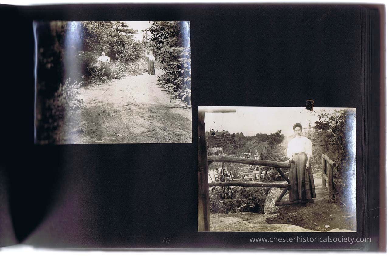page 43 (three photo on dirt roadway, some with people. Looks similar to Mohonk access road.)