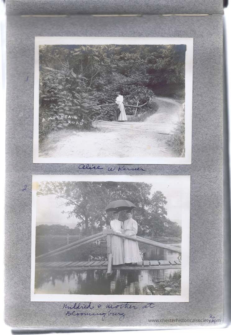 page 27 1-On Uncle Freeman Lewis' Farm, Bloomingburg, N.Y.; 2-Bloomingburg July 1905 (Mildred & ? in hammock)