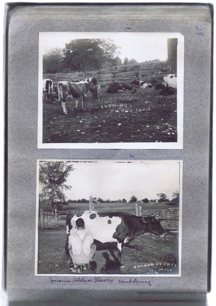 page 28 1-Evening on the farm (Uncle Freeman Lewis' Farm); 2-Orange County milk - Cousin Alden Lewis milking