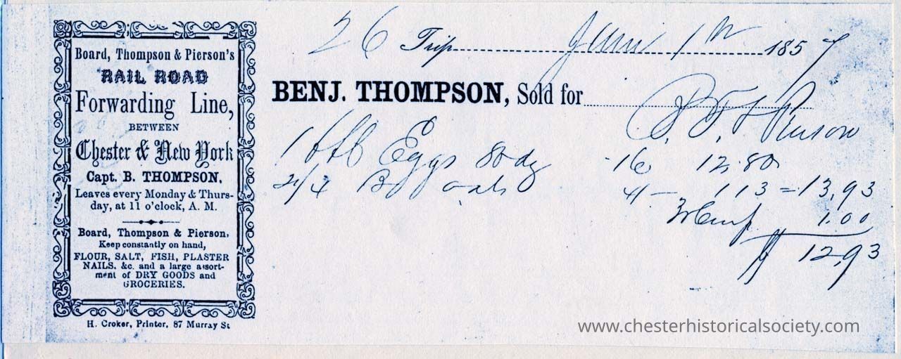 1857 - Thompson, Benjamin - Egg Dealer, Rail Road Forwarding Line