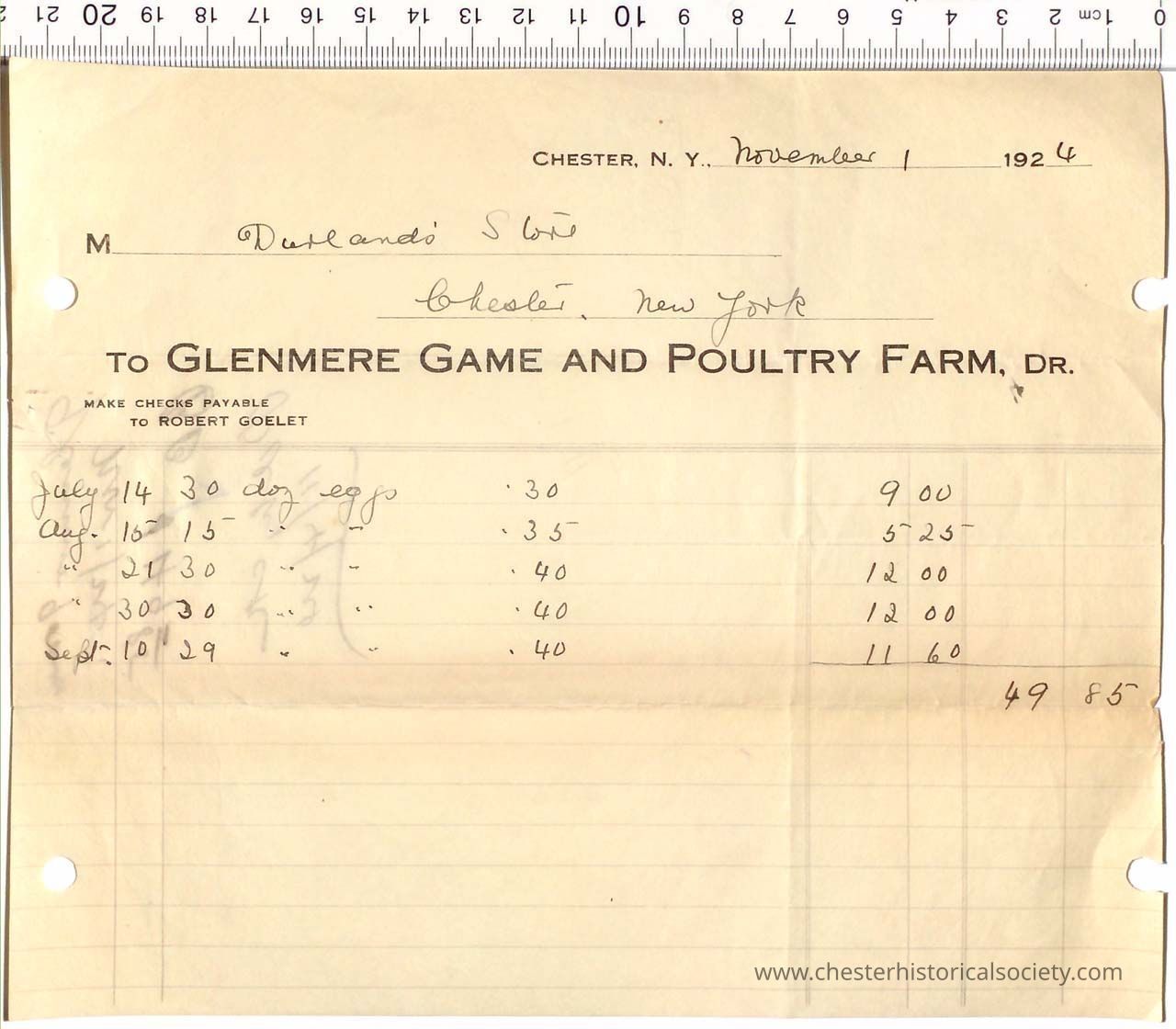 1924 - Glenmere Game & Poultry Farm - Robert Goelet - Eggs