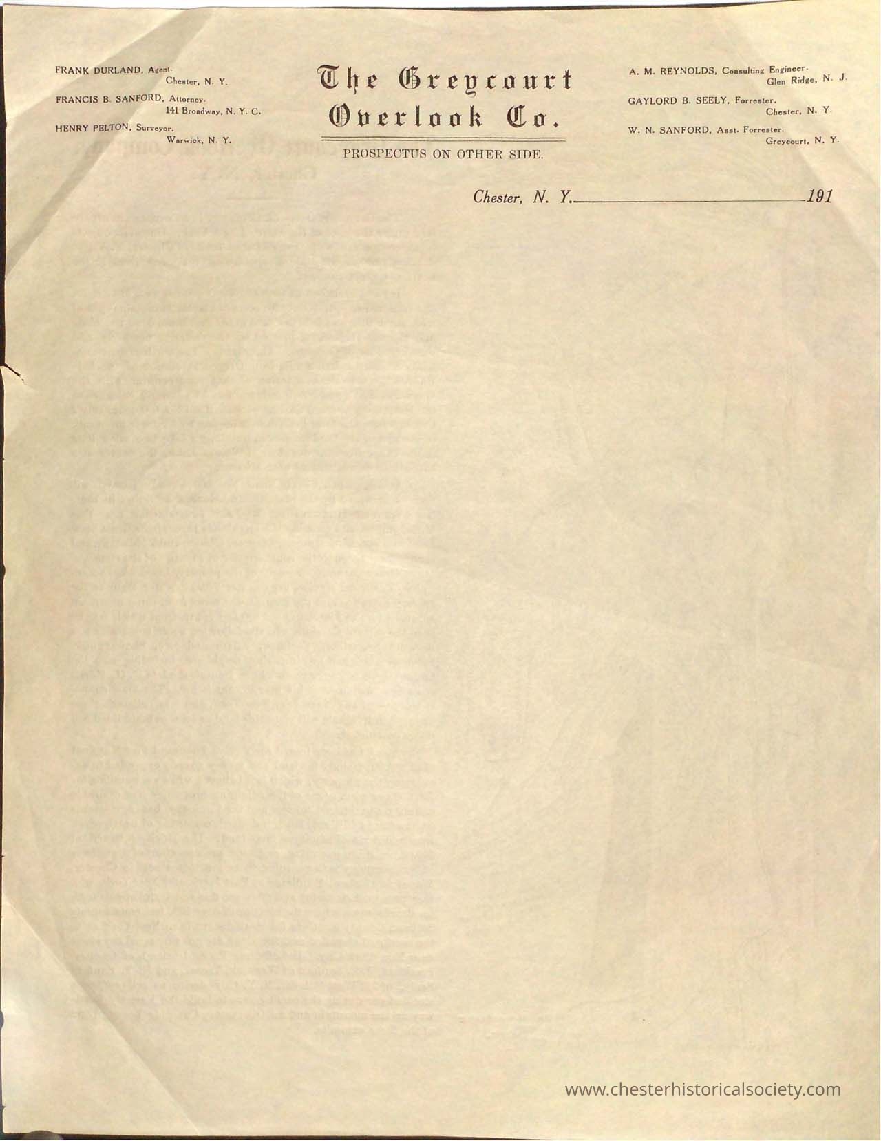 1910 - Greycourt Overlook Co. - 116 acres of land for development