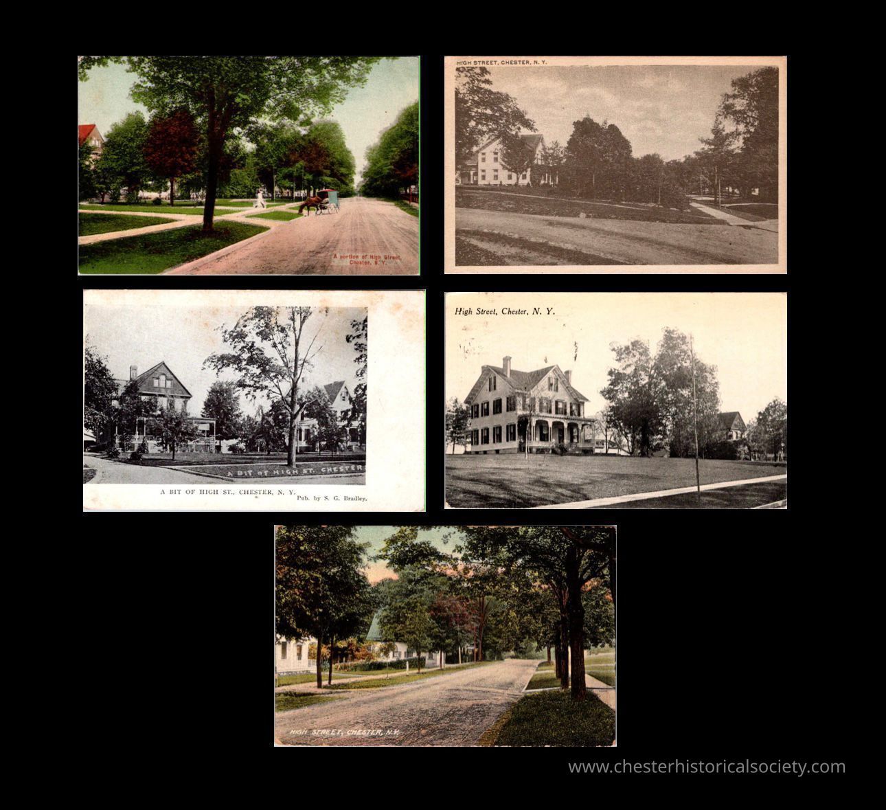 A group of postcards from the Ann and Gene White Collection depicting High Bridge in Chester NY in the early 20th Century.Subject