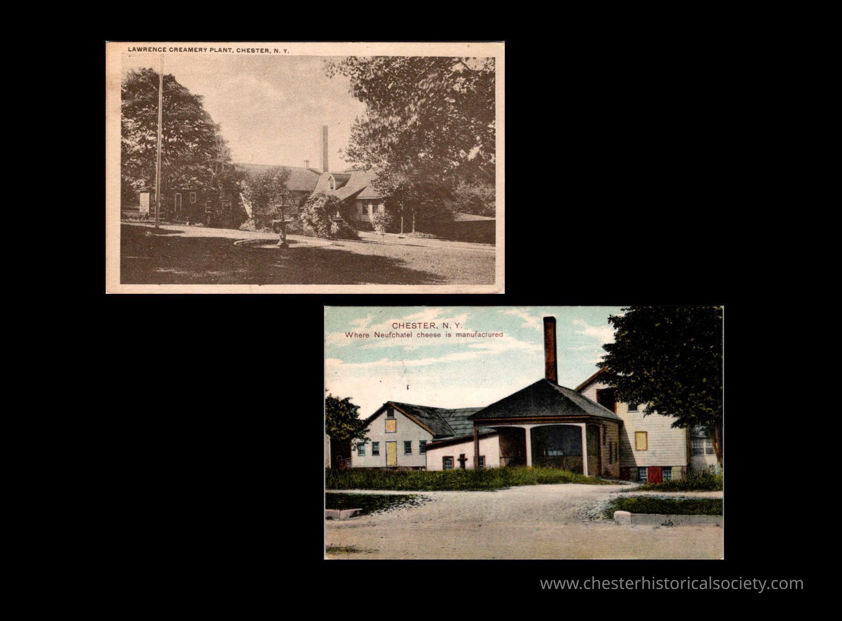 A postcard group from the Ann and Gene White Collection depicting the Lawrence Creamery in Chester NY in the early 20th Century.Subject