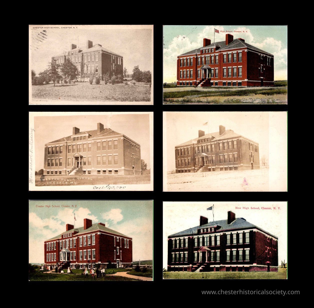 A group of postcards from the Ann and Gene White Collection depicting the High School in Chester NY in the early 20th Century.Subject