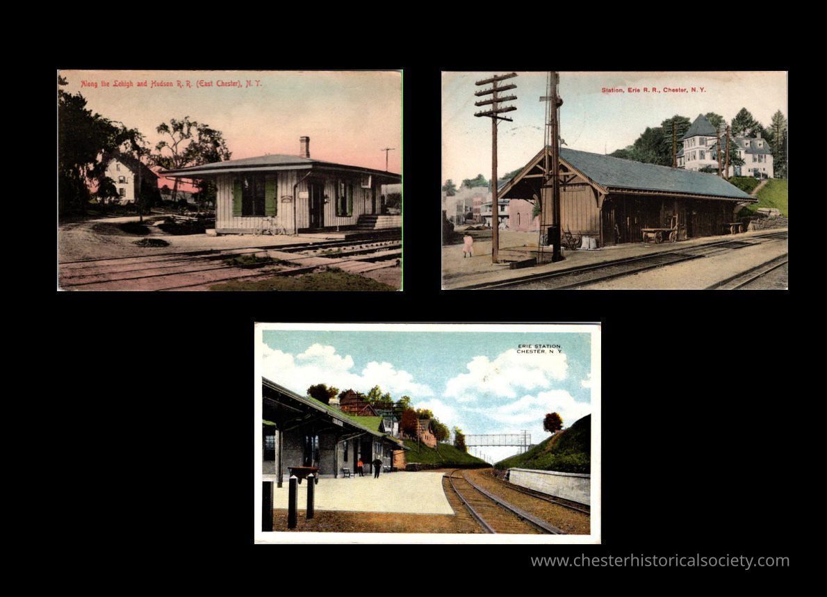 A group of postcards from the Ann and Gene White Collection depicting the Railroad Stations in Chester NY in the early 20th Century.Subject