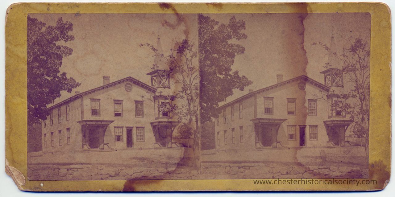 At the time this photo was taken, his academy was about halve way between the hamlets of East Chester and West Chester. The Village of Chester was founded 1893, incorporating the three hamlets of East Chester, West Chester, and Chester (a.k.a. Downtown), and including the Chester Academy, as it lied in between.