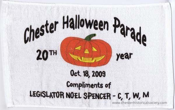 Noel Spencer gave this towel to people attending the 20th Chester Halloween Parade to promote his bid for reelection (unsuccessful) to represent District 8 in the Orange County Legislature.Collection